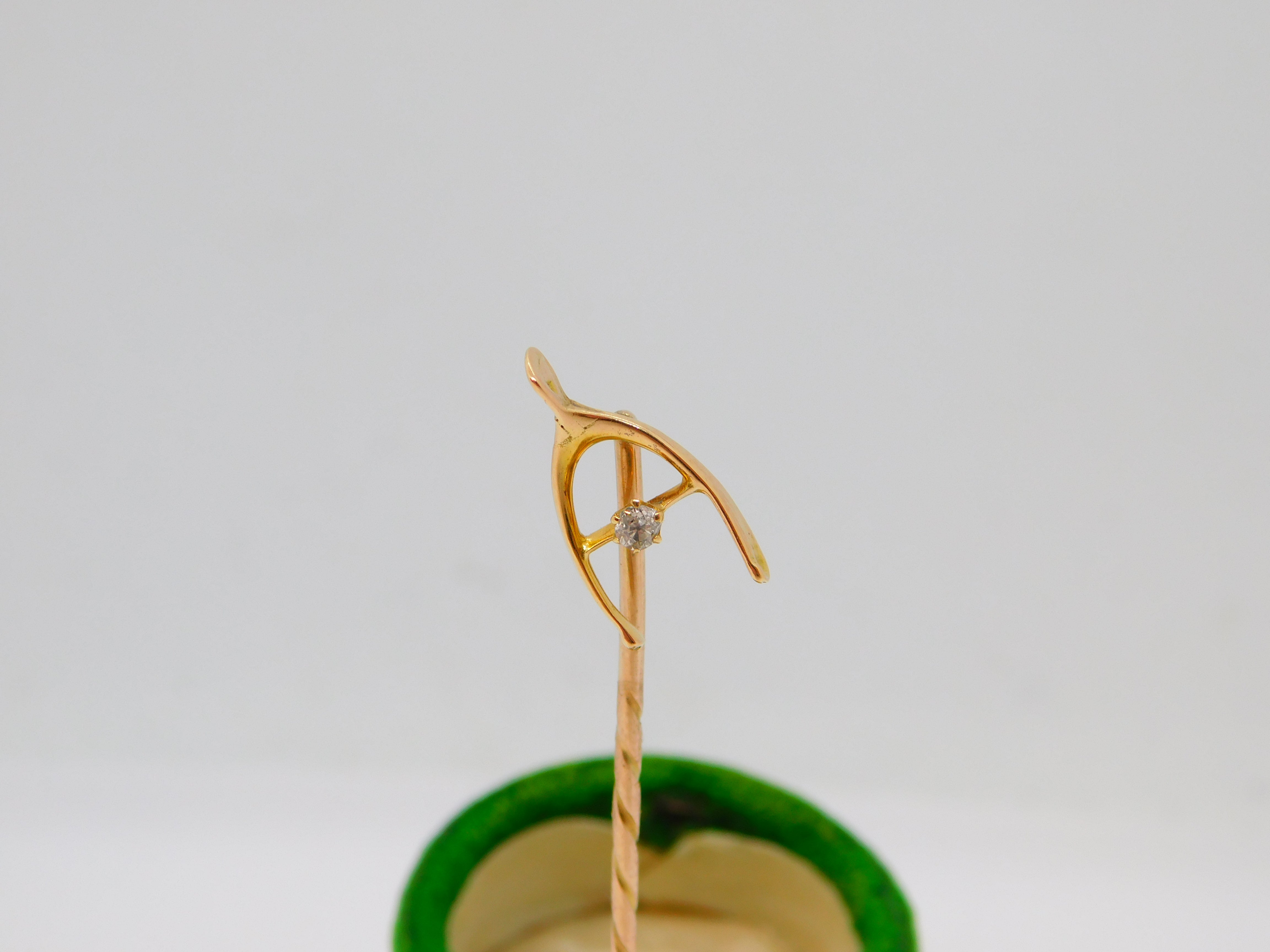 15ct Yellow Gold & Diamond Set Lucky Wishbone Stick Pin Antique c1890