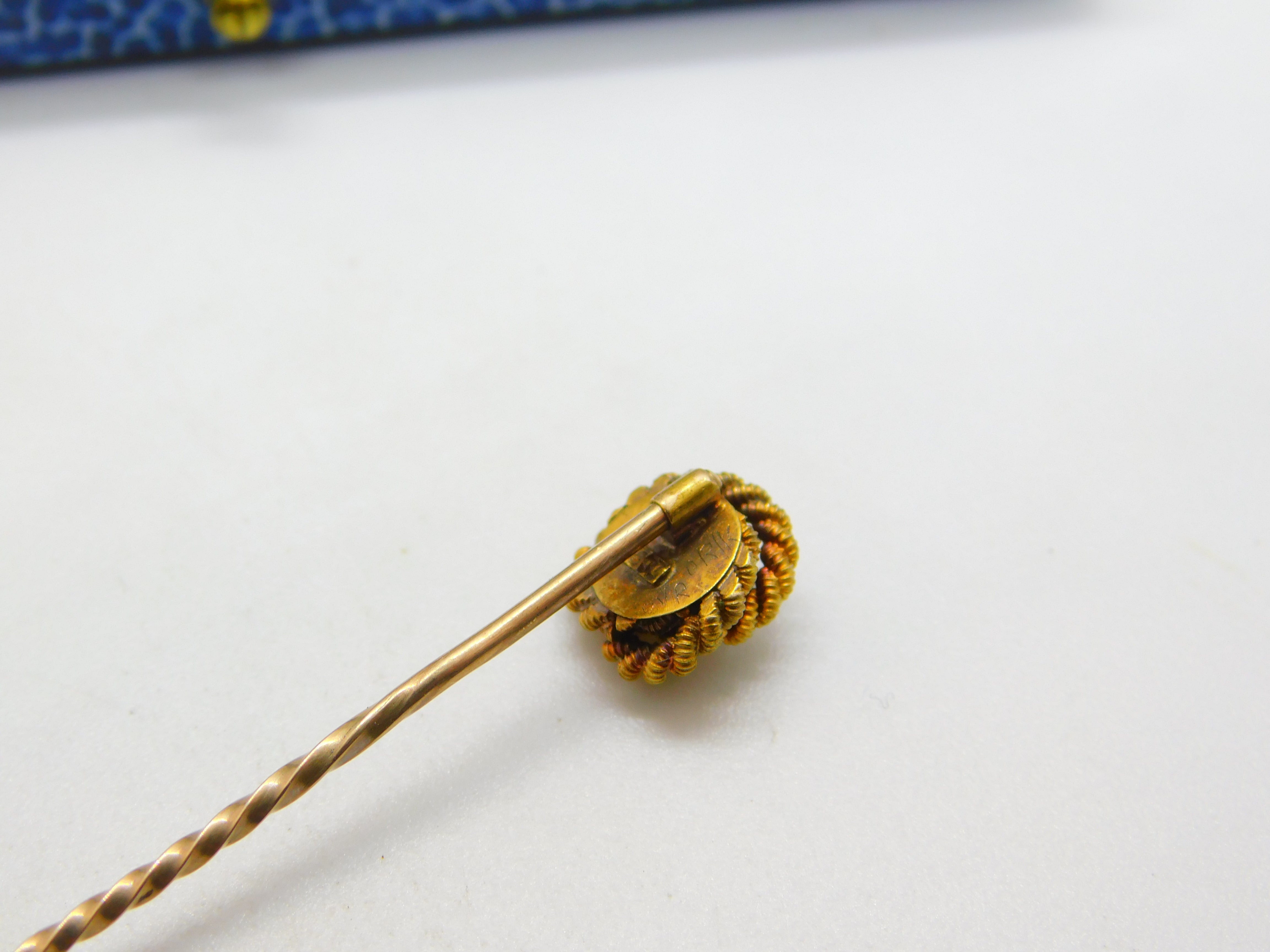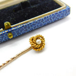 15ct Yellow Gold & Pearl Set Lovers Knot Stick Pin Antique c1910 Edwardian