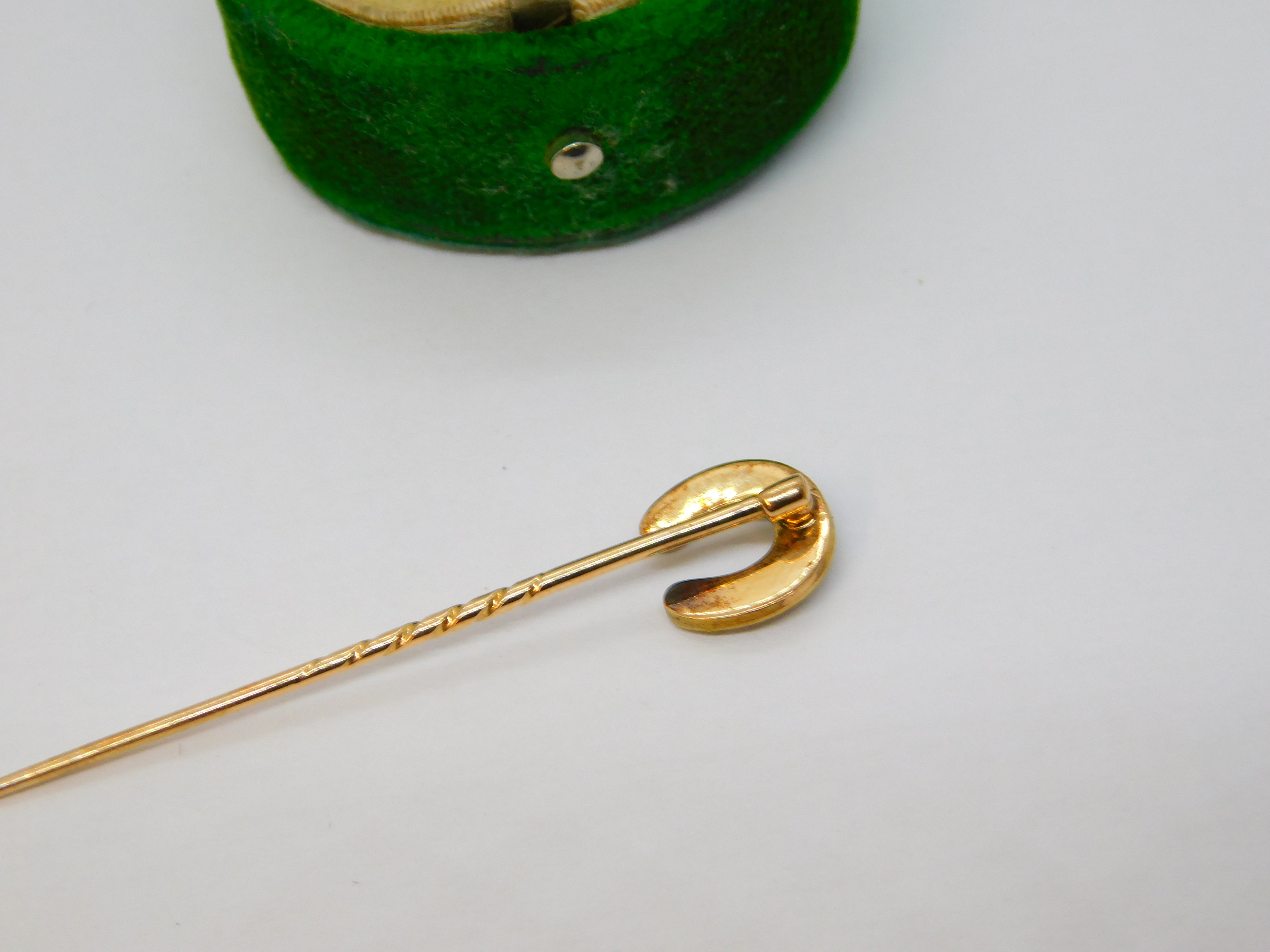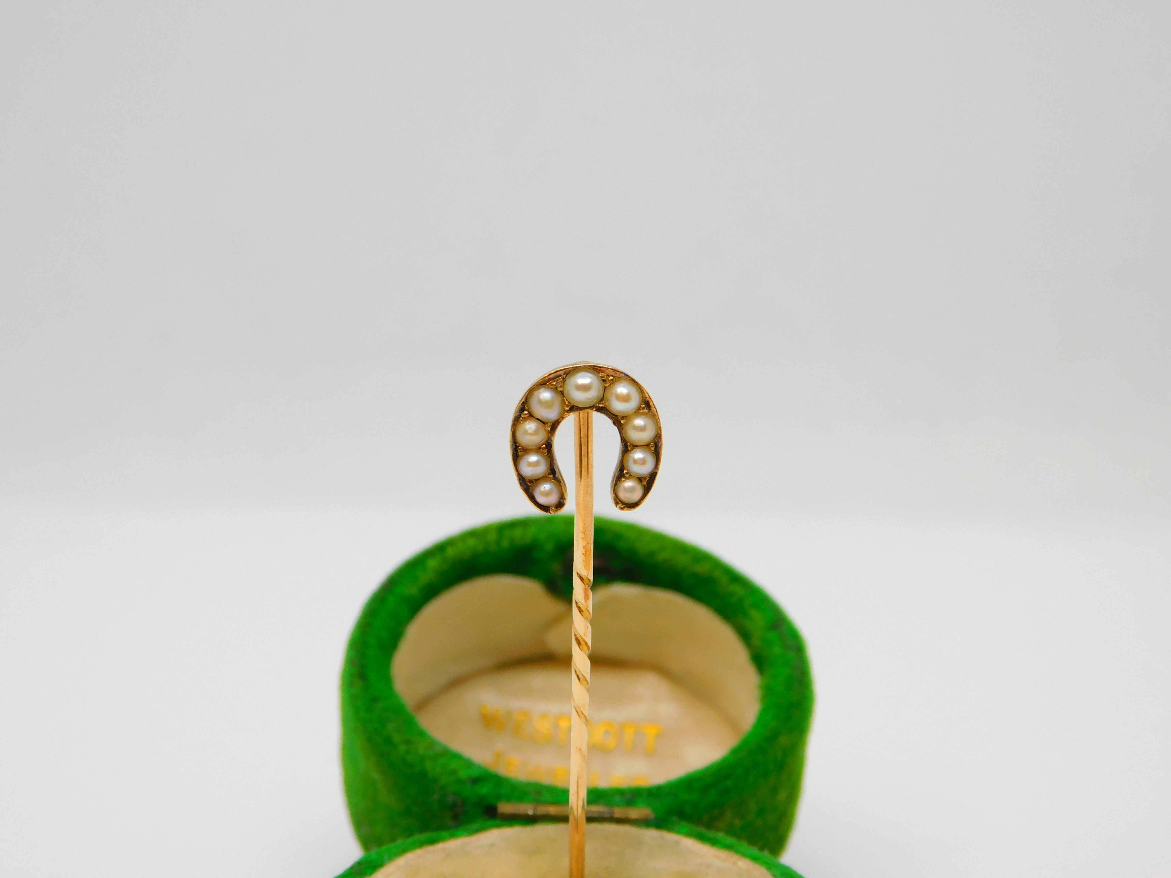 15ct Yellow Gold & Seed Pearl Set Lucky Horseshoe Stick Pin Antique c1910