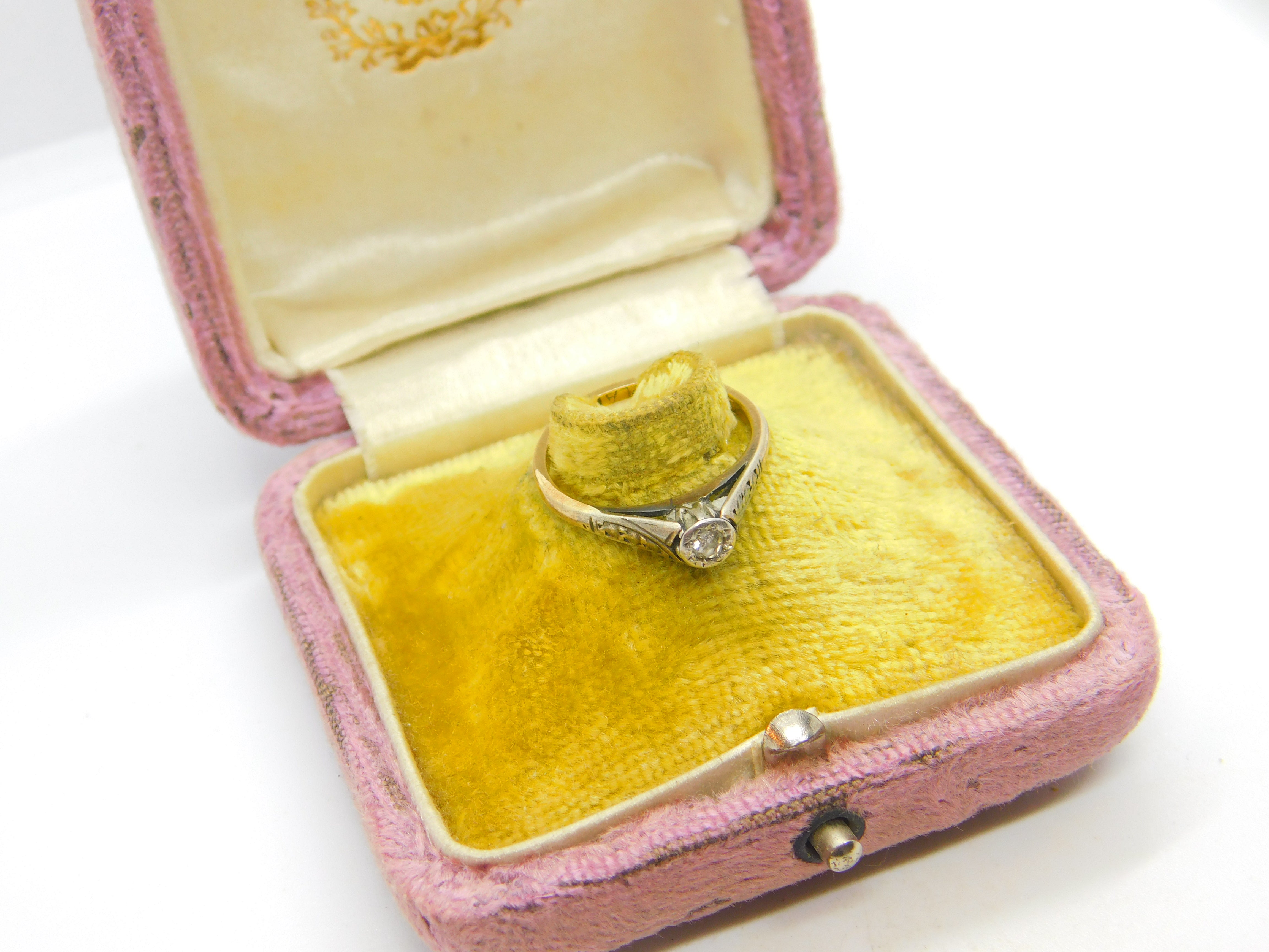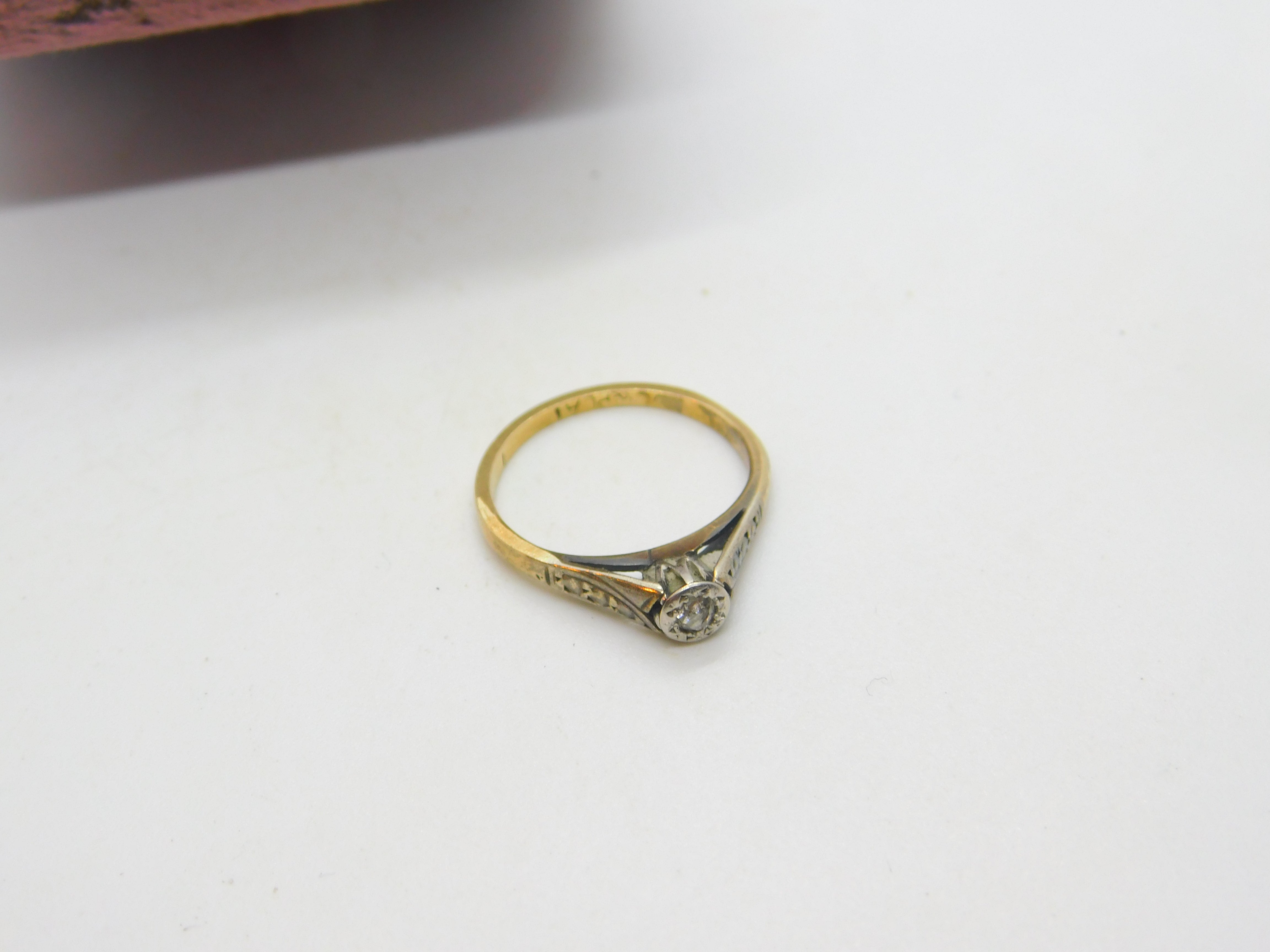 18ct Gold & Platinum Set 0.1ct Diamond Solitaire Ring Antique c1920 Art Deco