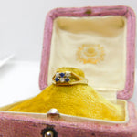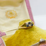 18ct Gold, Sapphire & Diamond Six-Stone Modernist Band Ring Vintage 1974 London