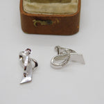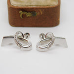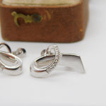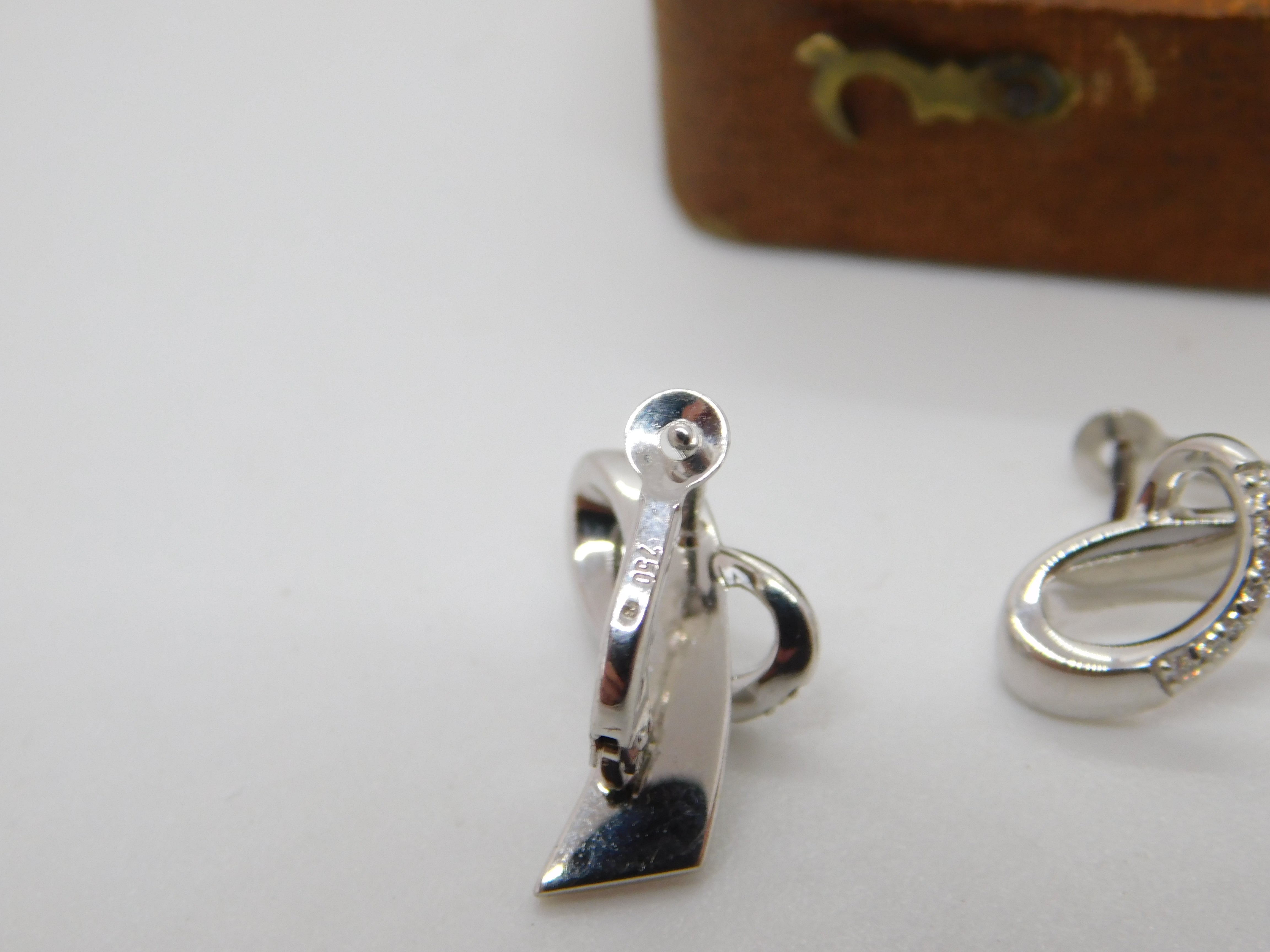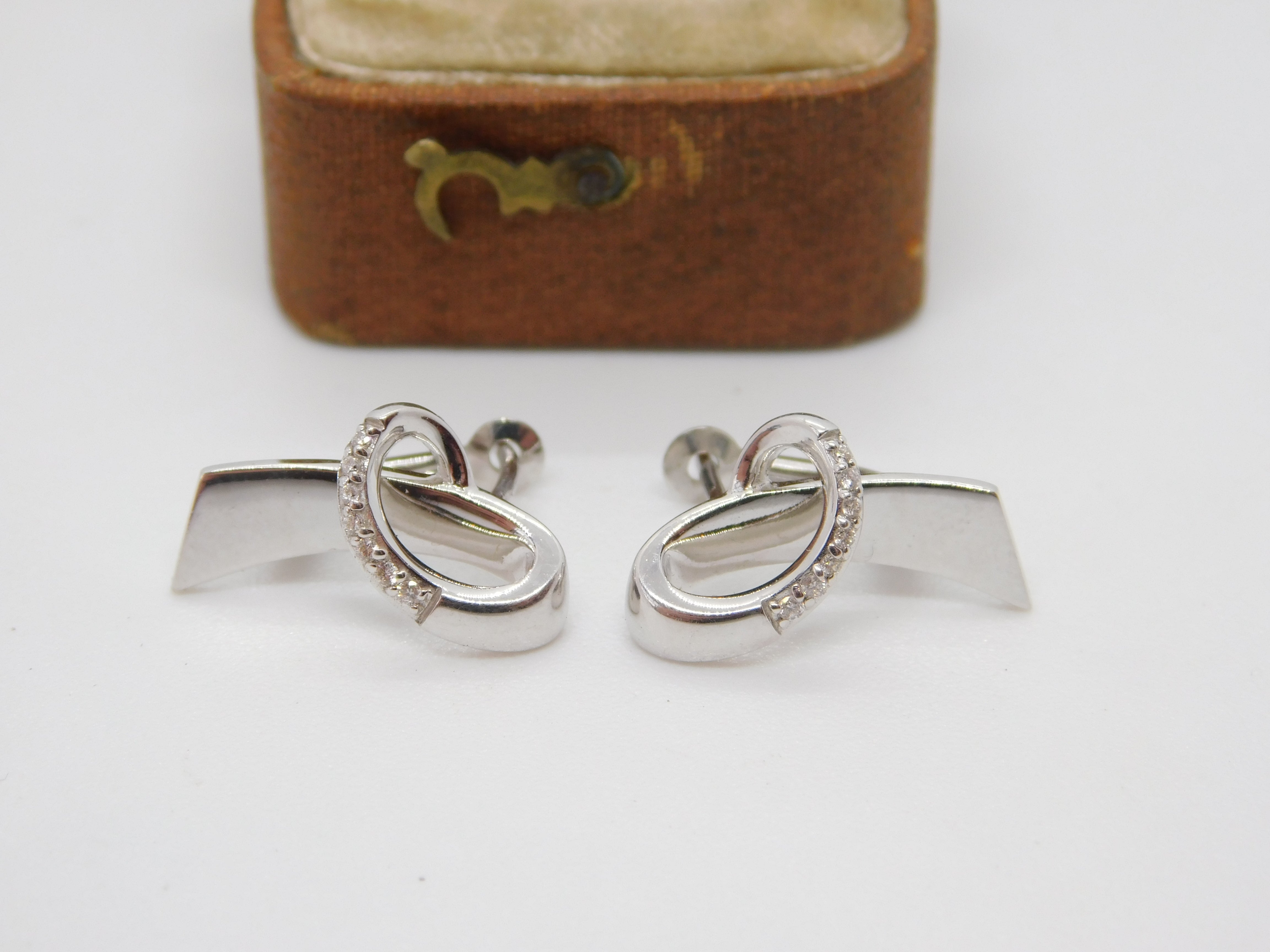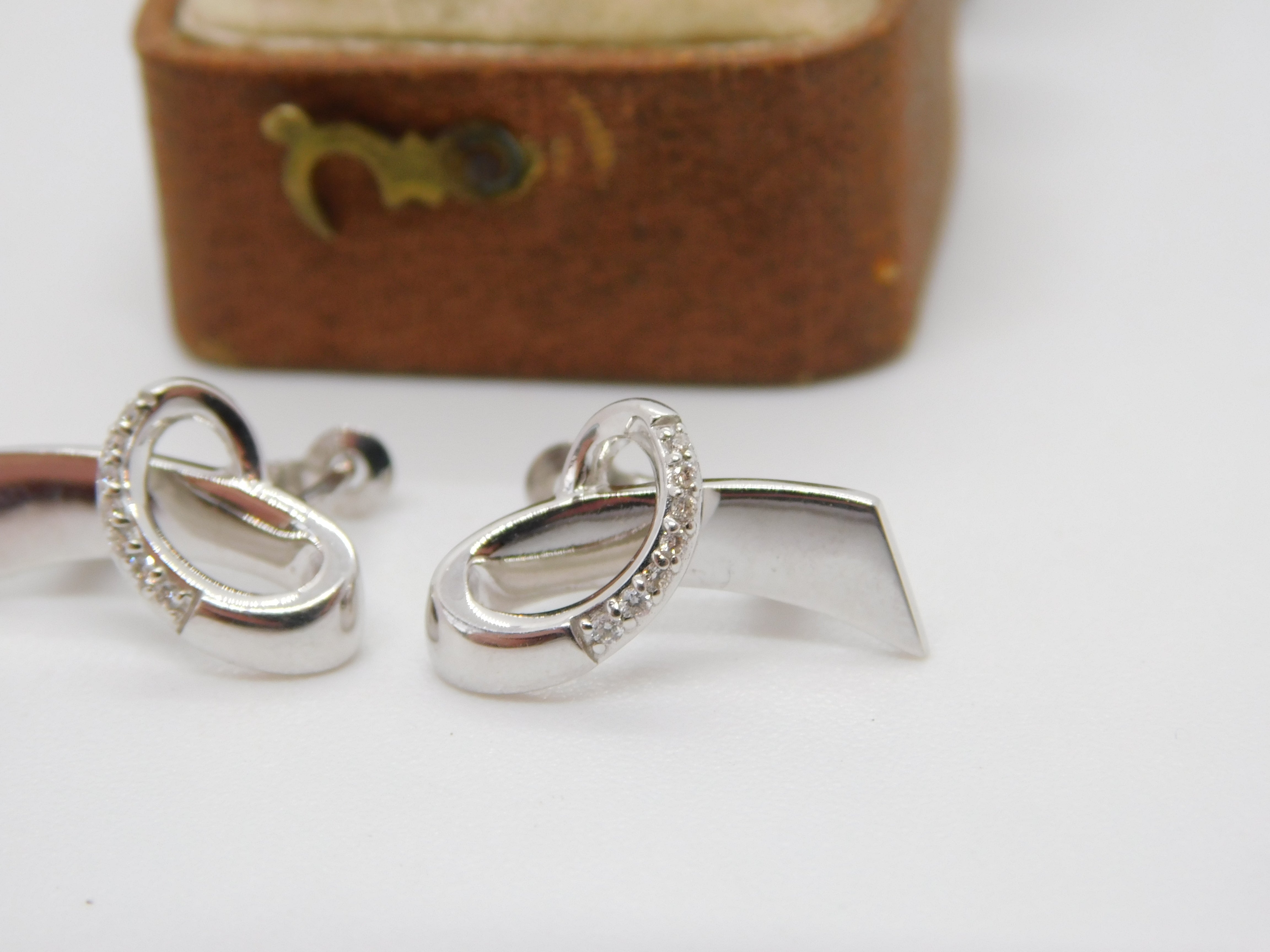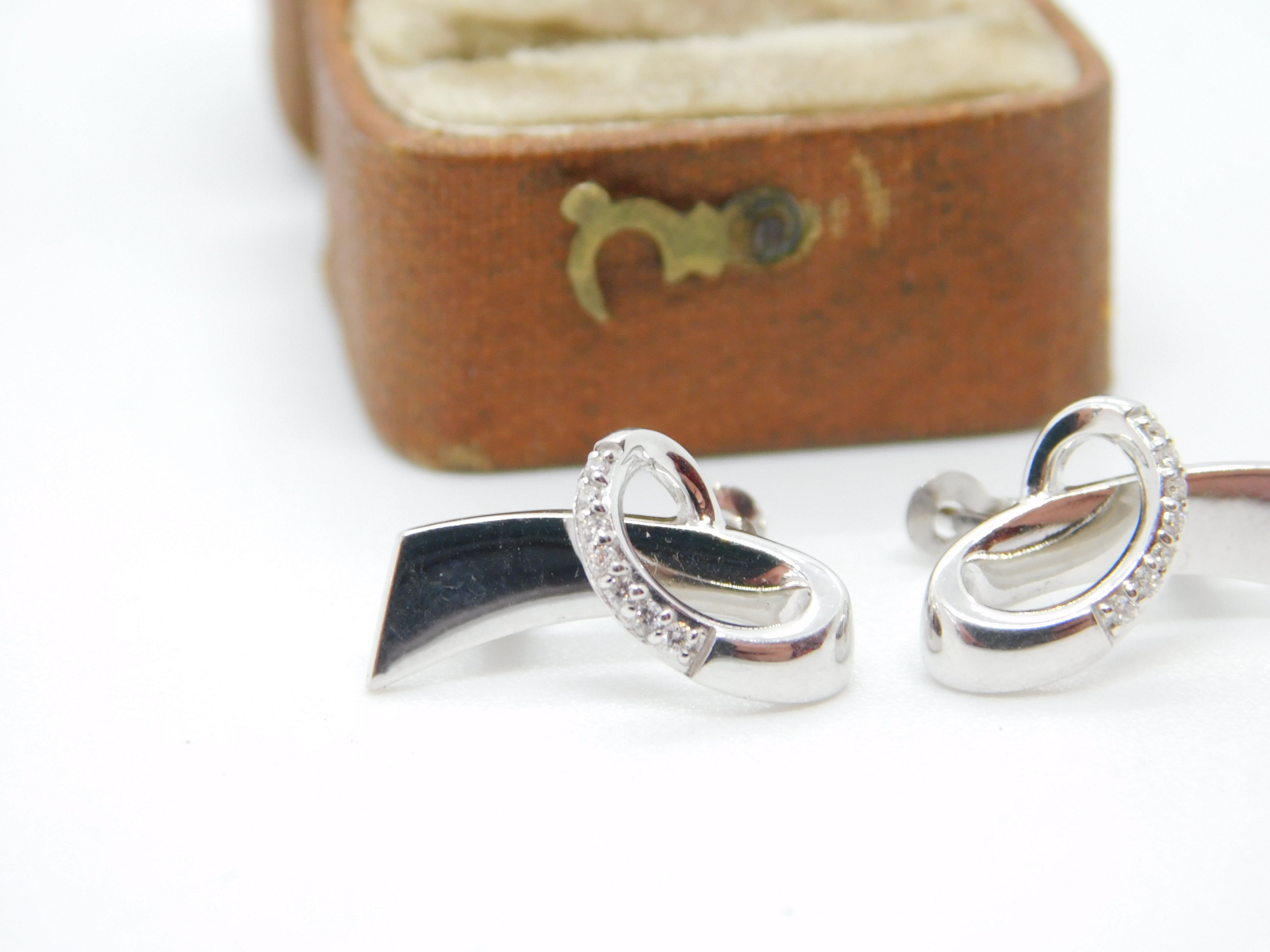 18ct White Gold Diamond Set Heart Shaped Modernist Earrings Vintage c2000