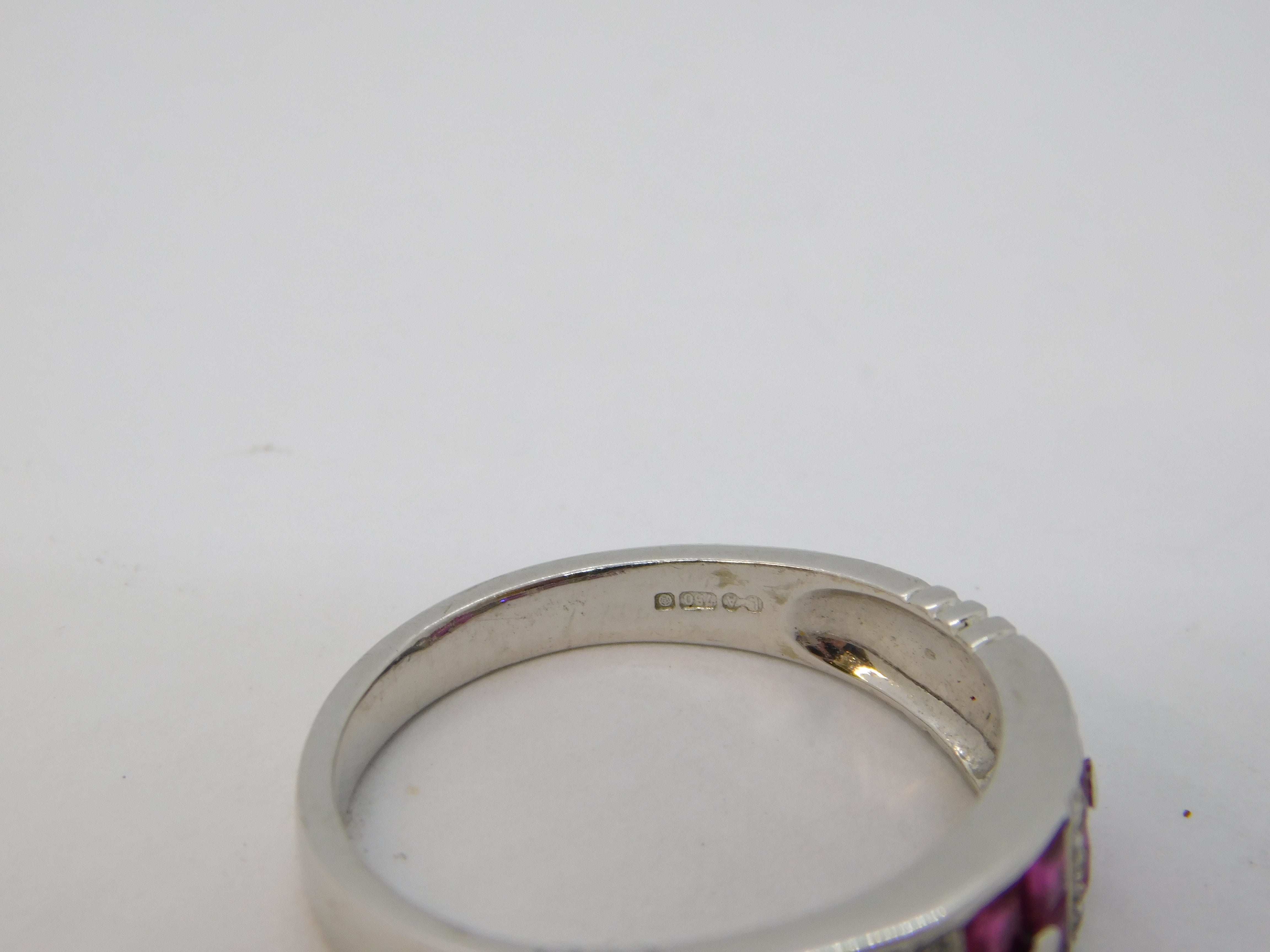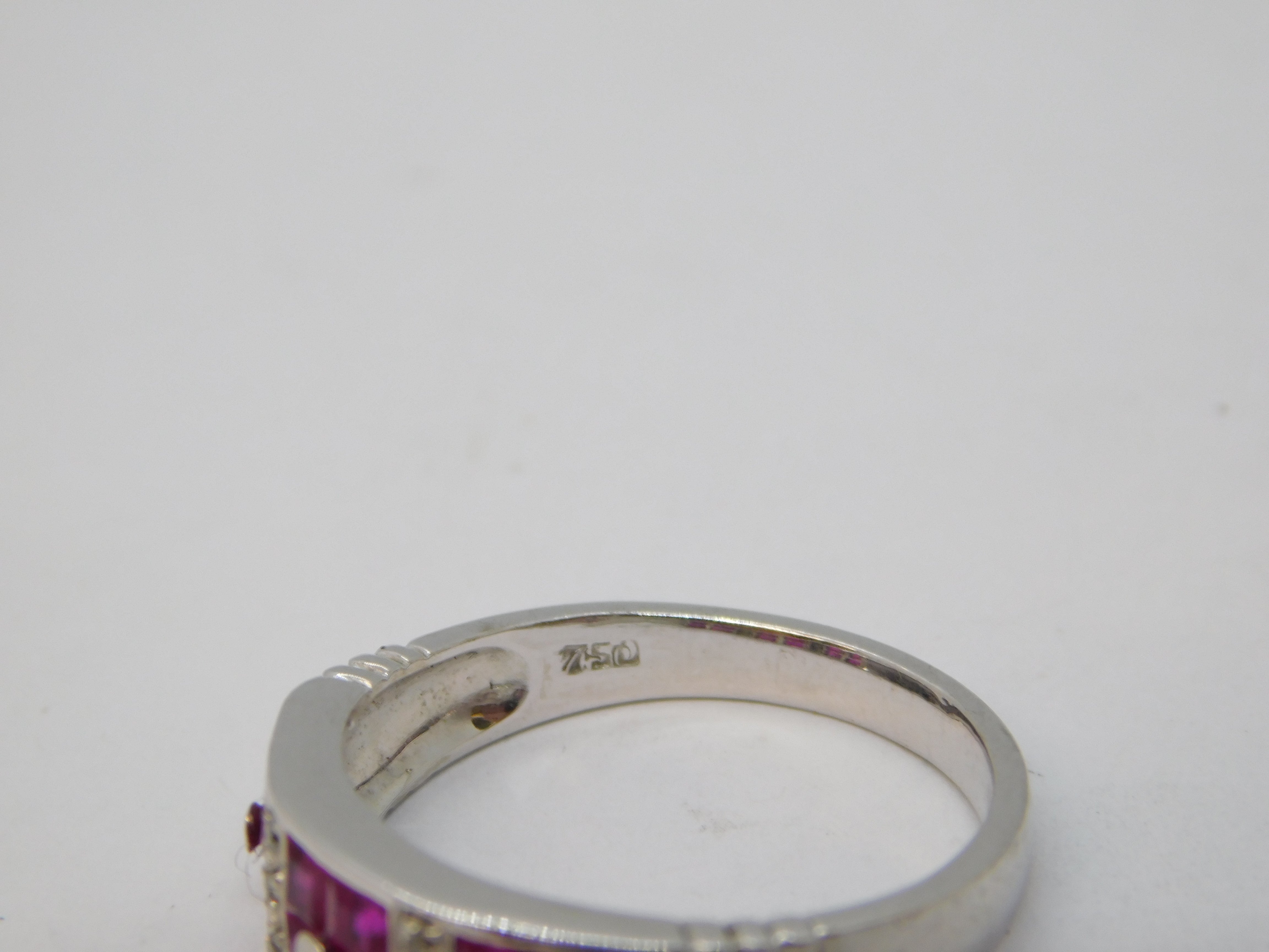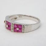 18ct White Gold, Diamond & Square-Cut Ruby Dress Ring Vintage Sheffield