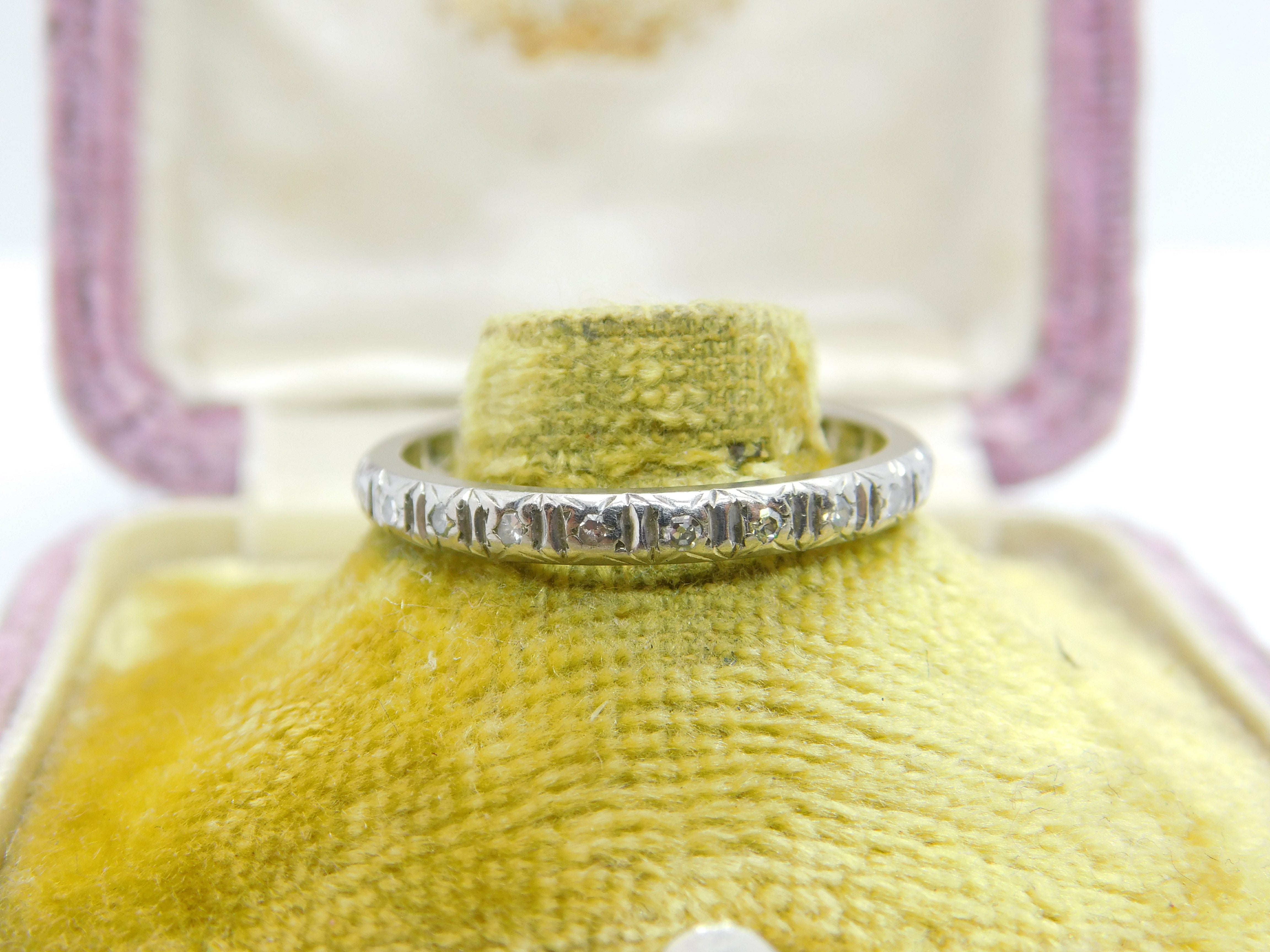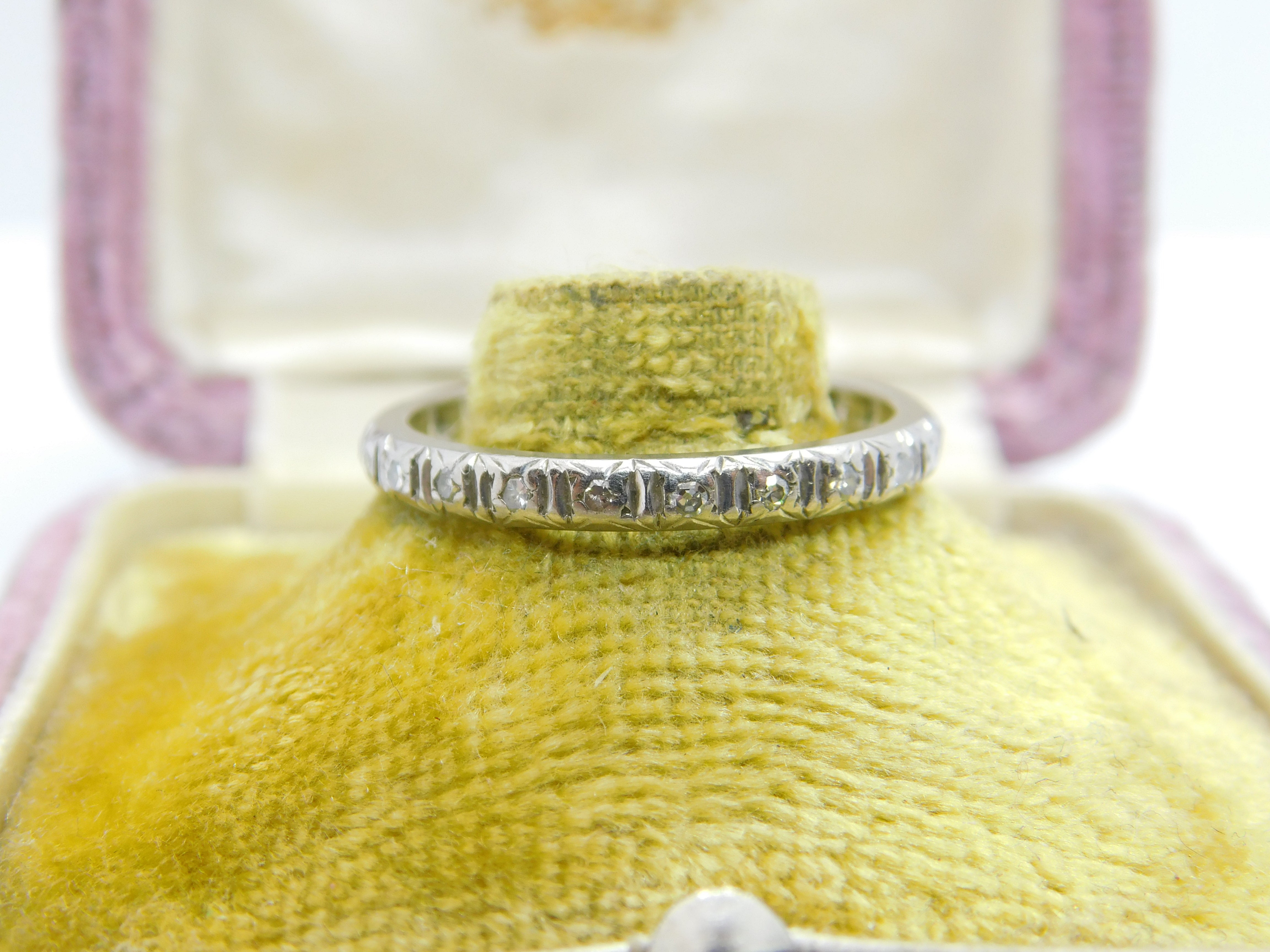 Details: A fantastic and wonderfully designed antique art deco 18ct white gold full eternity band ring set throughout with diamonds c1920, the gold has been XRF tested. The diamonds have been tested. This is a wonderful item that would make a perfect gift or addition to any collection. The BOX pictured is for PRESENTATION ONLY and is NOT included in the listings but used to frame the pictures unless specifically stated otherwise.