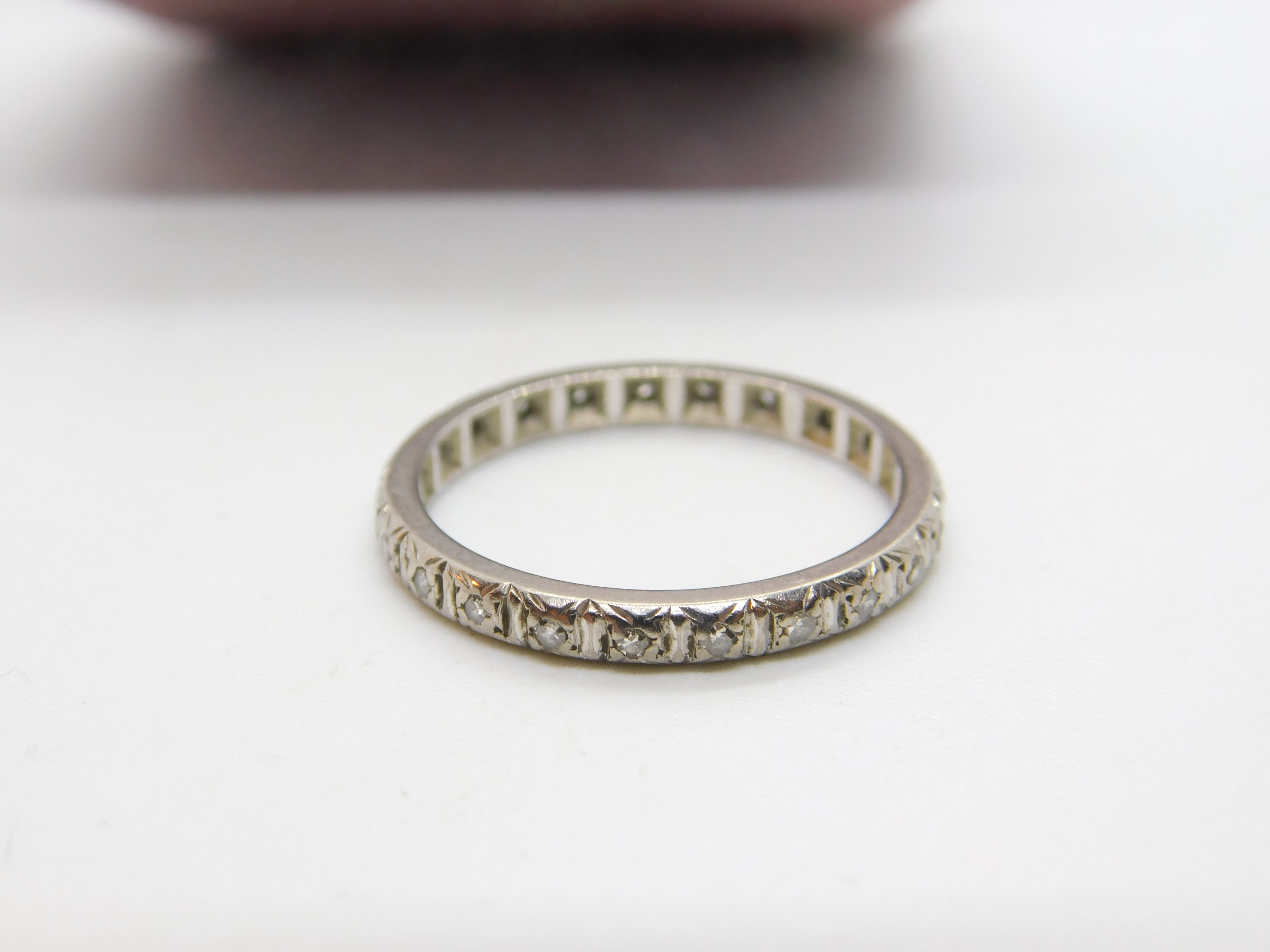 18ct White Gold & Natural Diamond Set Full Eternity Ring Antique c1920 Art Deco