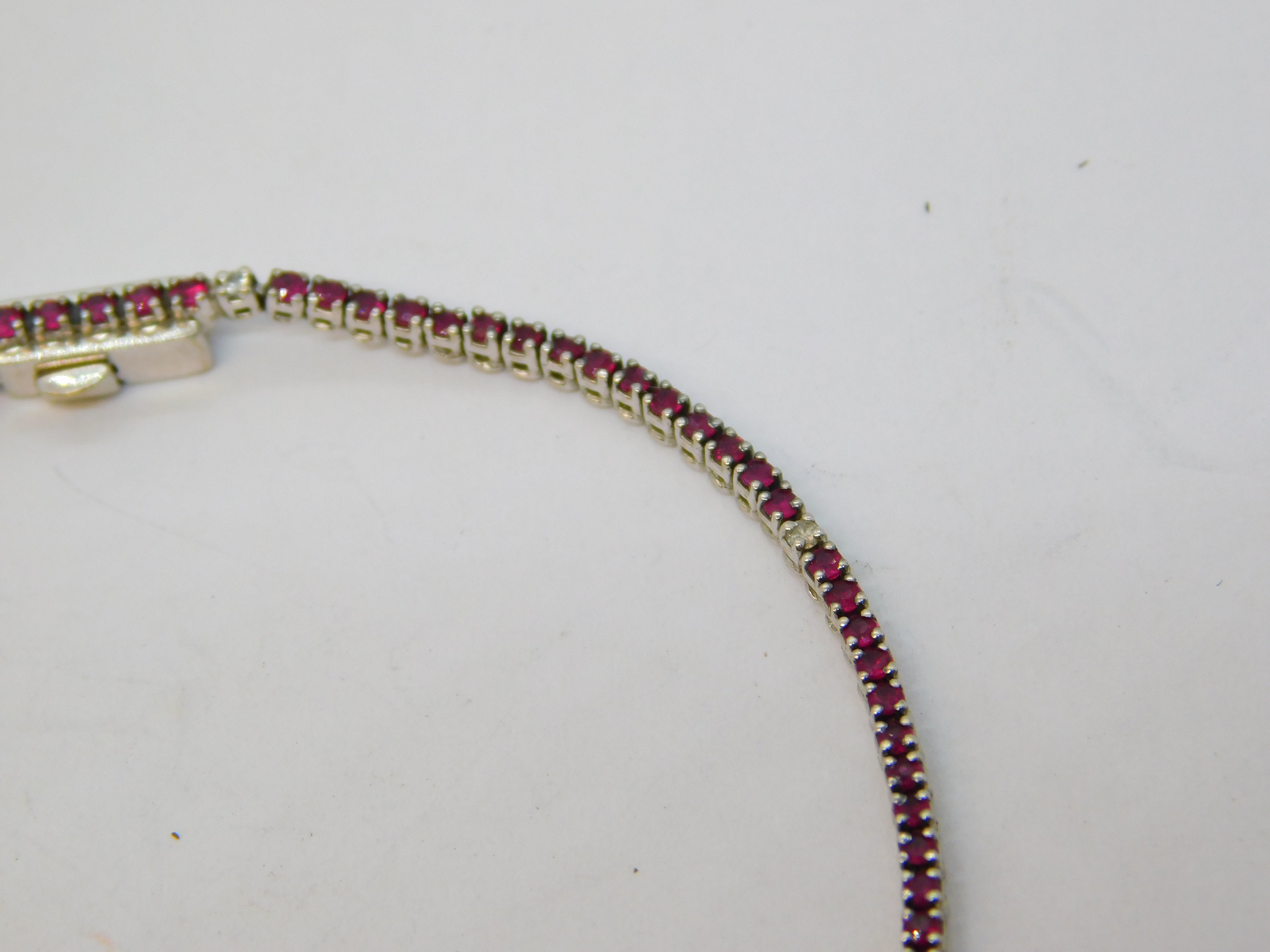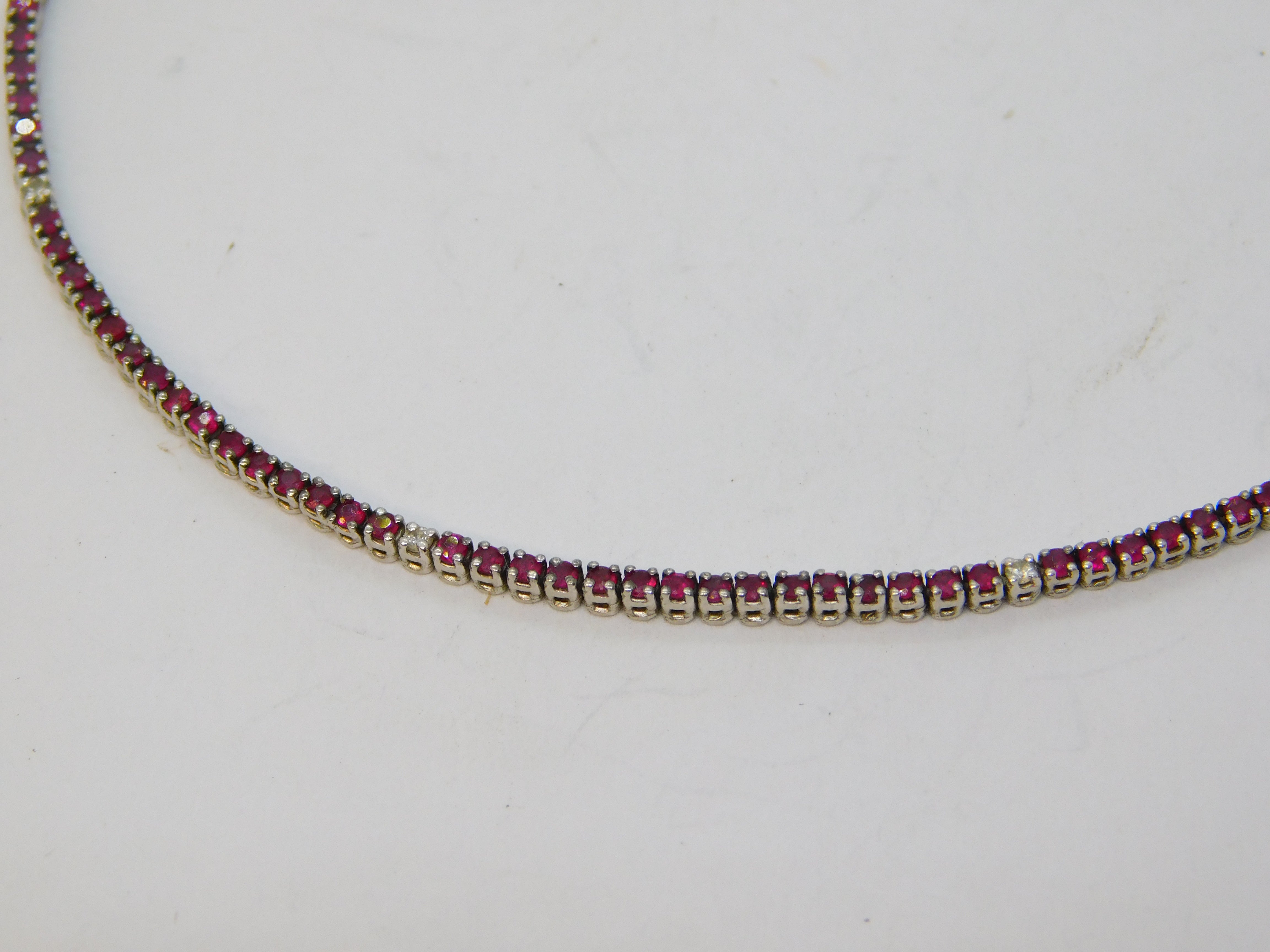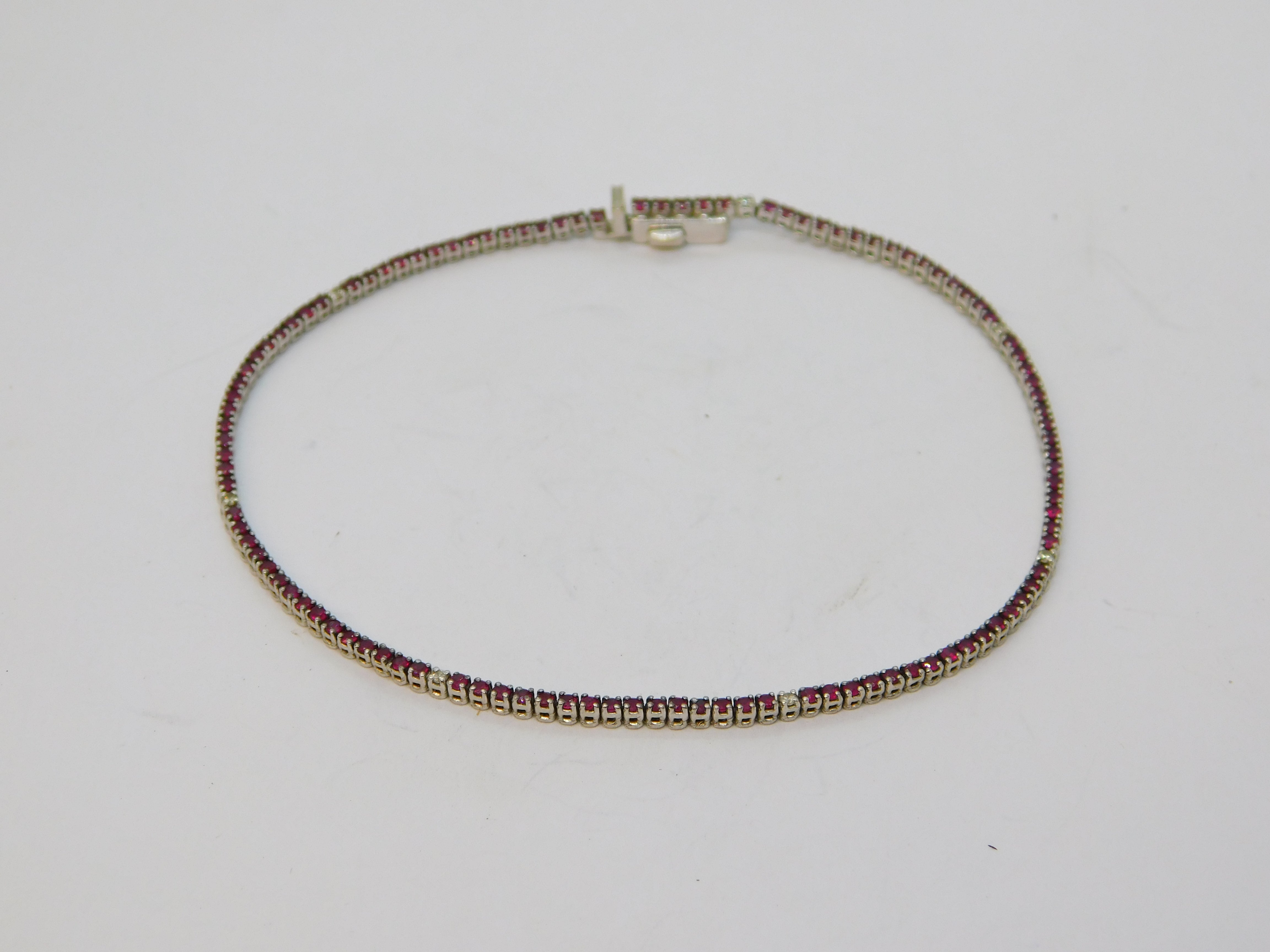 18ct White Gold, Ruby & Diamond Set Tennis Bracelet Vintage c1990