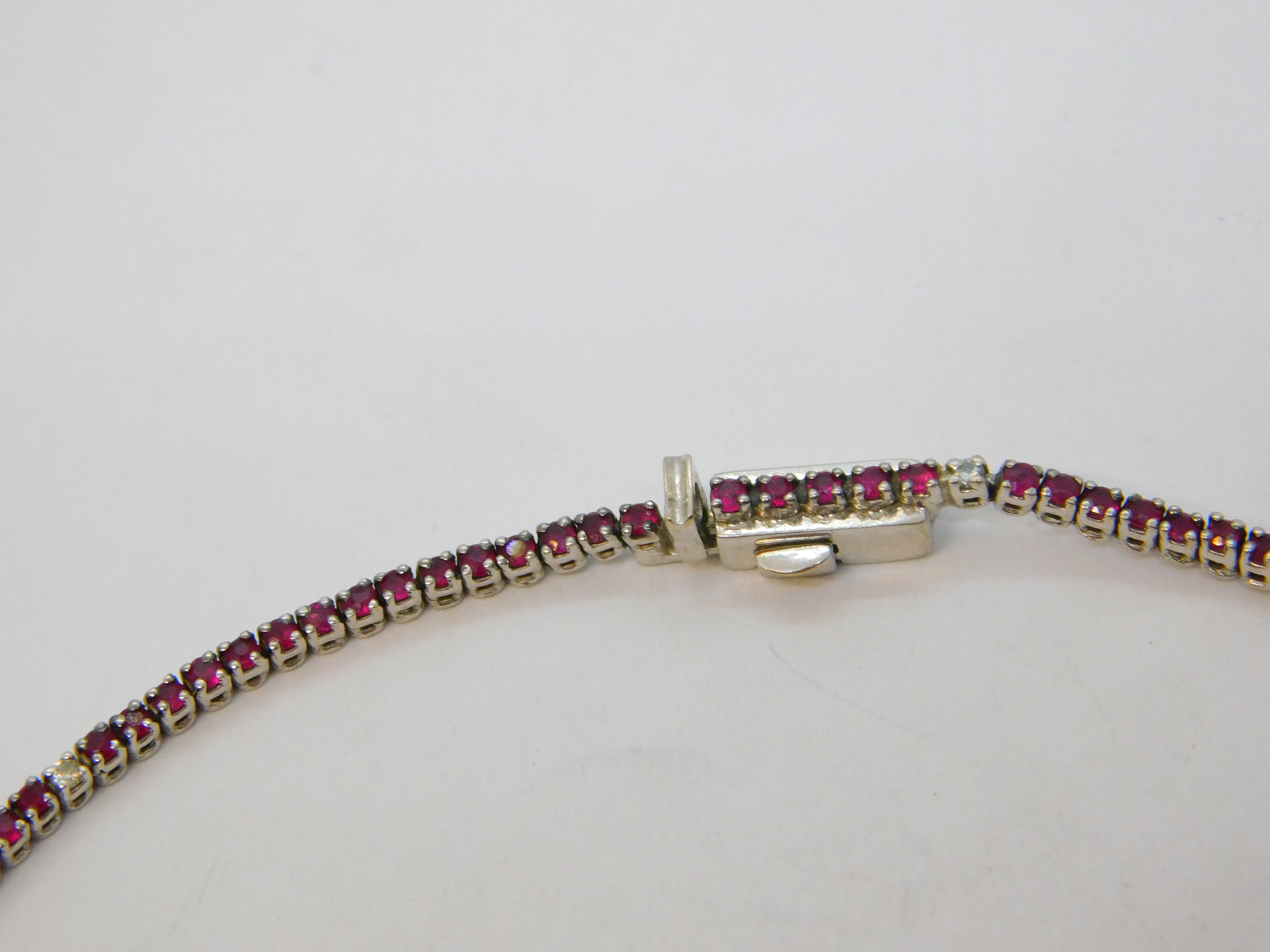 Details: A fantastic and wonderfully designed vintage 18ct white gold tennis bracelet set throughout with rubies and diamonds hallmarked to the bale with Italian marks and '750' marks, the stones have been tested. This is a wonderful item that would make a perfect gift or addition to any collection. We are more than happy to provide XRF reports for items upon request.