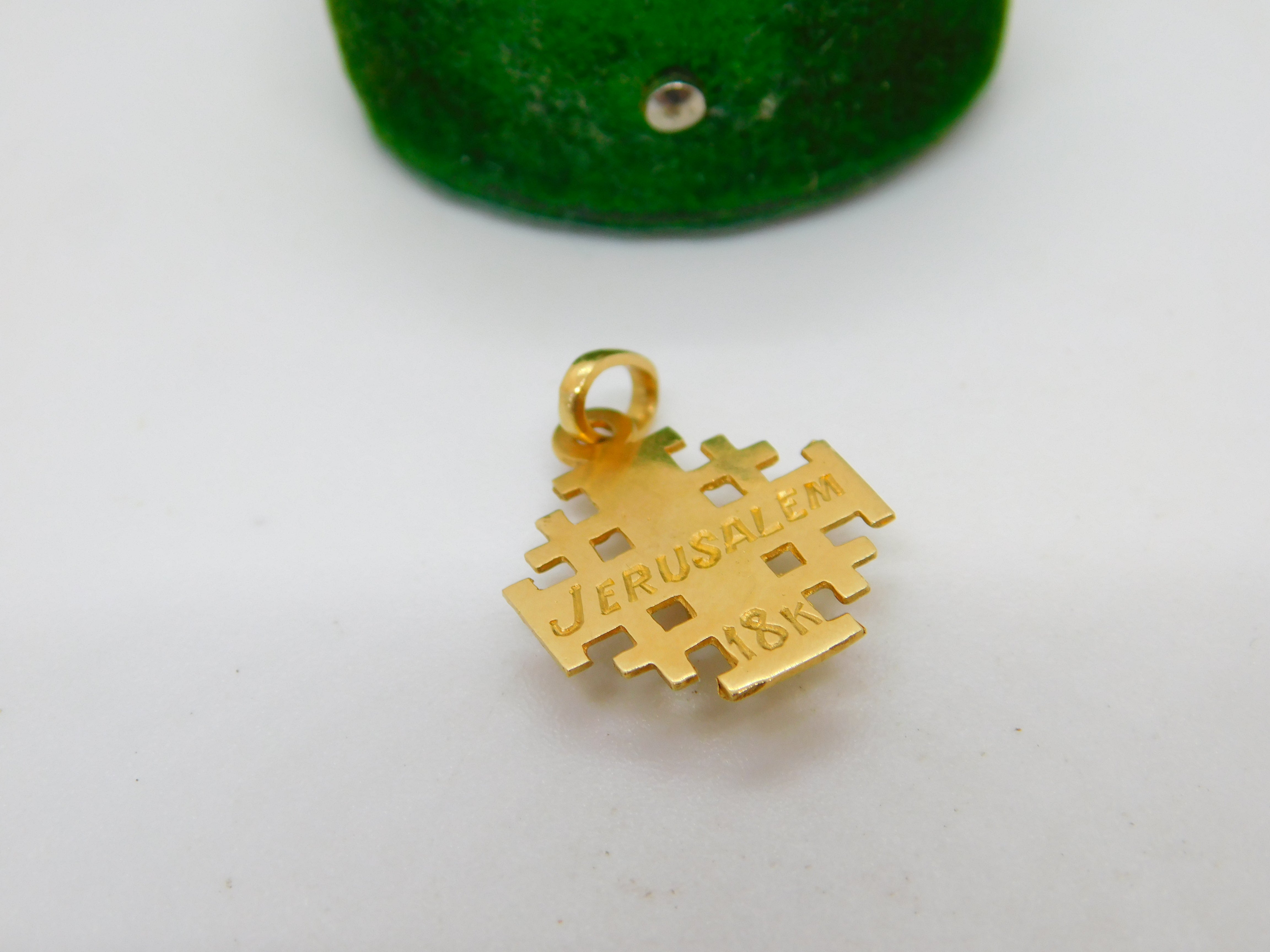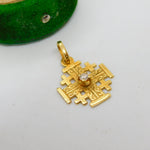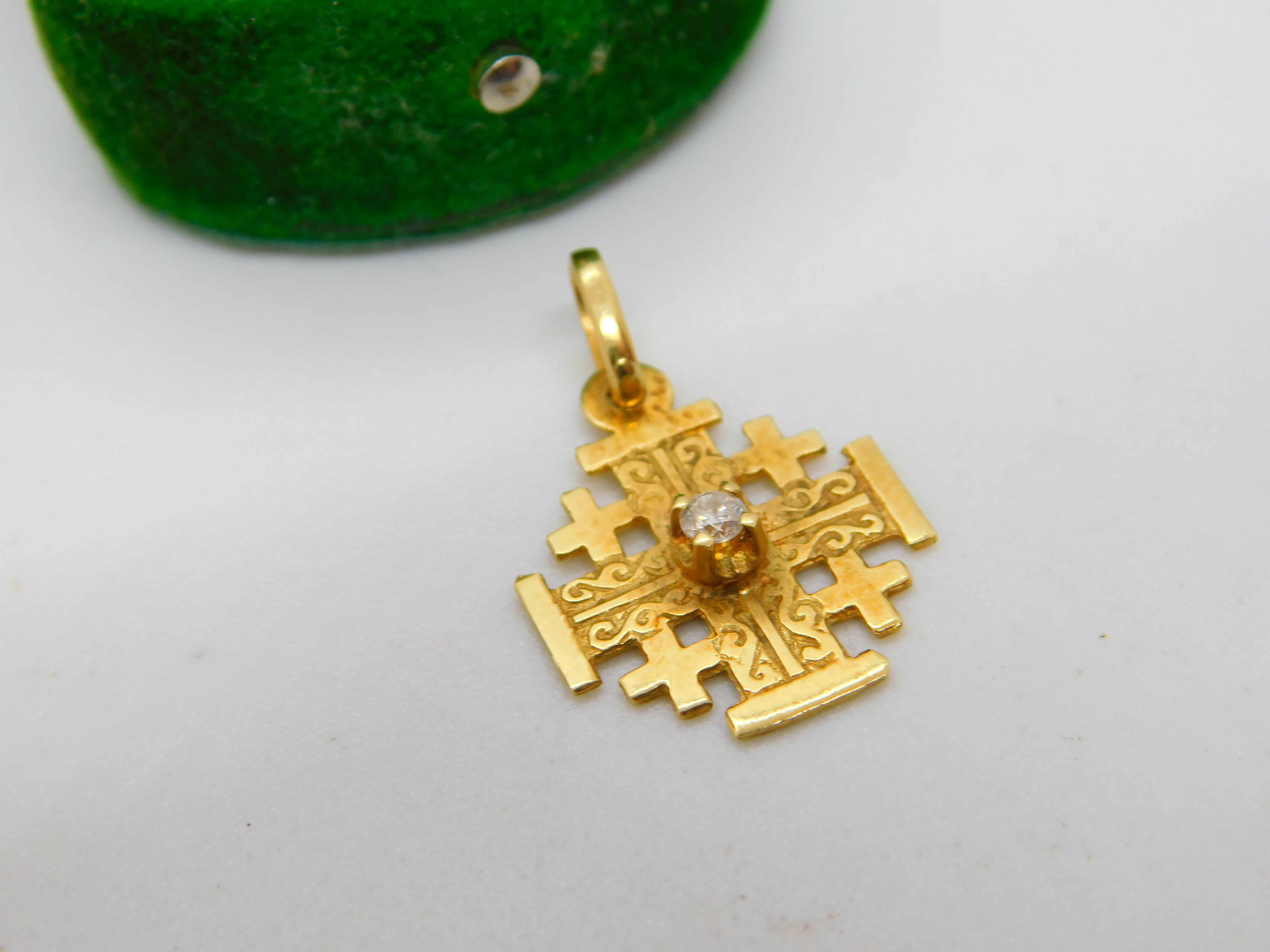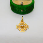 18ct Yellow Gold & 0.1ct Diamond Jerusalem Cross Pendant Vintage c1960