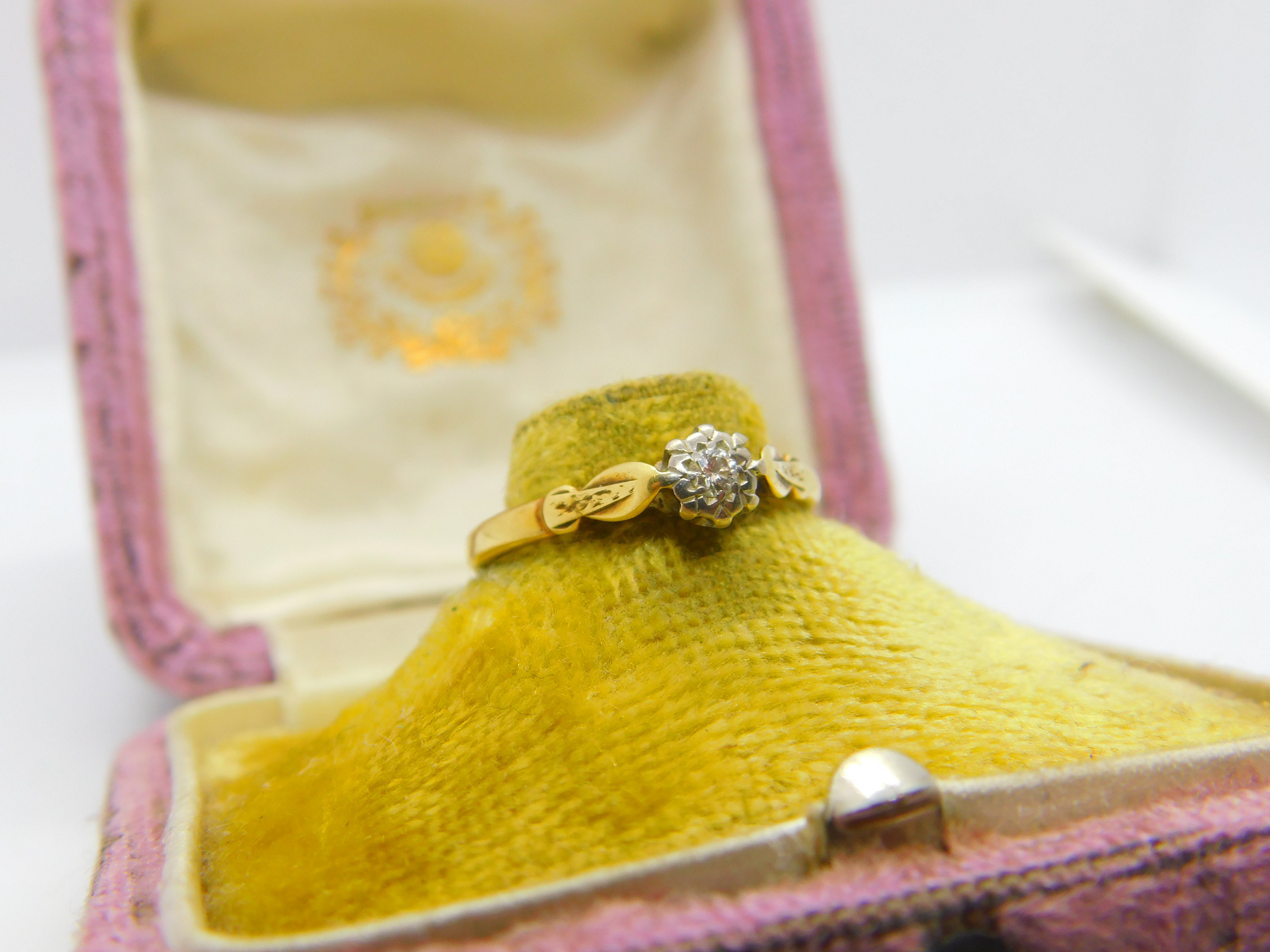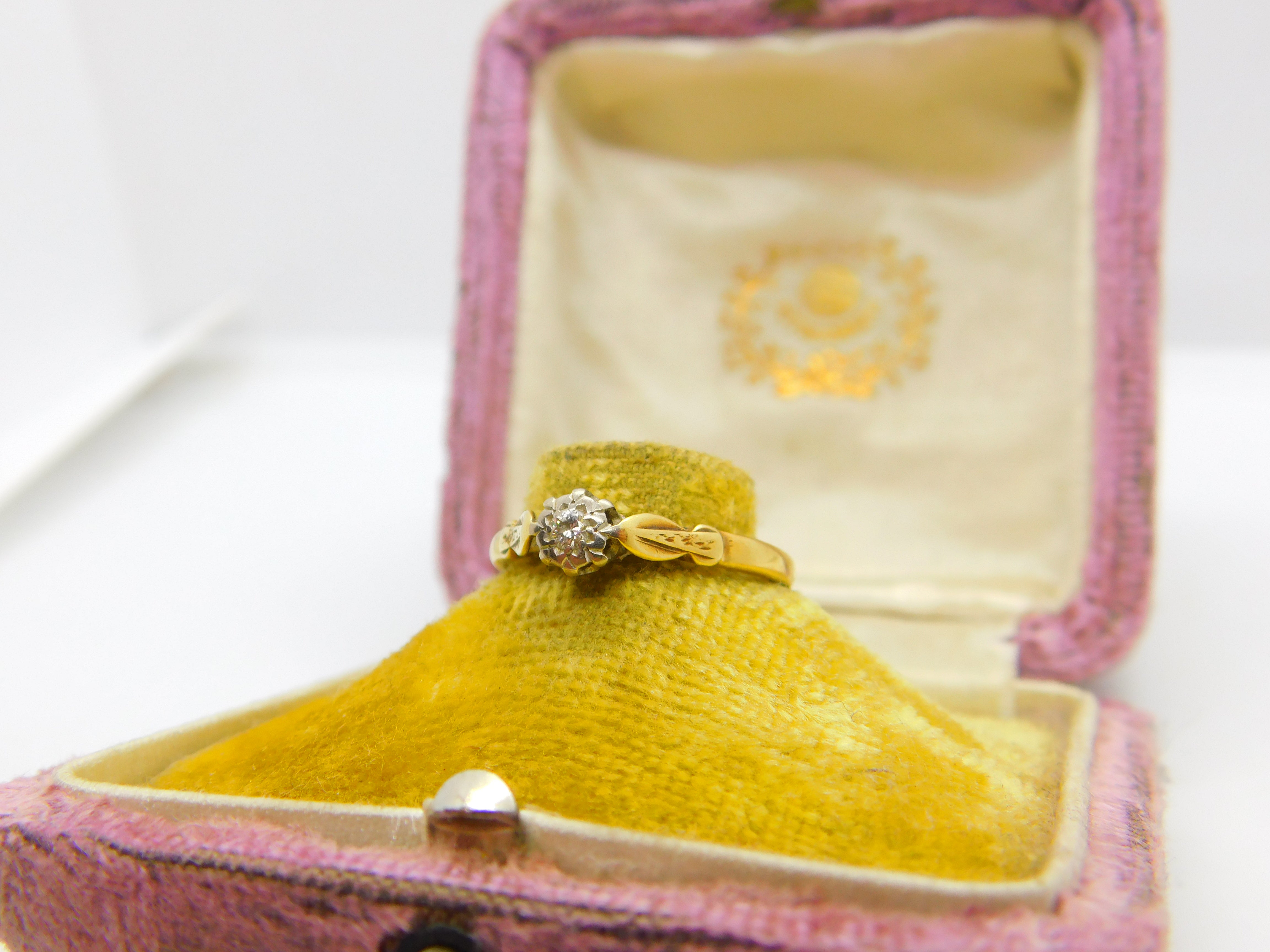 Details: A fantastic and wonderfully designed vintage 18ct yellow gold & 0.1ct diamond set solitaire ring hallmarked Birmingham 1950 to the interior band and the diamond has been tested. This is a wonderful item that would make a perfect gift or addition to any collection. The BOX pictured is for PRESENTATION ONLY and is NOT included in the listings but used to frame the pictures unless specifically stated otherwise.