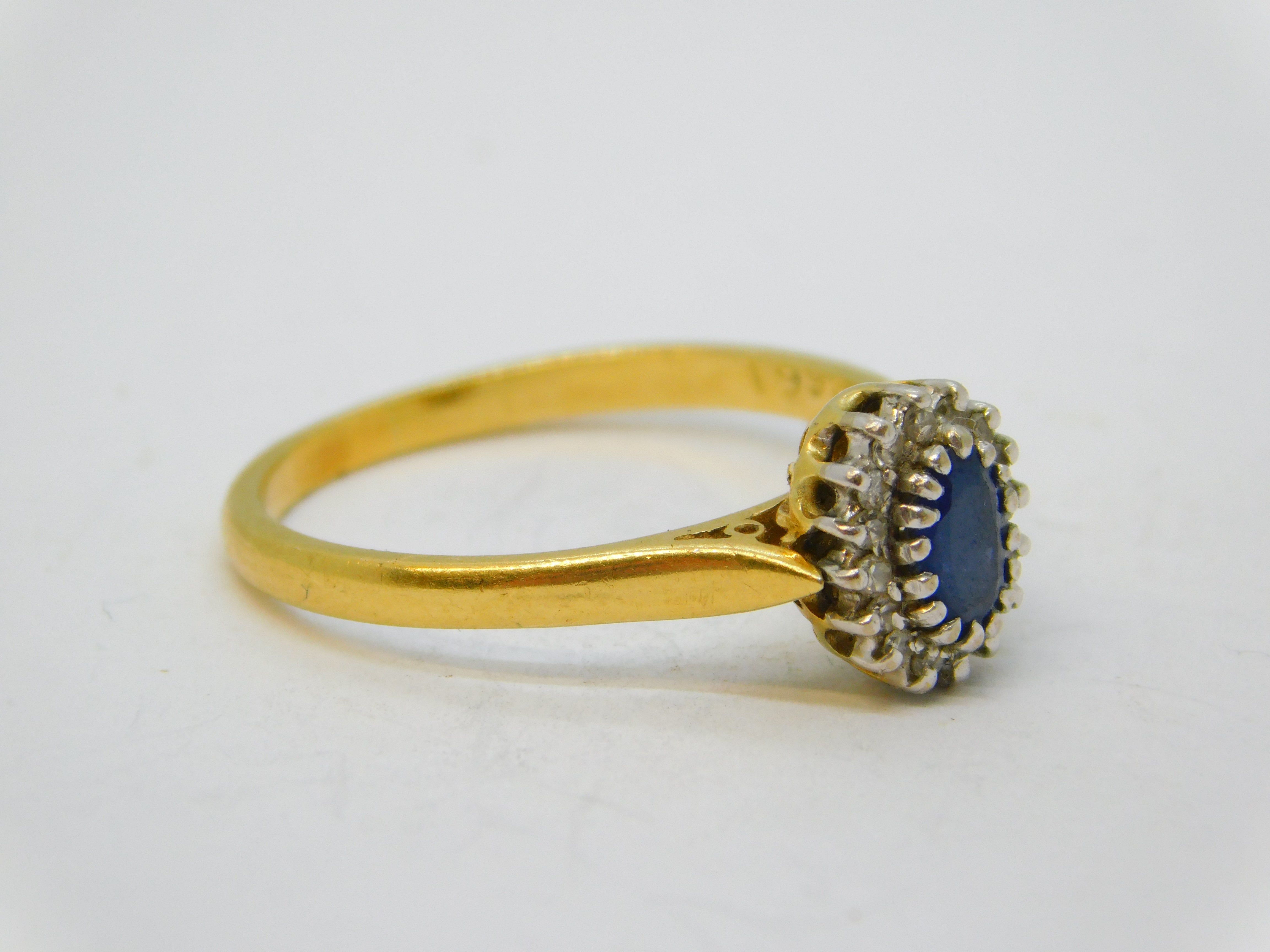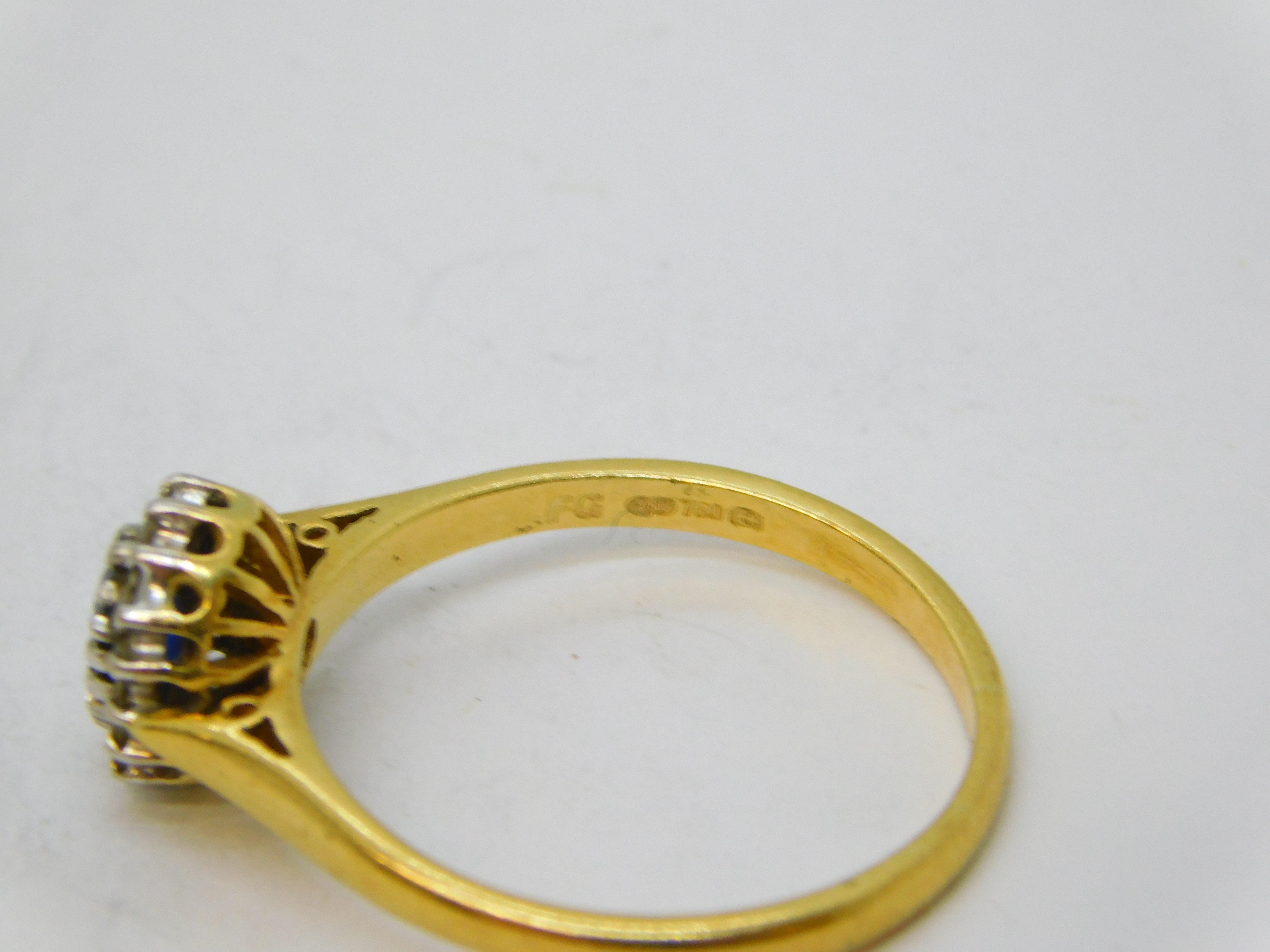 Details: A fantastic and wonderfully designed vintage 18ct yellow gold floral cluster or engagement ring set with central oval-cut sapphire (approximately 0.25ct) flanked by brilliant cut diamonds, hallmarked to the interior for Birmingham c1990, the stones have all been machine tested. This is a wonderful item that would make a perfect gift or addition to any collection. We are more than happy to provide XRF reports for items upon request.