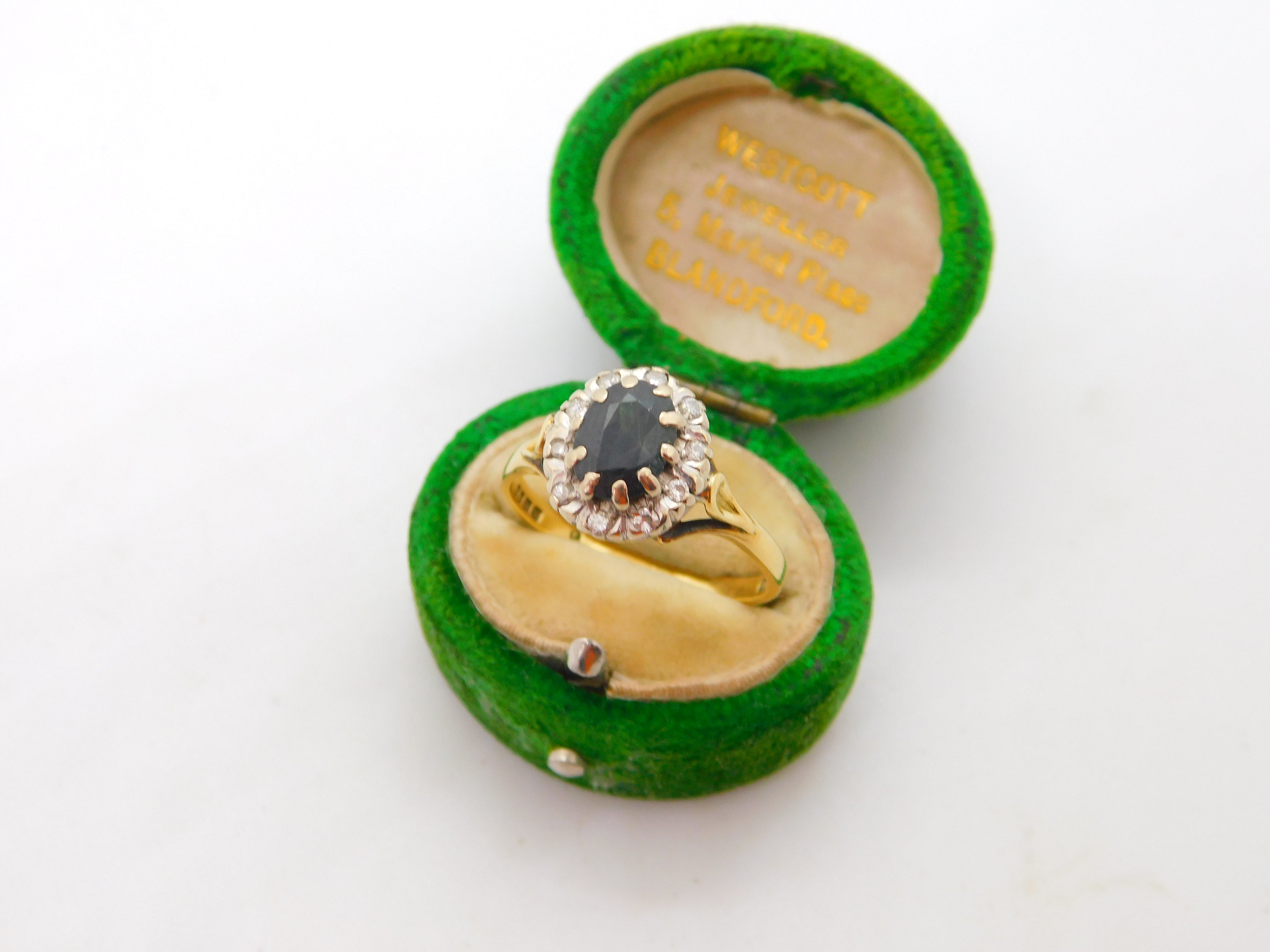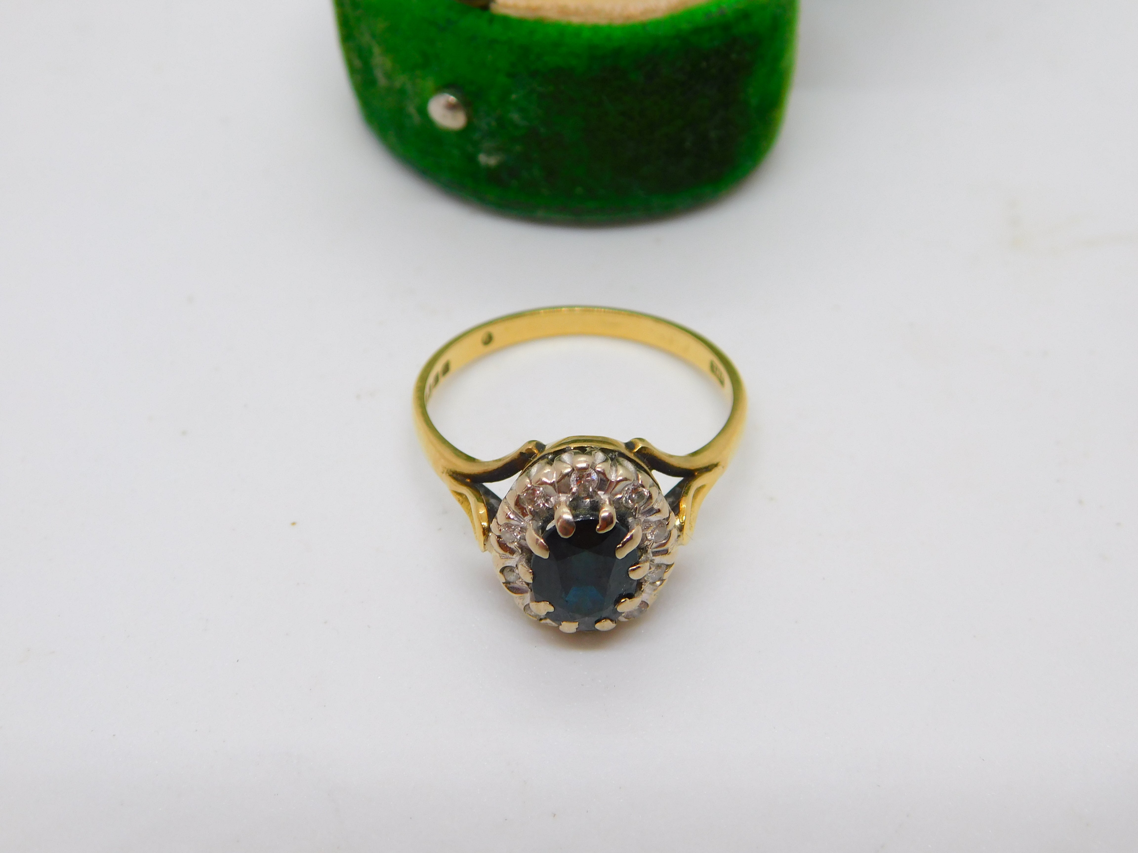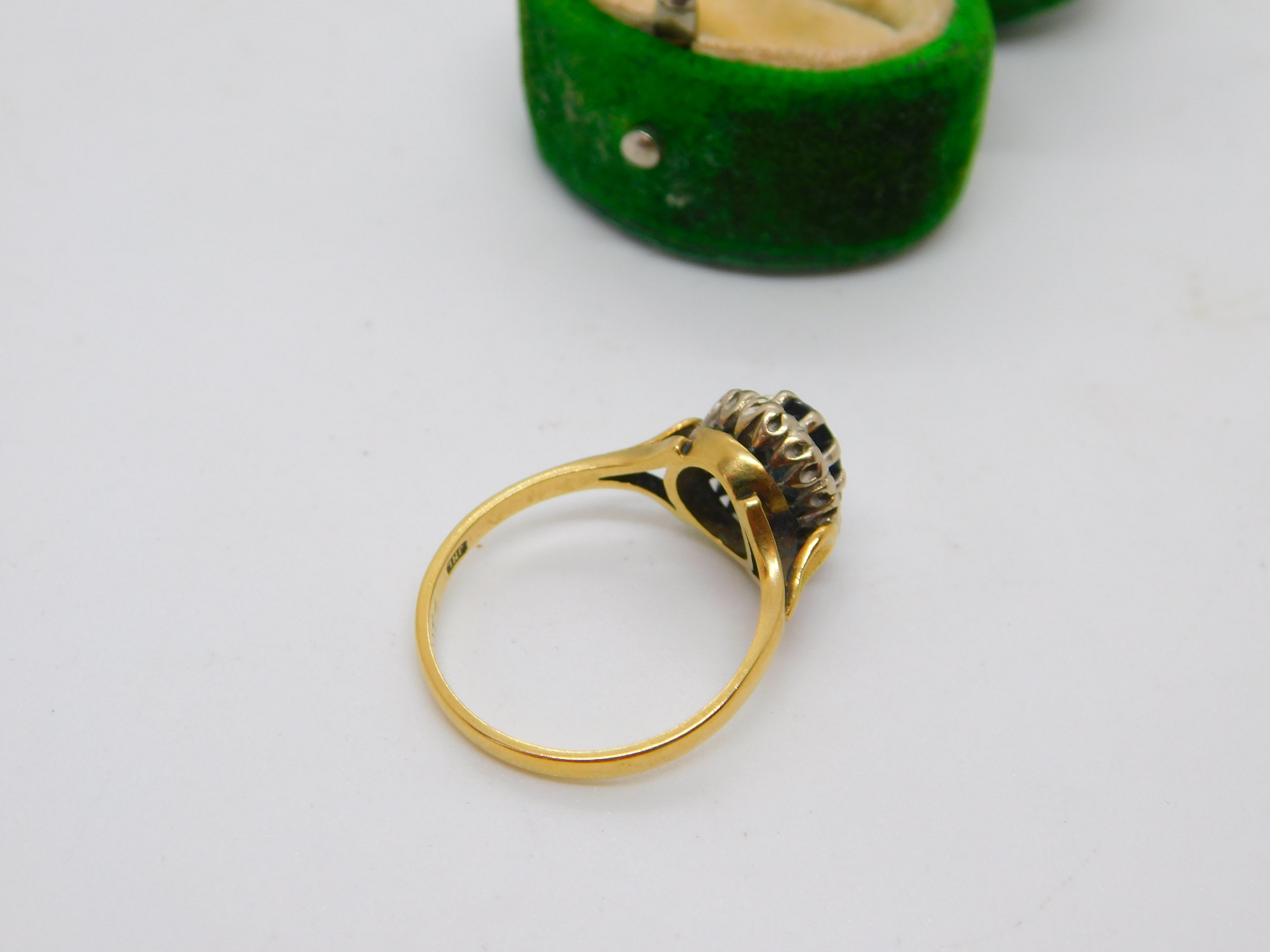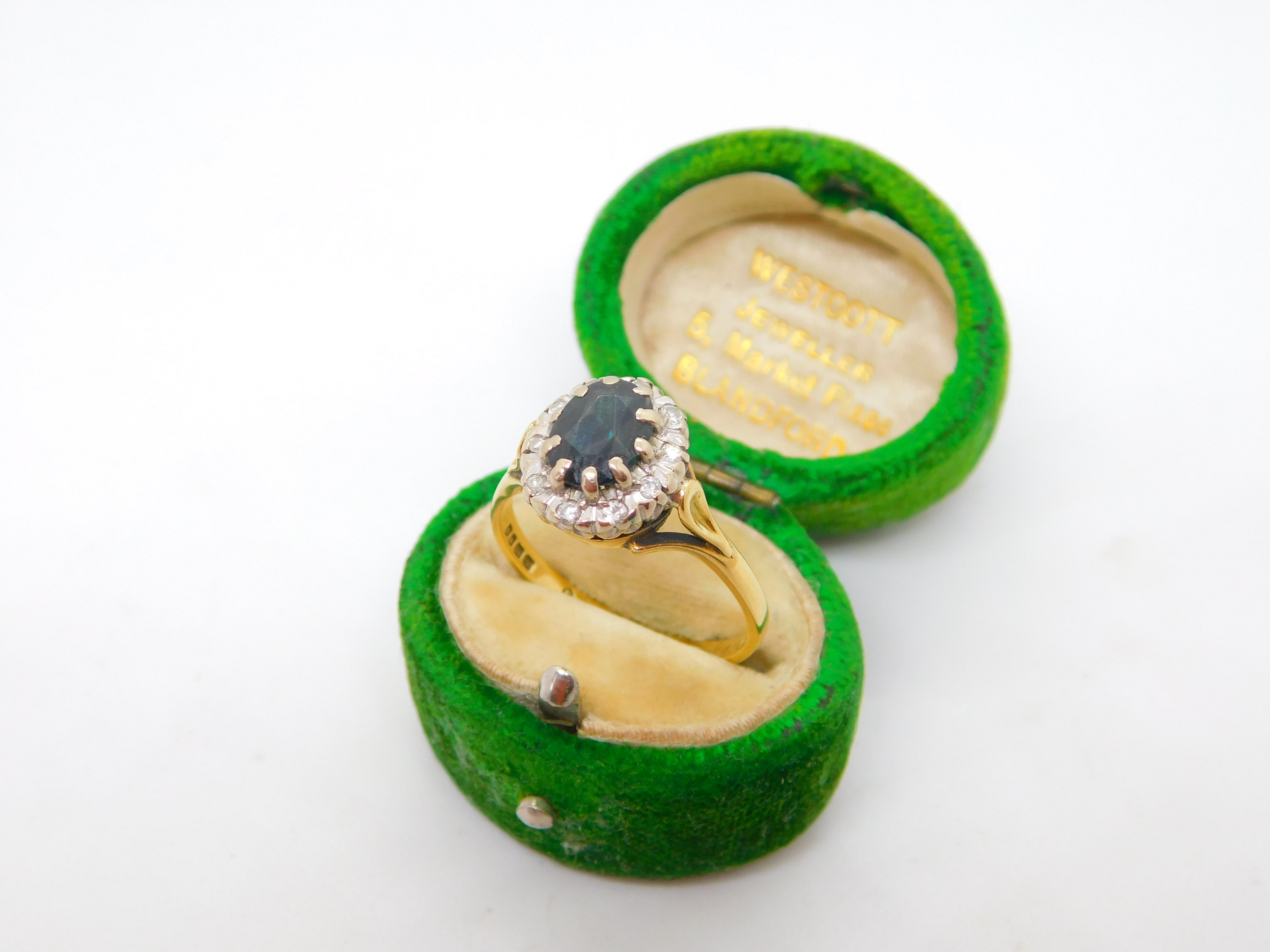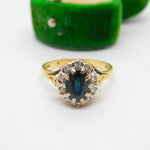 18ct Yellow Gold, 1ct Sapphire & Diamond Dress Ring Vintage 1973 London