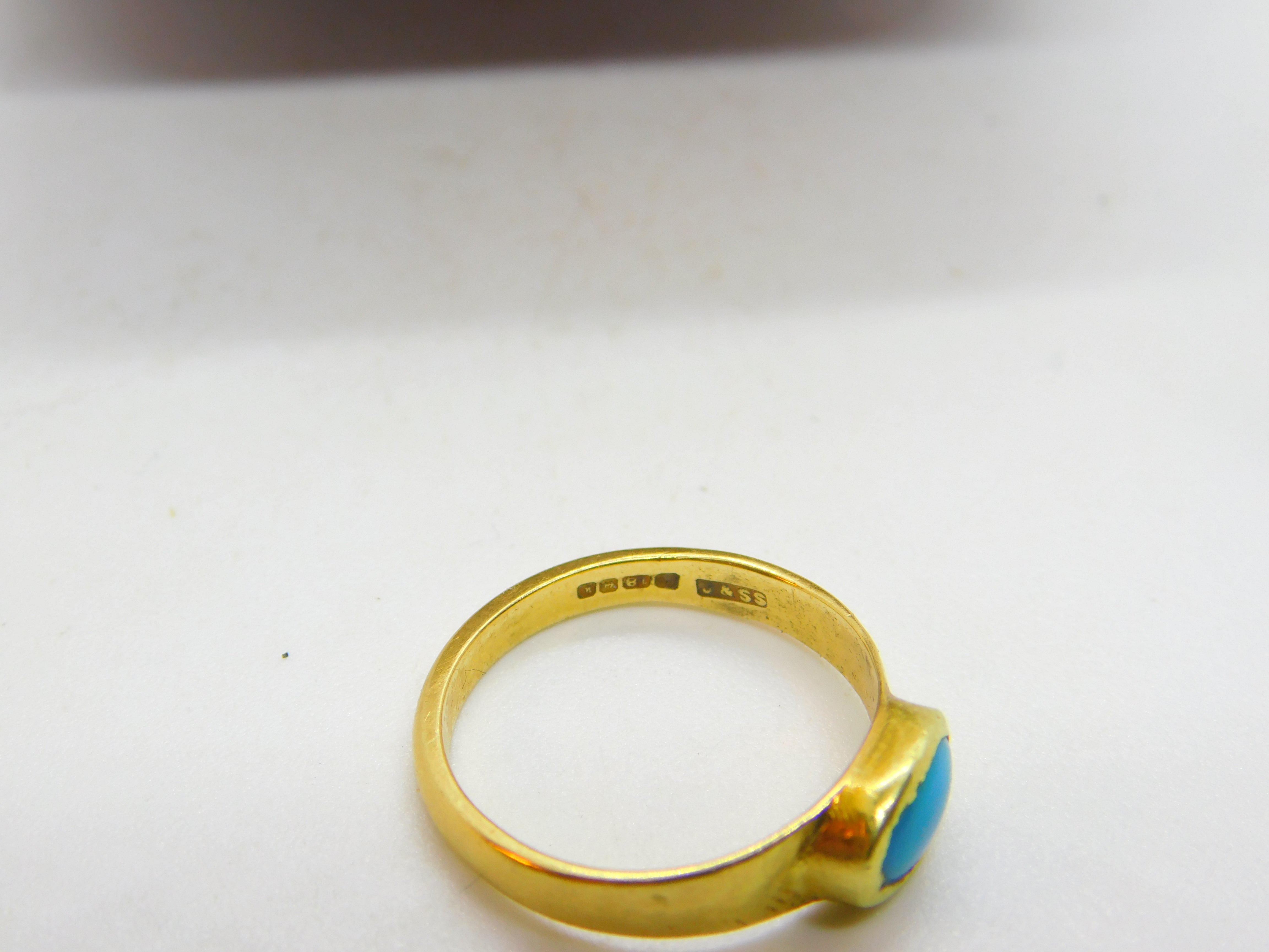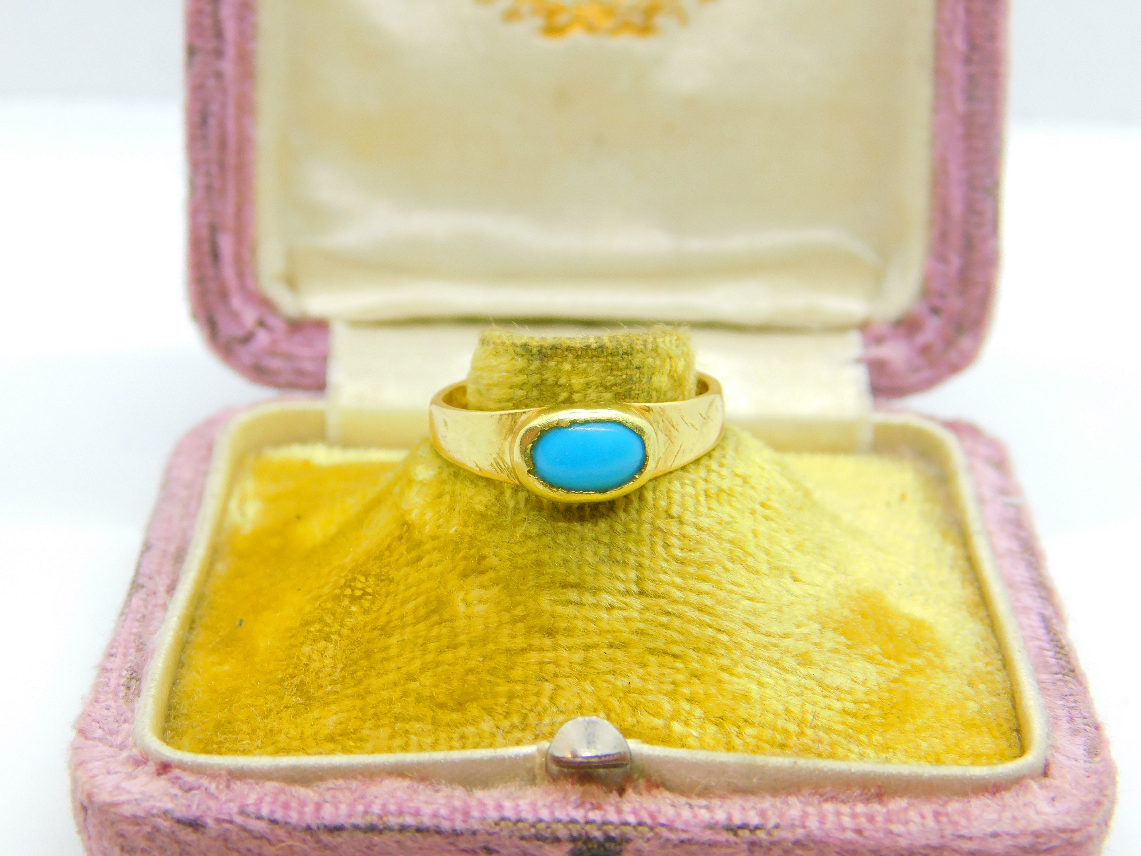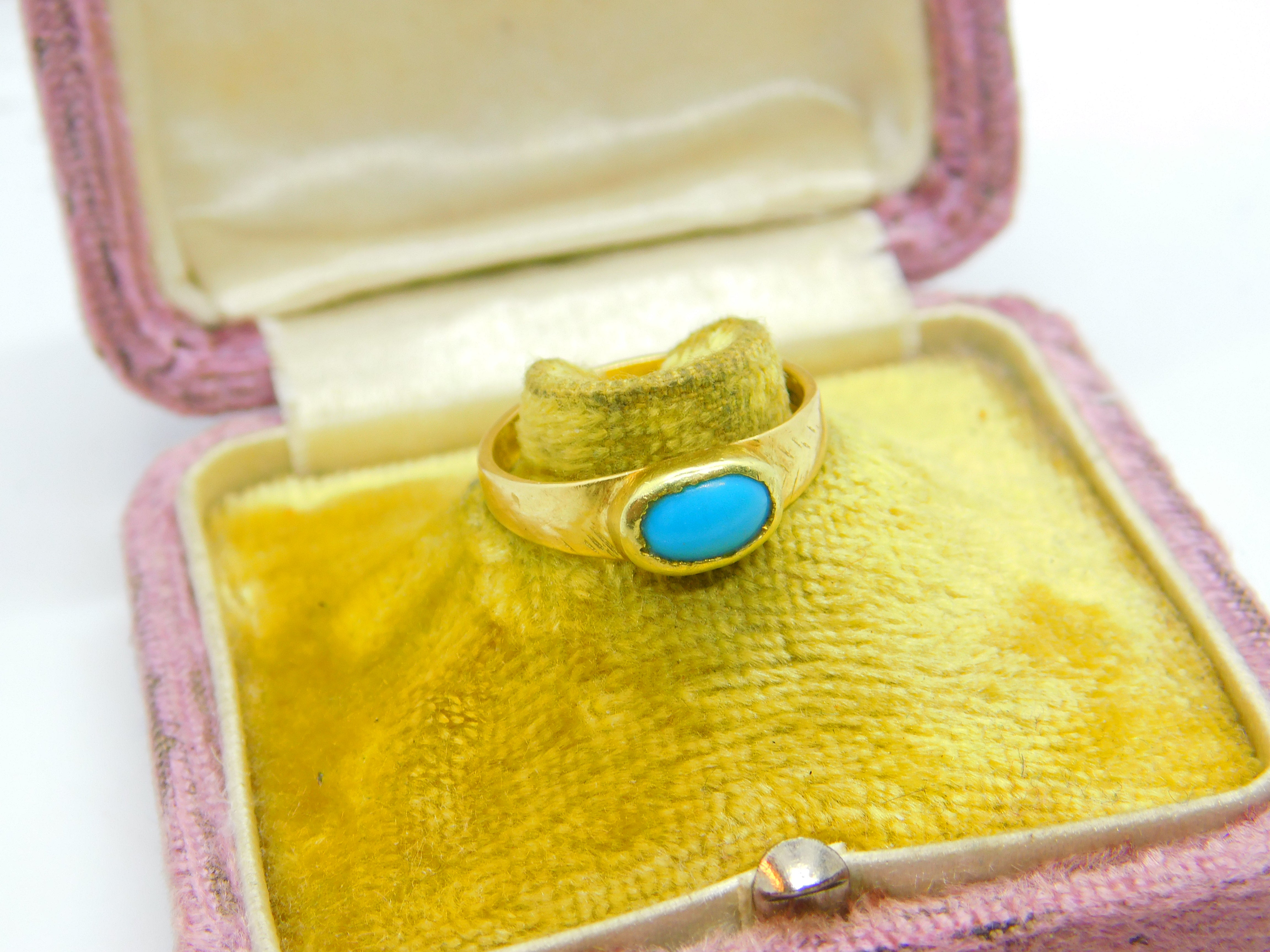 18ct Yellow Gold Cabochon Turquoise Set Band Ring 1921 Birmingham Antique
