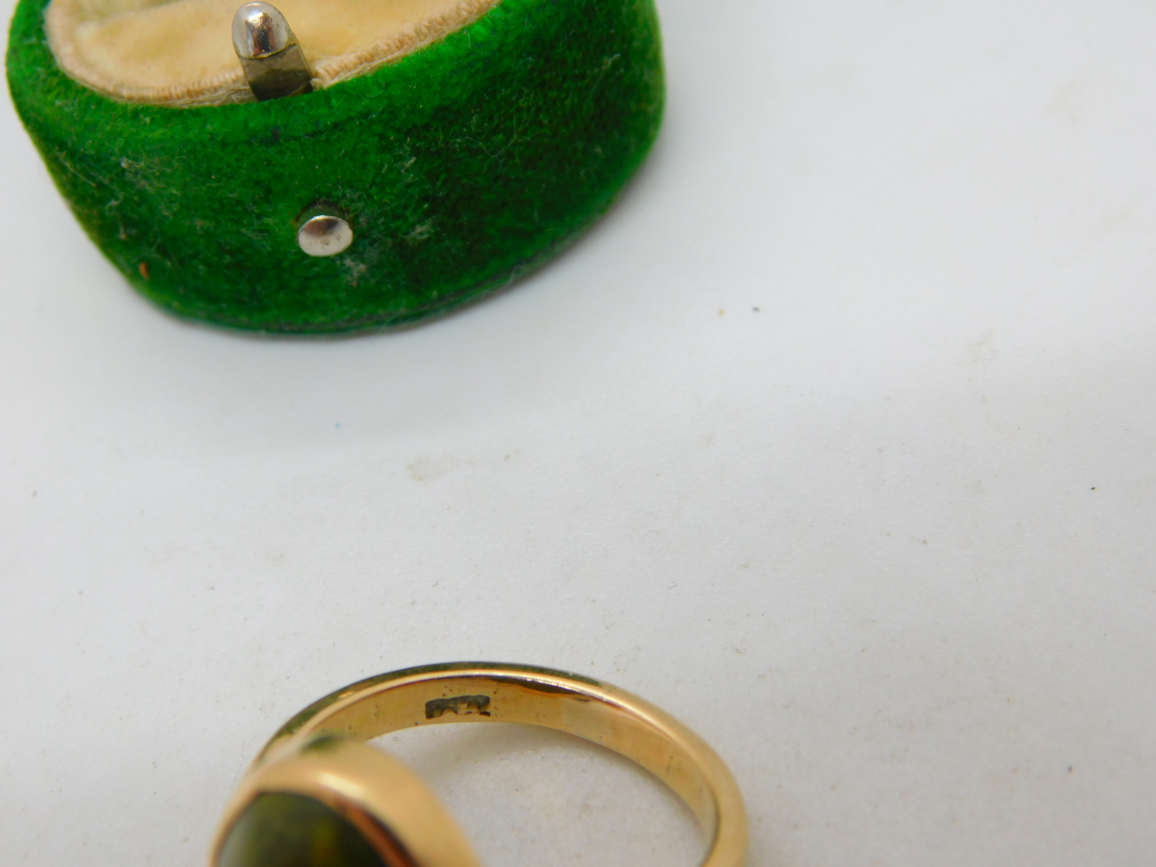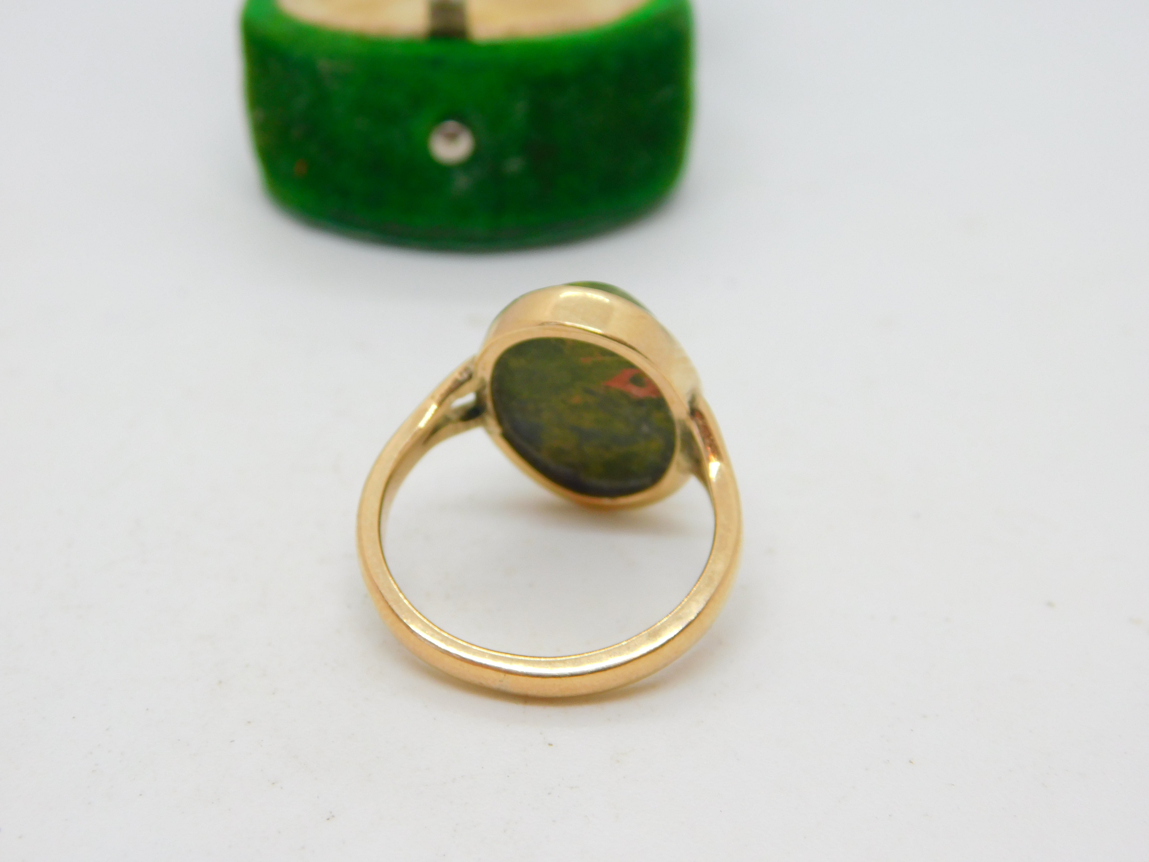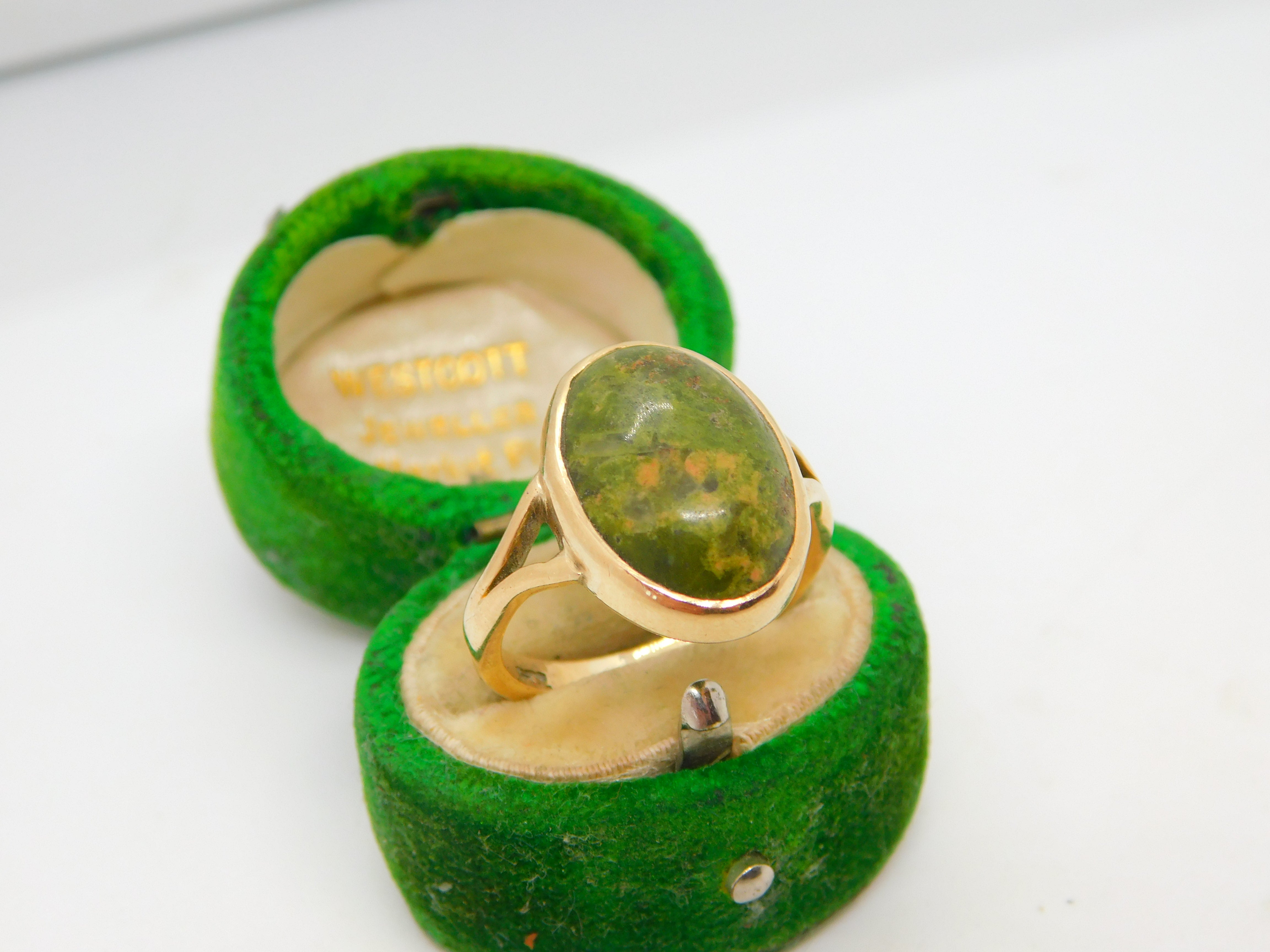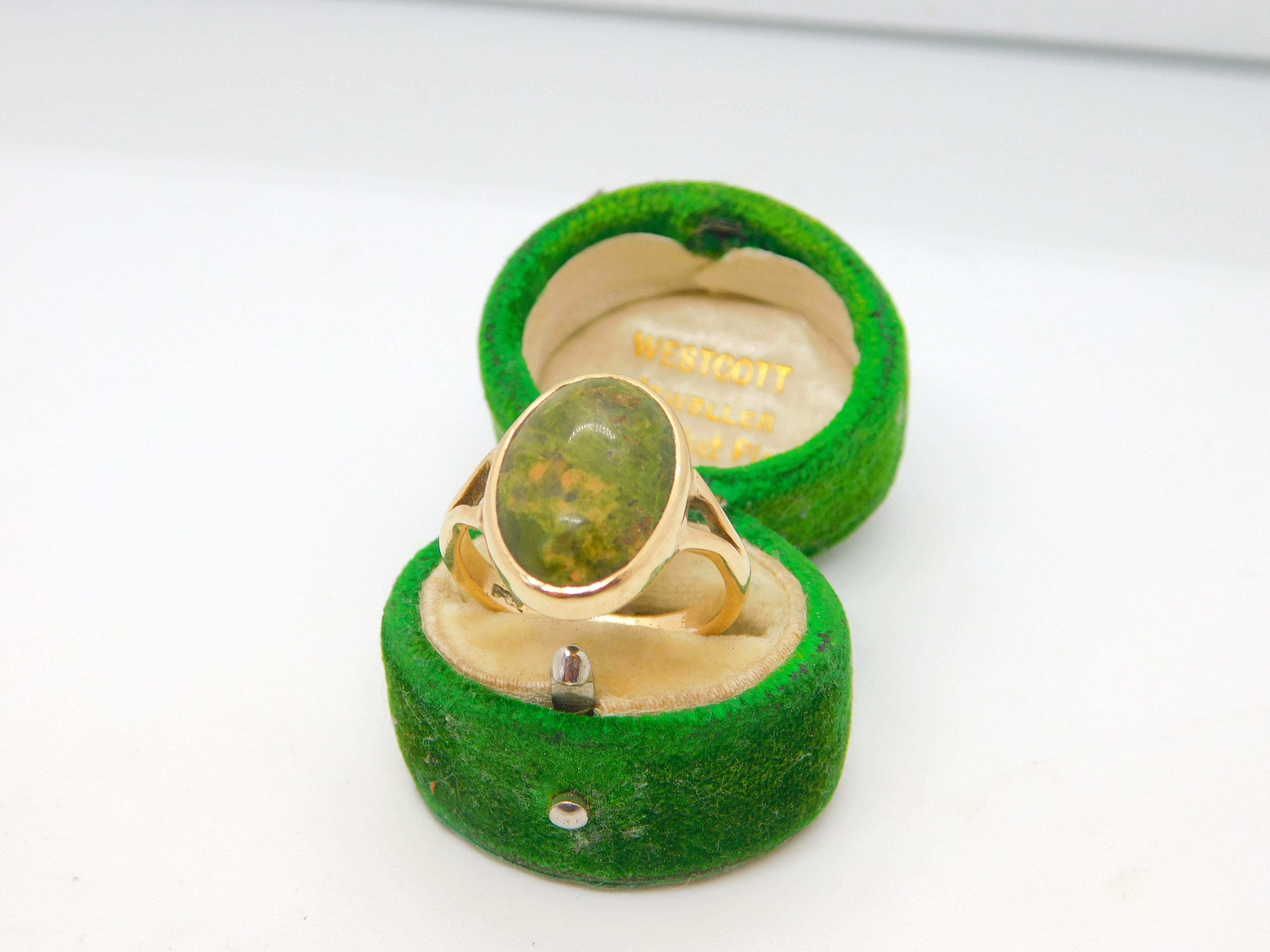 18ct Yellow Gold & Cabochon Unakite Set Signet Ring Vintage c1970