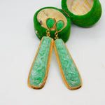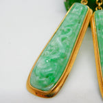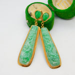 18ct Yellow Gold Carved Apple-Green Jade Drop Earrings Vintage c1970