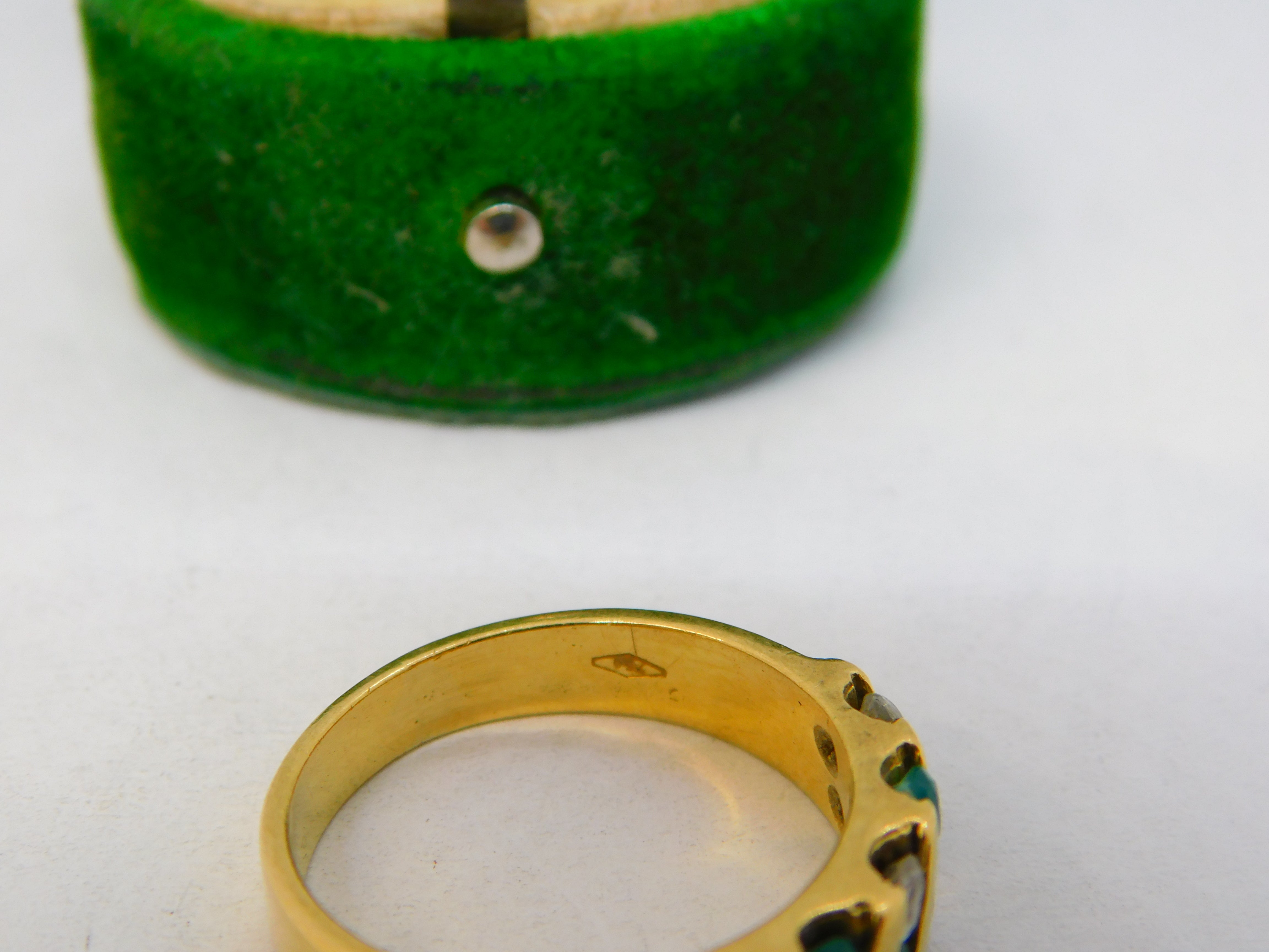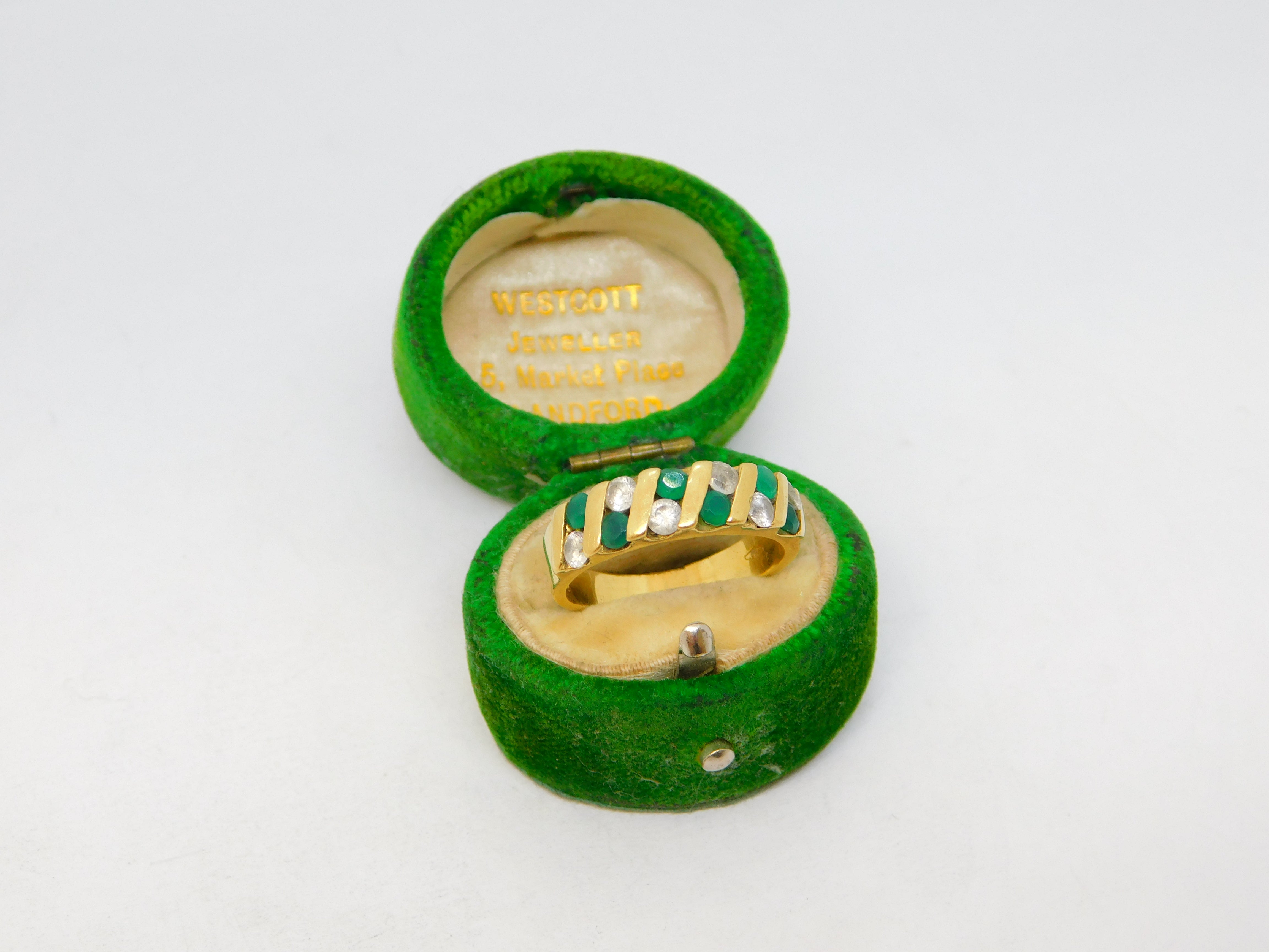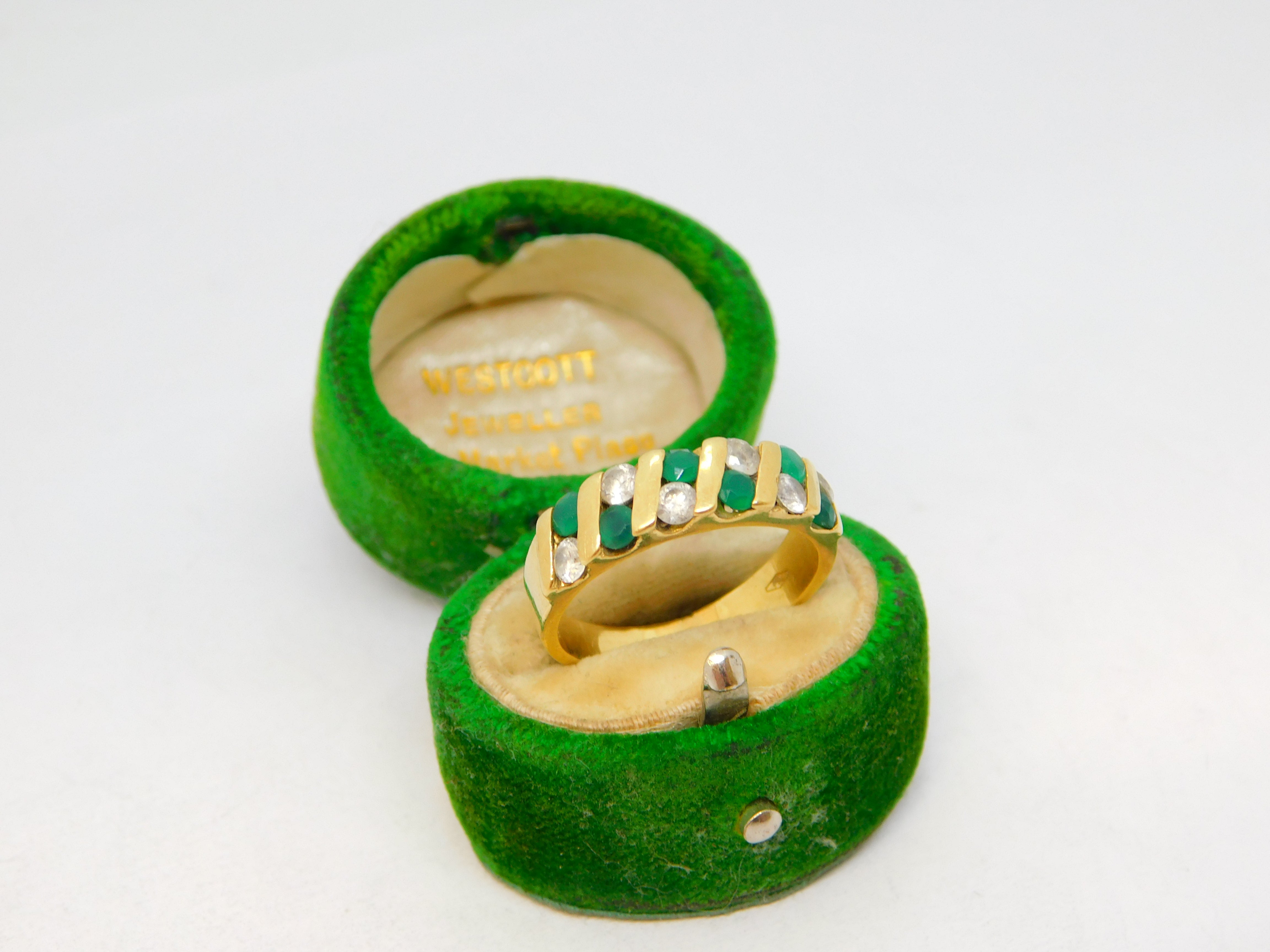 18ct Yellow Gold, Diamond & Emerald Dress Ring Vintage c1970