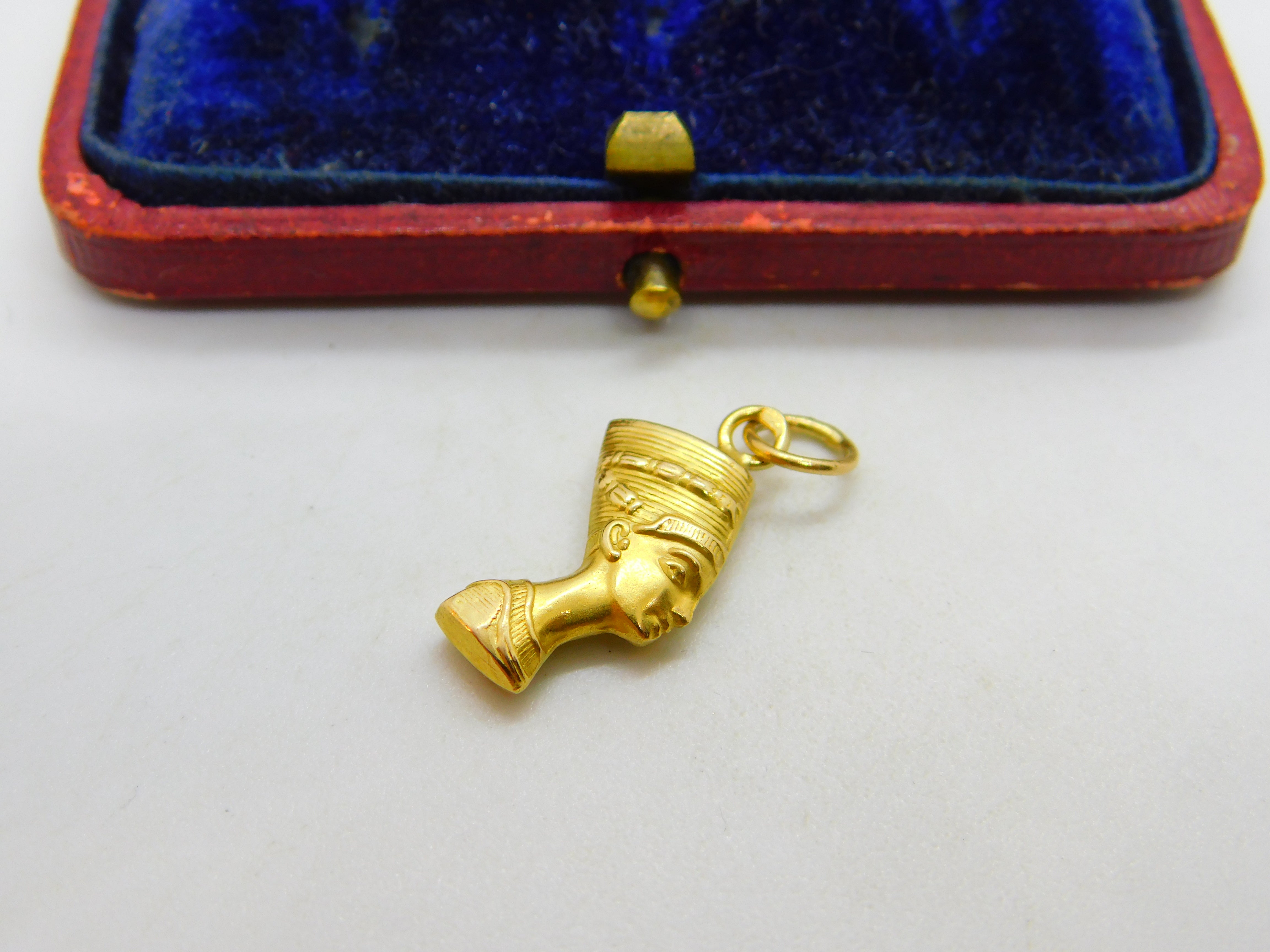 18ct Yellow Gold Egyptian Nefertiti Pharaoh Charm Pendant Vintage c1970