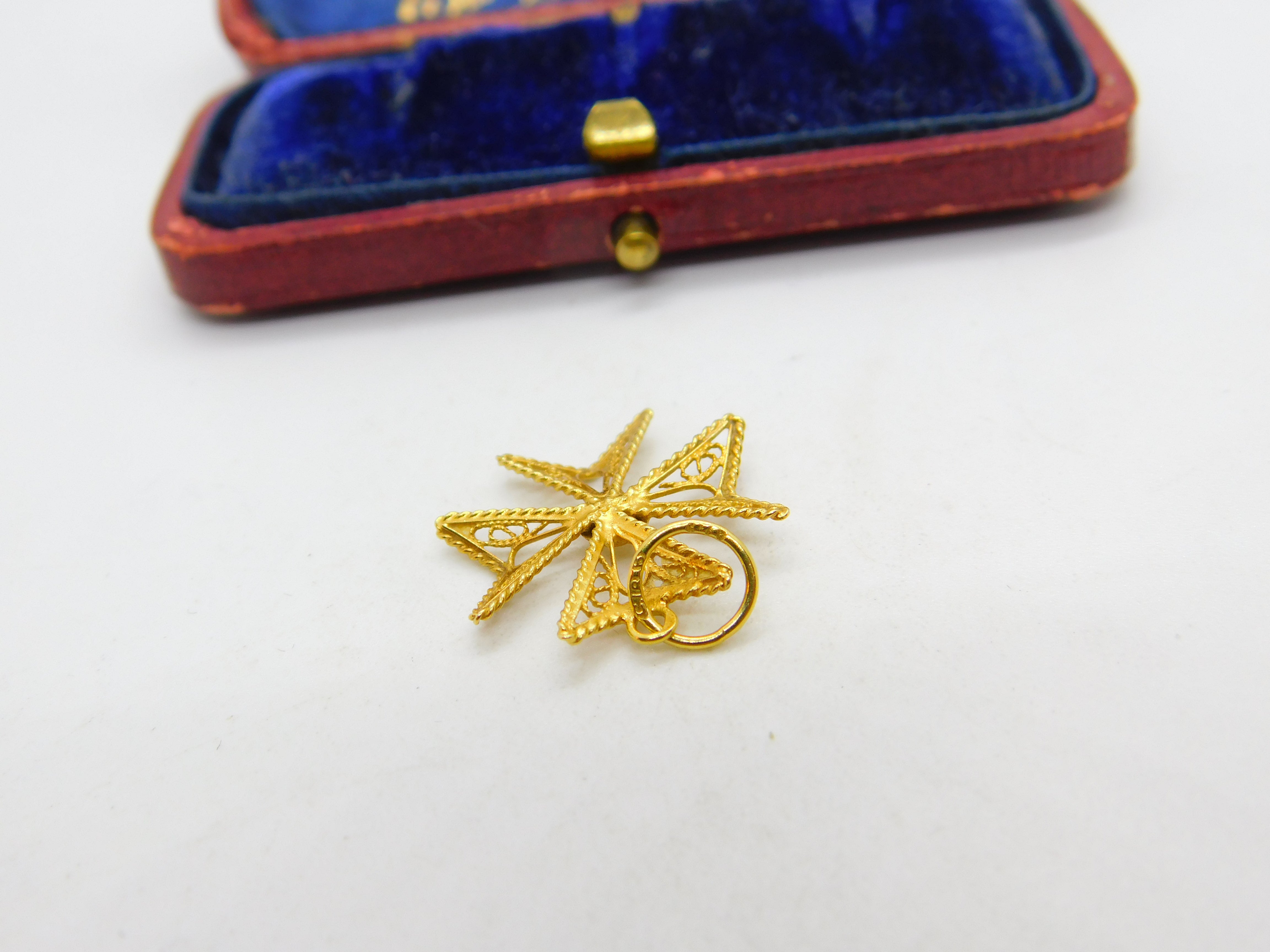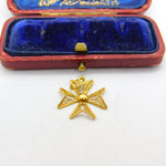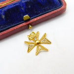 18ct Yellow Gold Filigree Form Maltese Cross Pendant Antique c1940 Art Deco