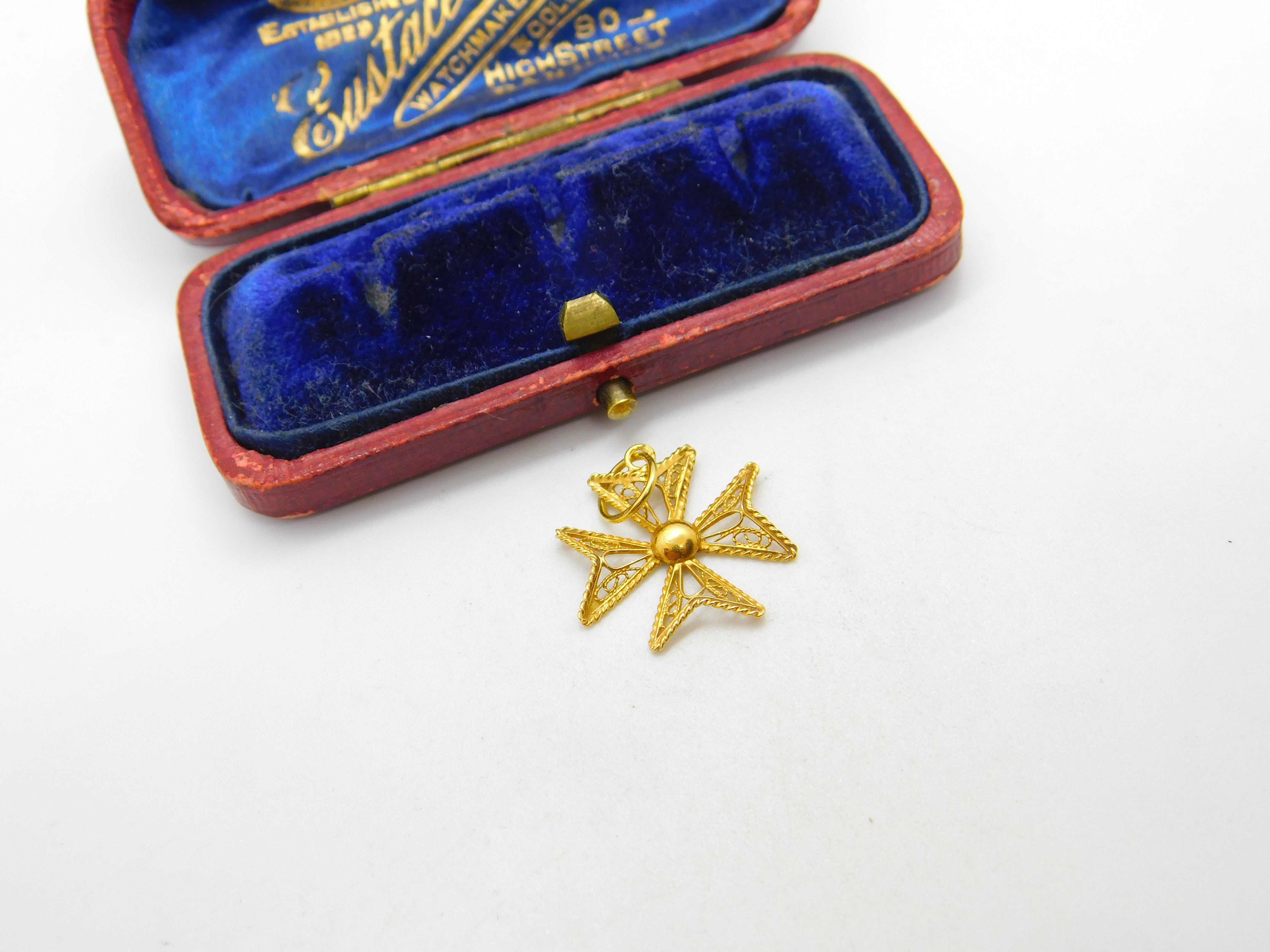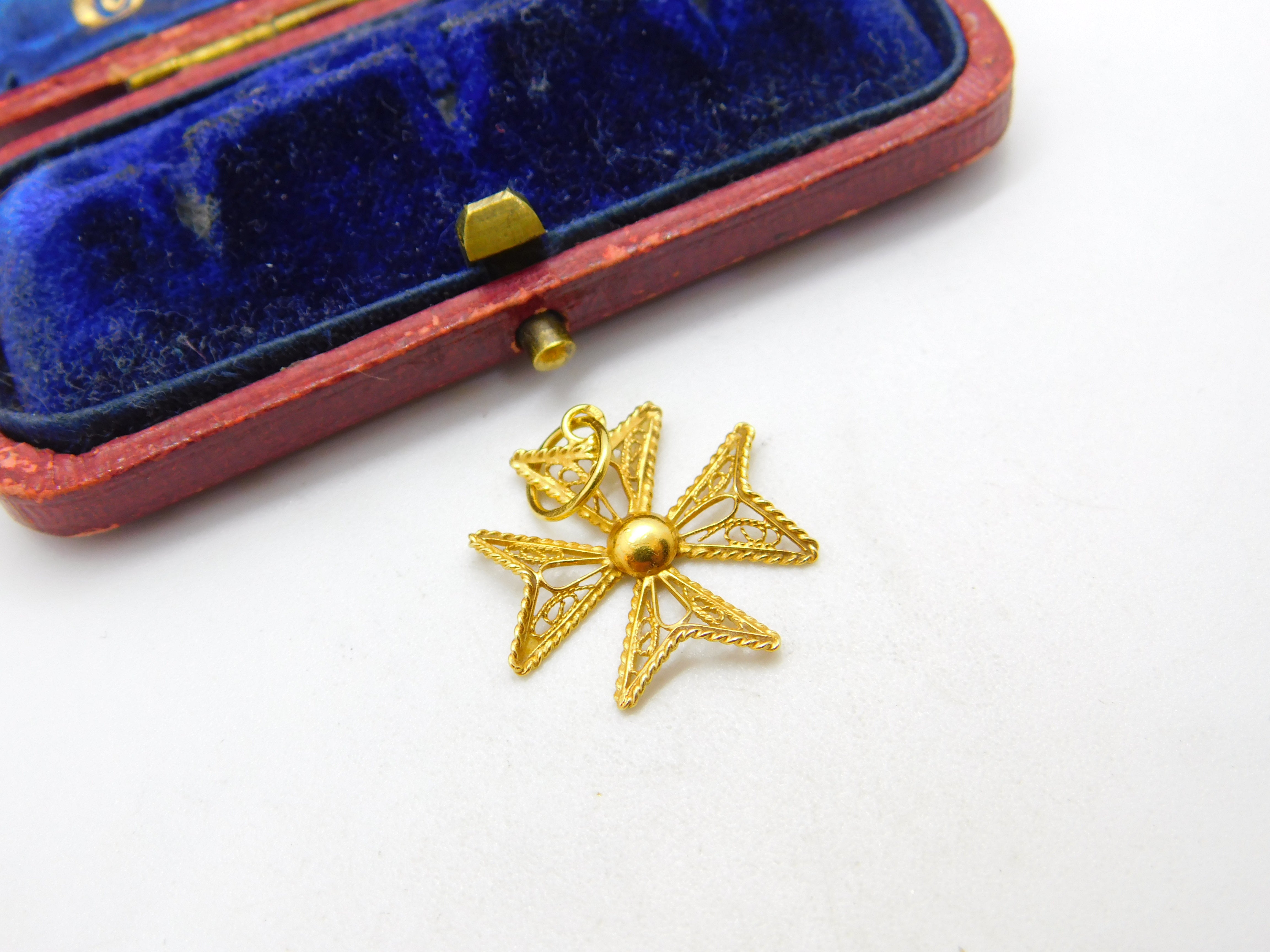 Details: A fantastic and wonderfully designed antique art deco 18ct yellow gold filigree pattern maltese cross pendant with lovely detailing c1940 fully hallmarked to the bale. This is a wonderful item that would make a perfect gift or addition to any collection. The BOX pictured is for PRESENTATION ONLY and is NOT included in the listings but used to frame the pictures unless specifically stated otherwise.