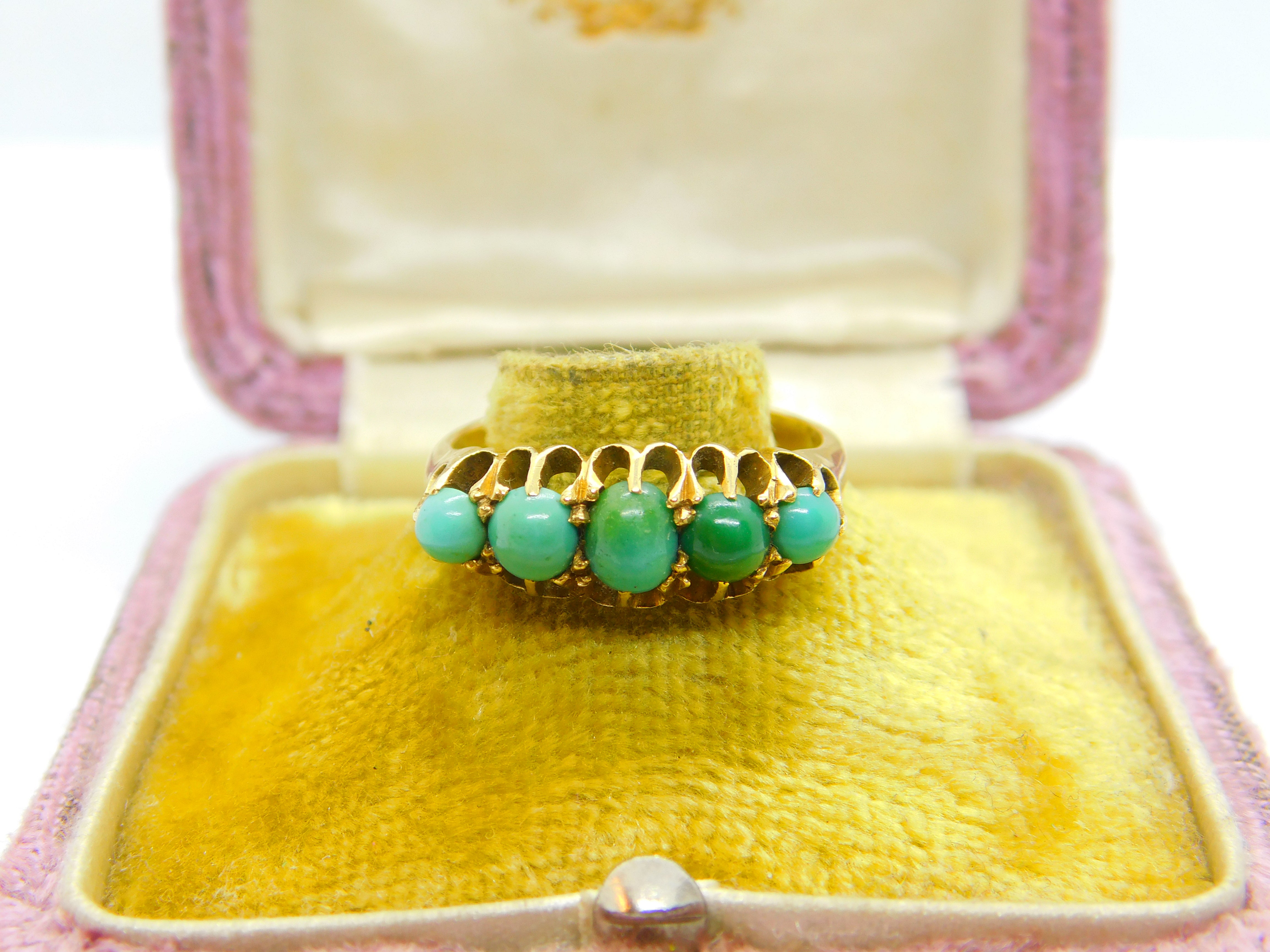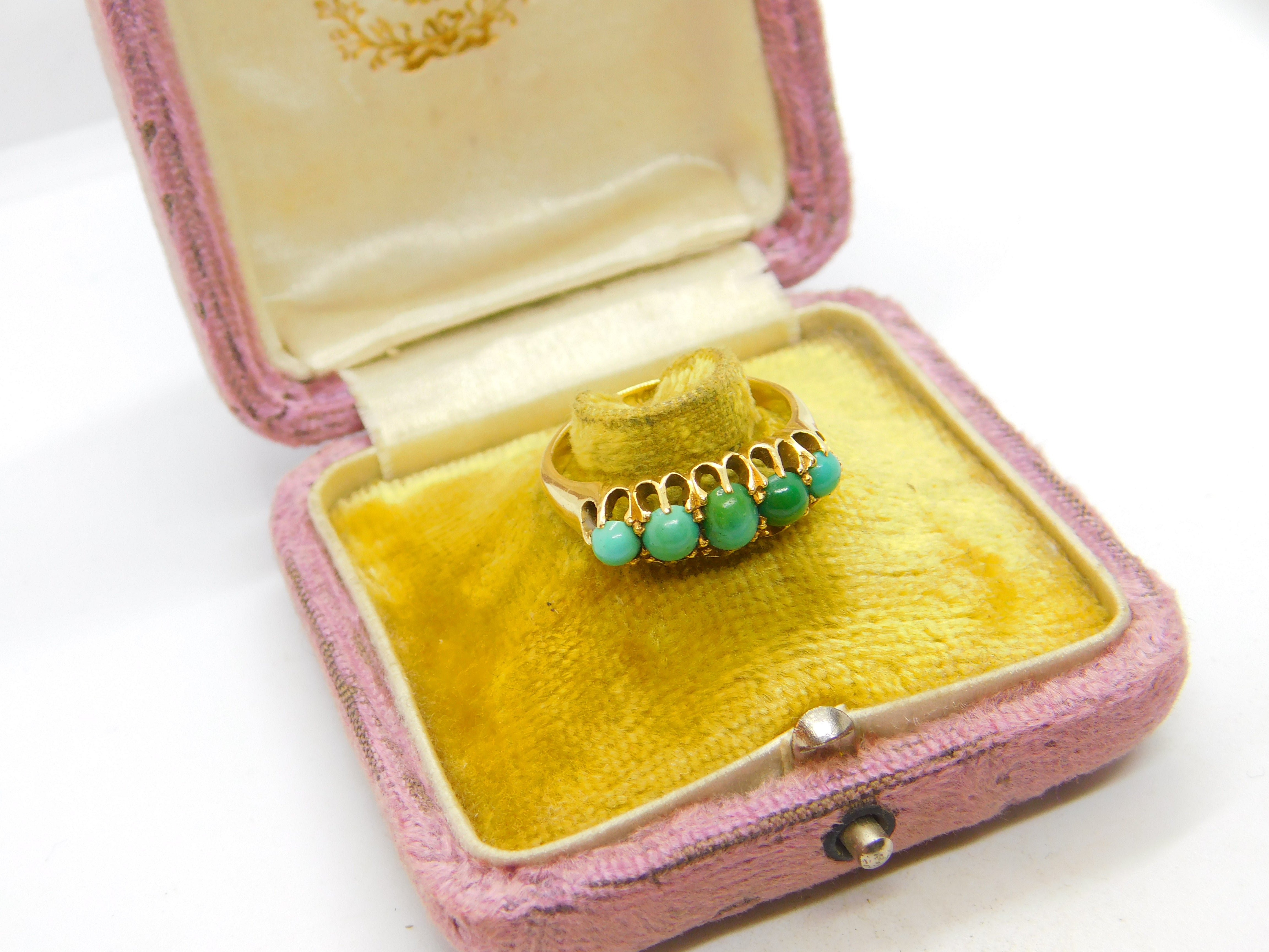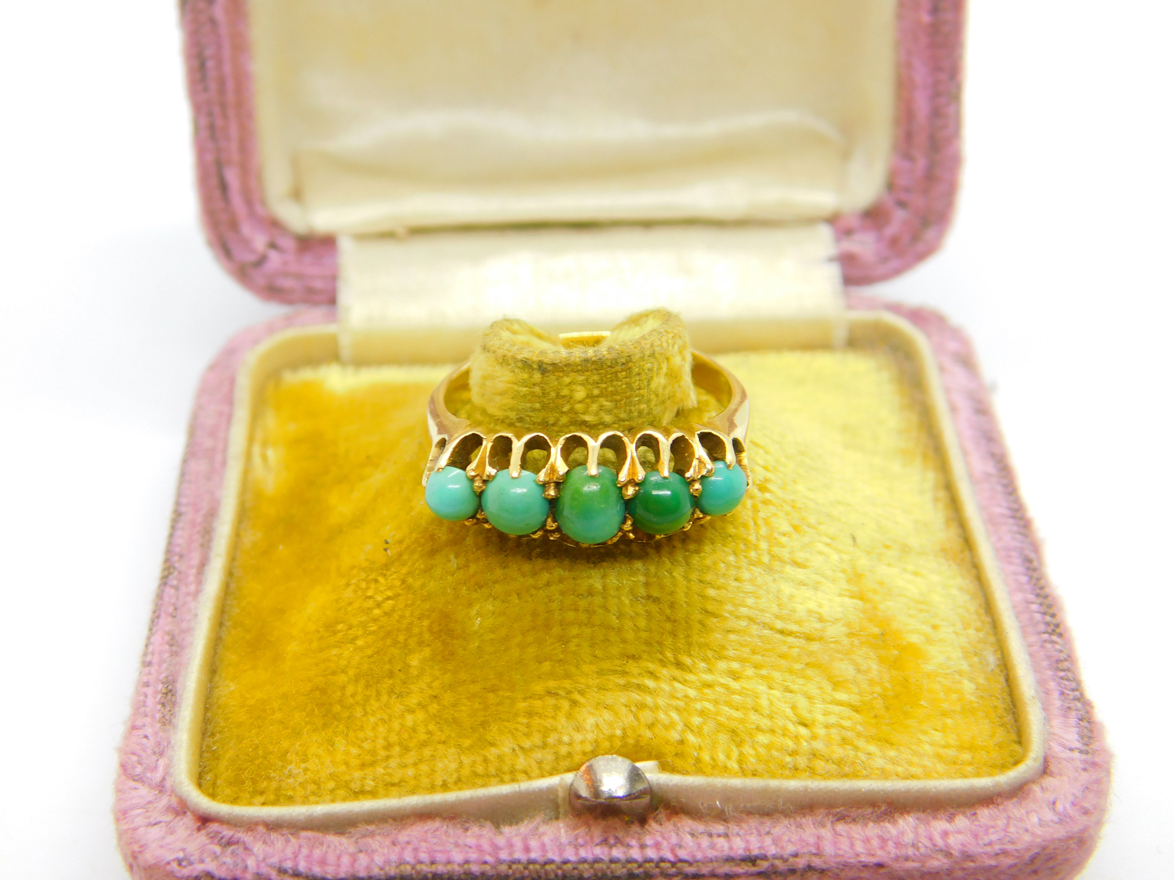 18ct Yellow Gold Five-Stone Turquoise Band Ring 1915 London Antique Art Deco