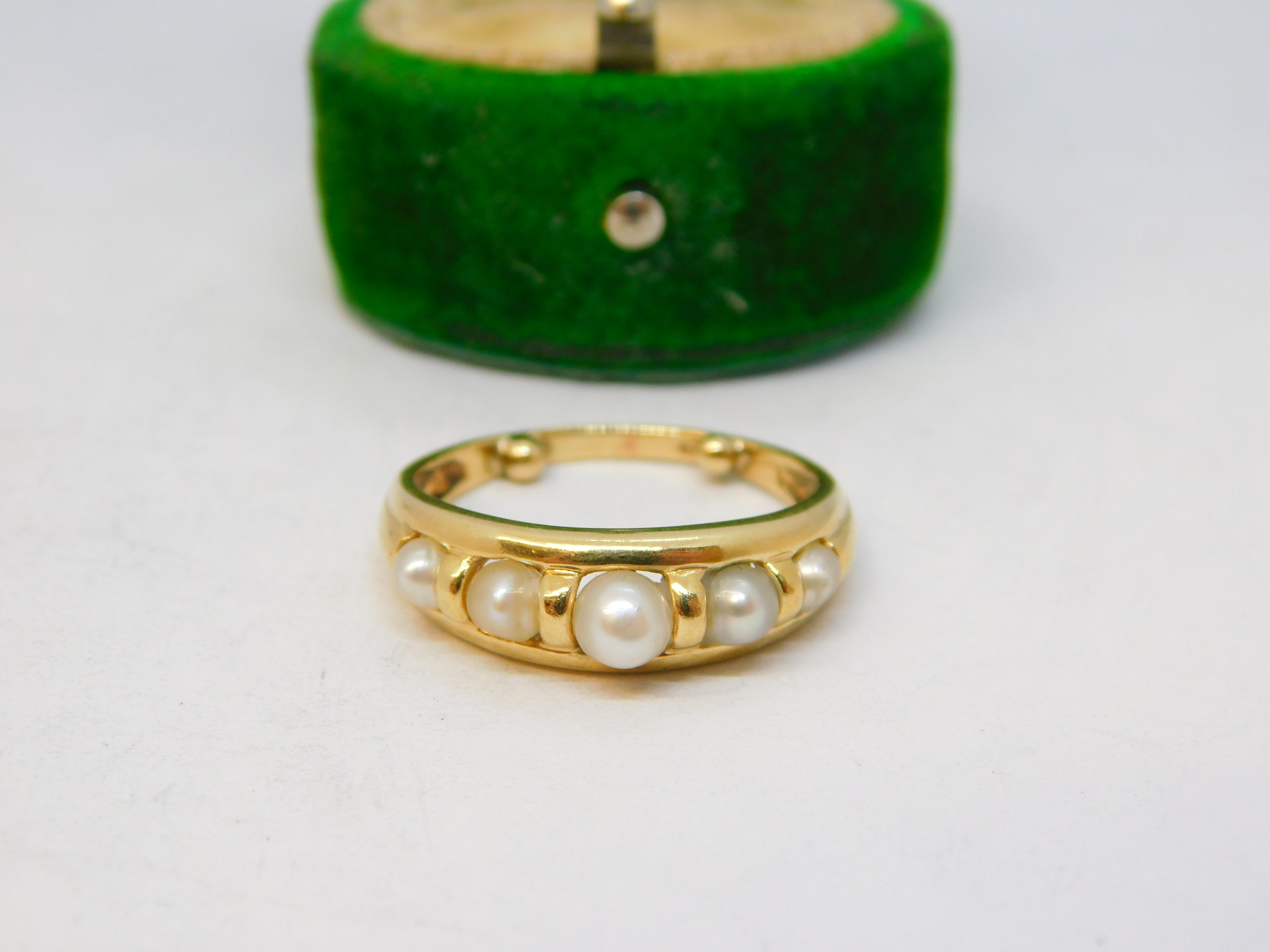 18ct Yellow Gold Graduated Pearl Set Dress Ring Vintage c1970