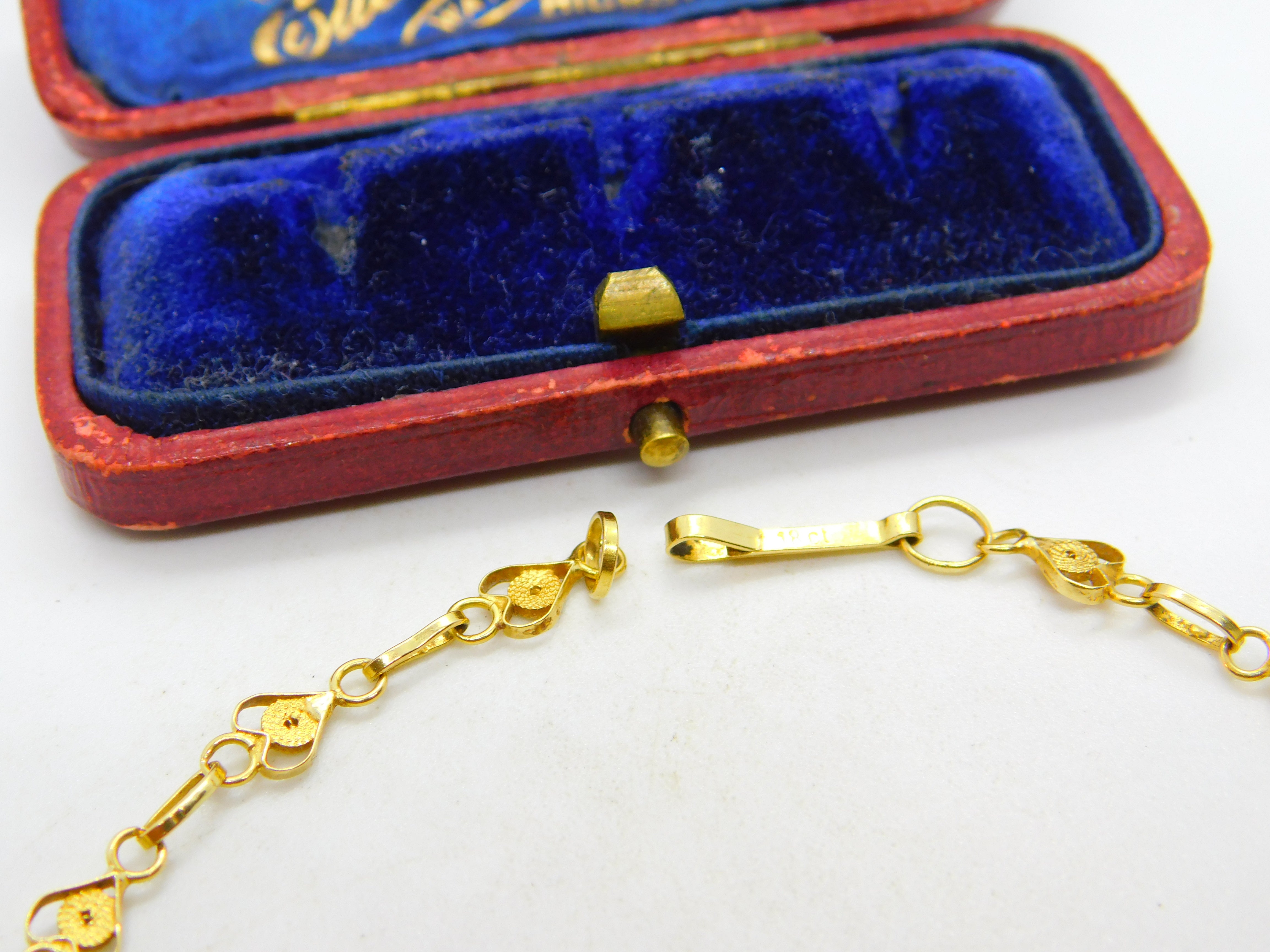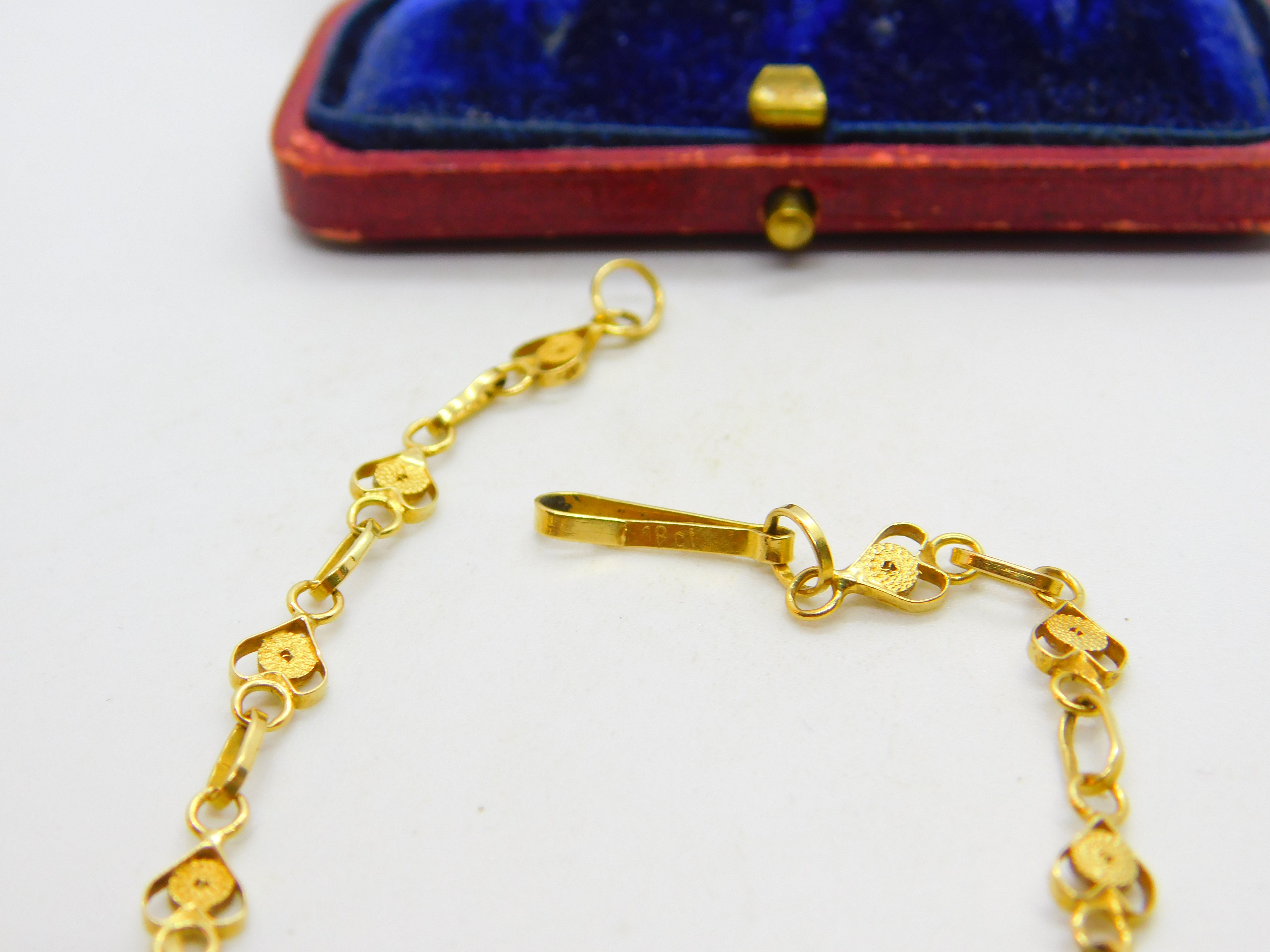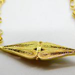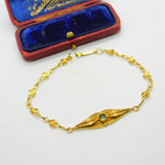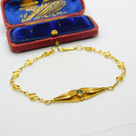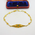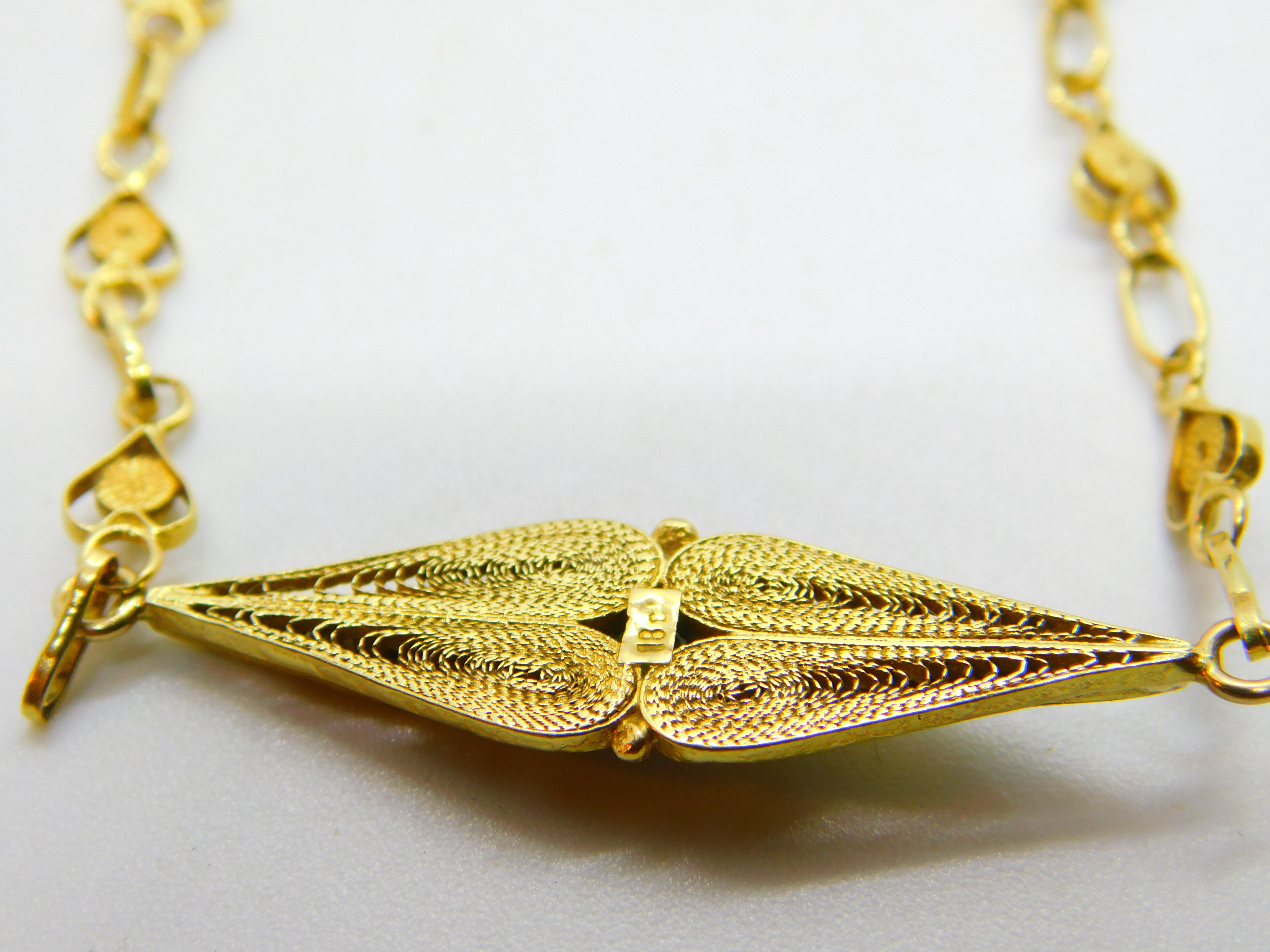 18ct Yellow Gold Heart Panel Filigree Form Sea Glass Set Panel Bracelet Antique