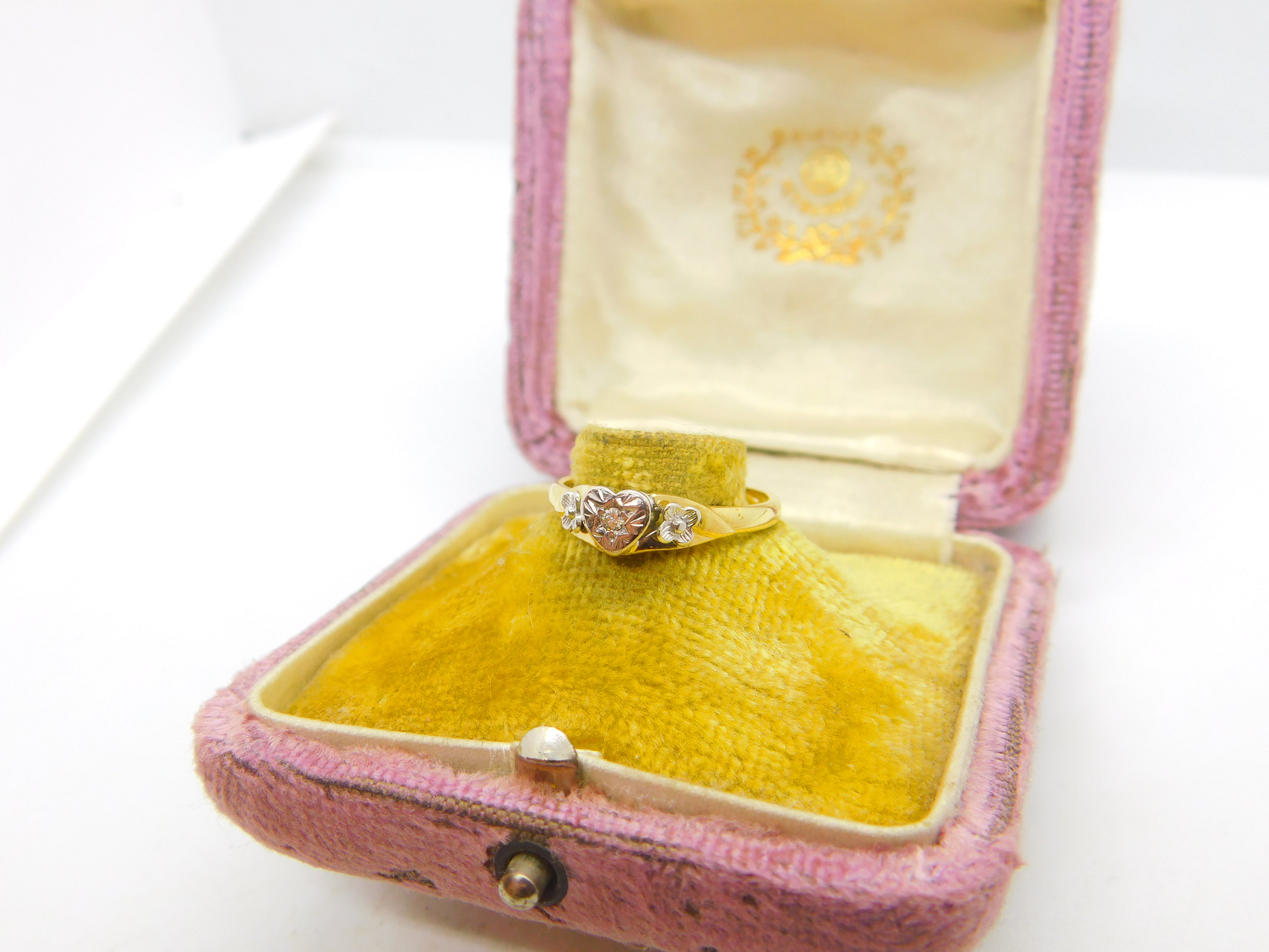 18ct Yellow Gold & Heart Set Diamond Sweetheart Ring 1971 Birmingham