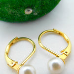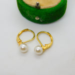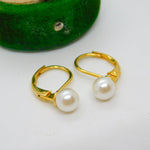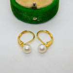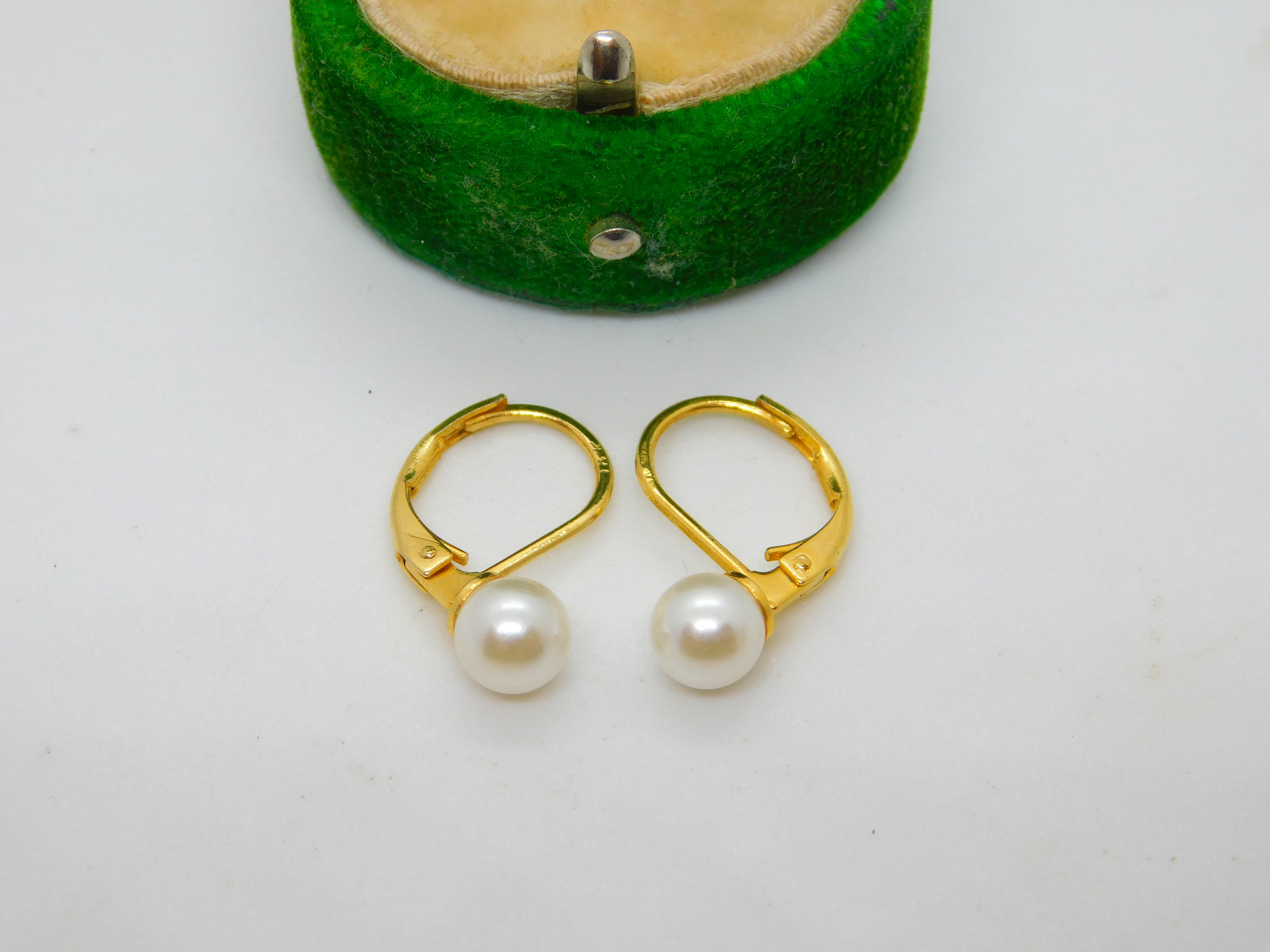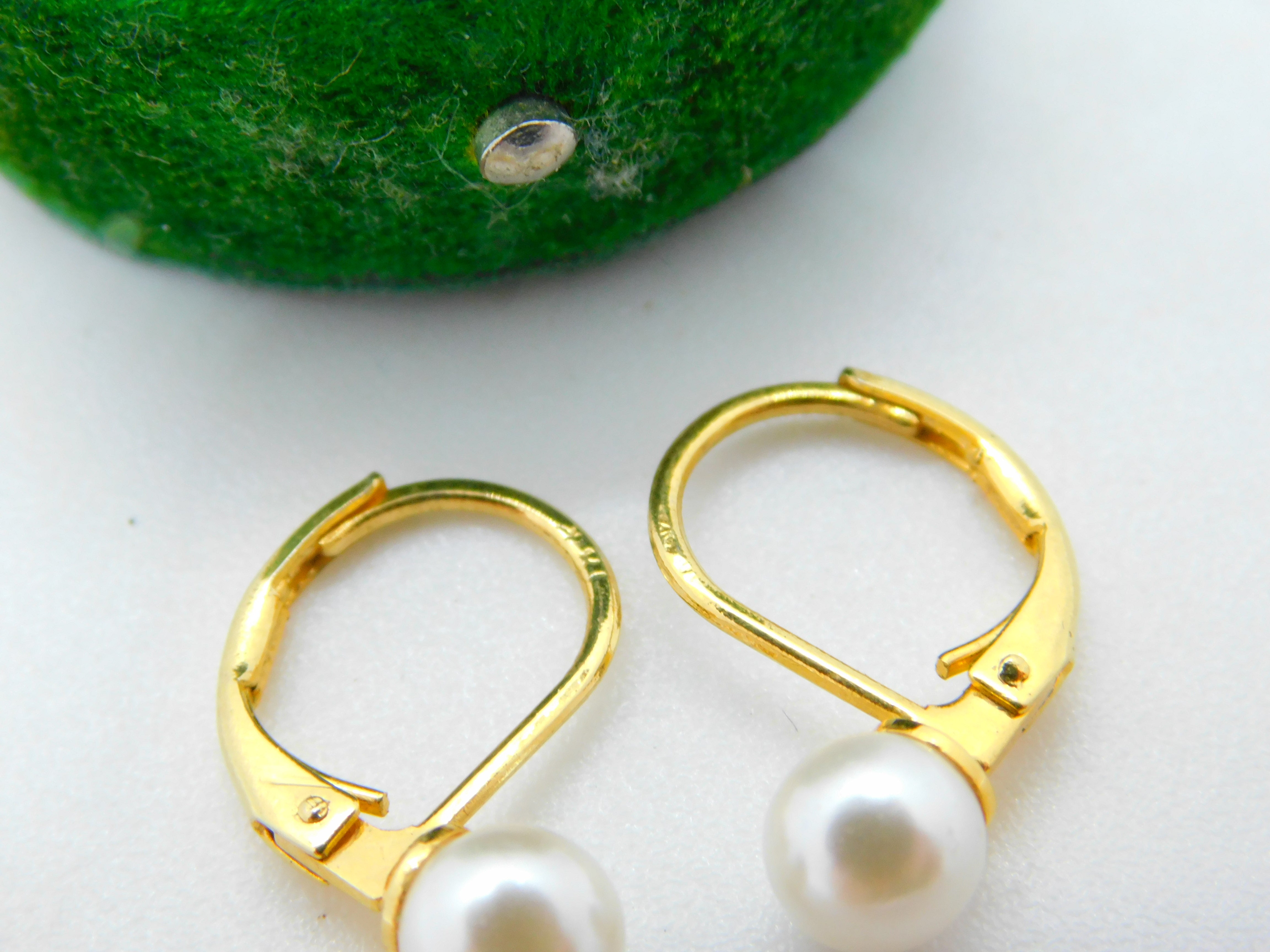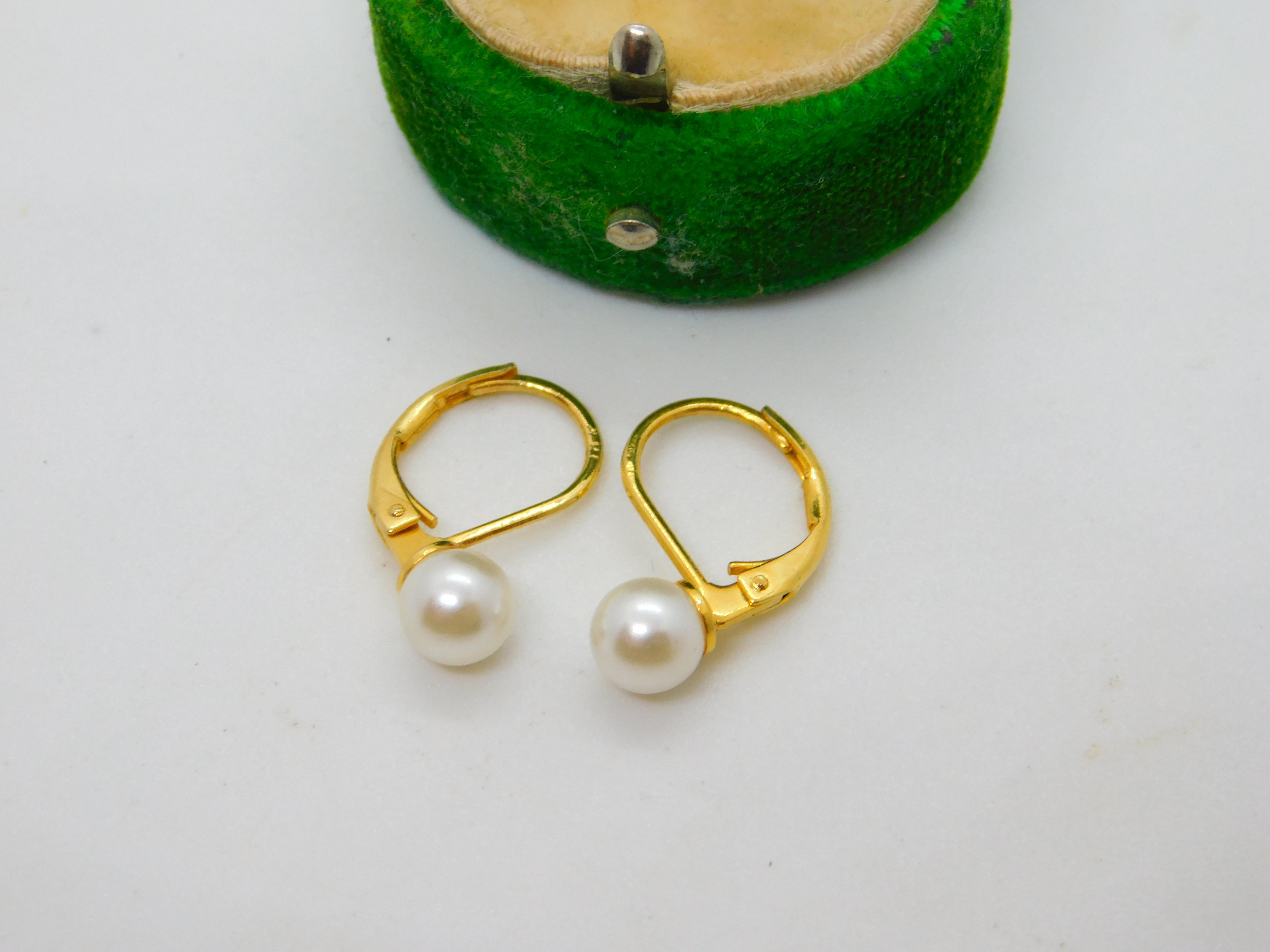 18ct Yellow Gold & Pearl Set Hook Hoop Earrings Vintage c1980