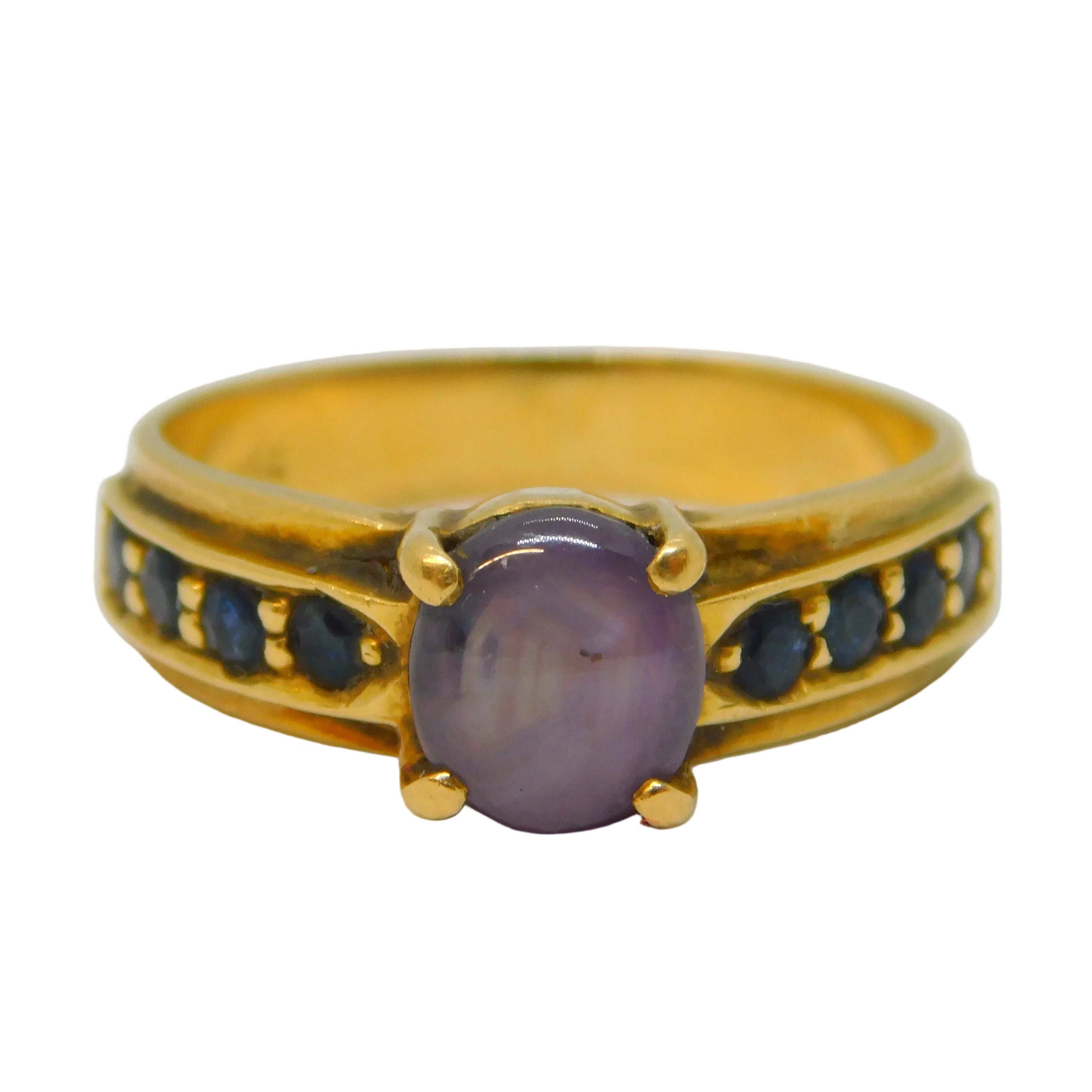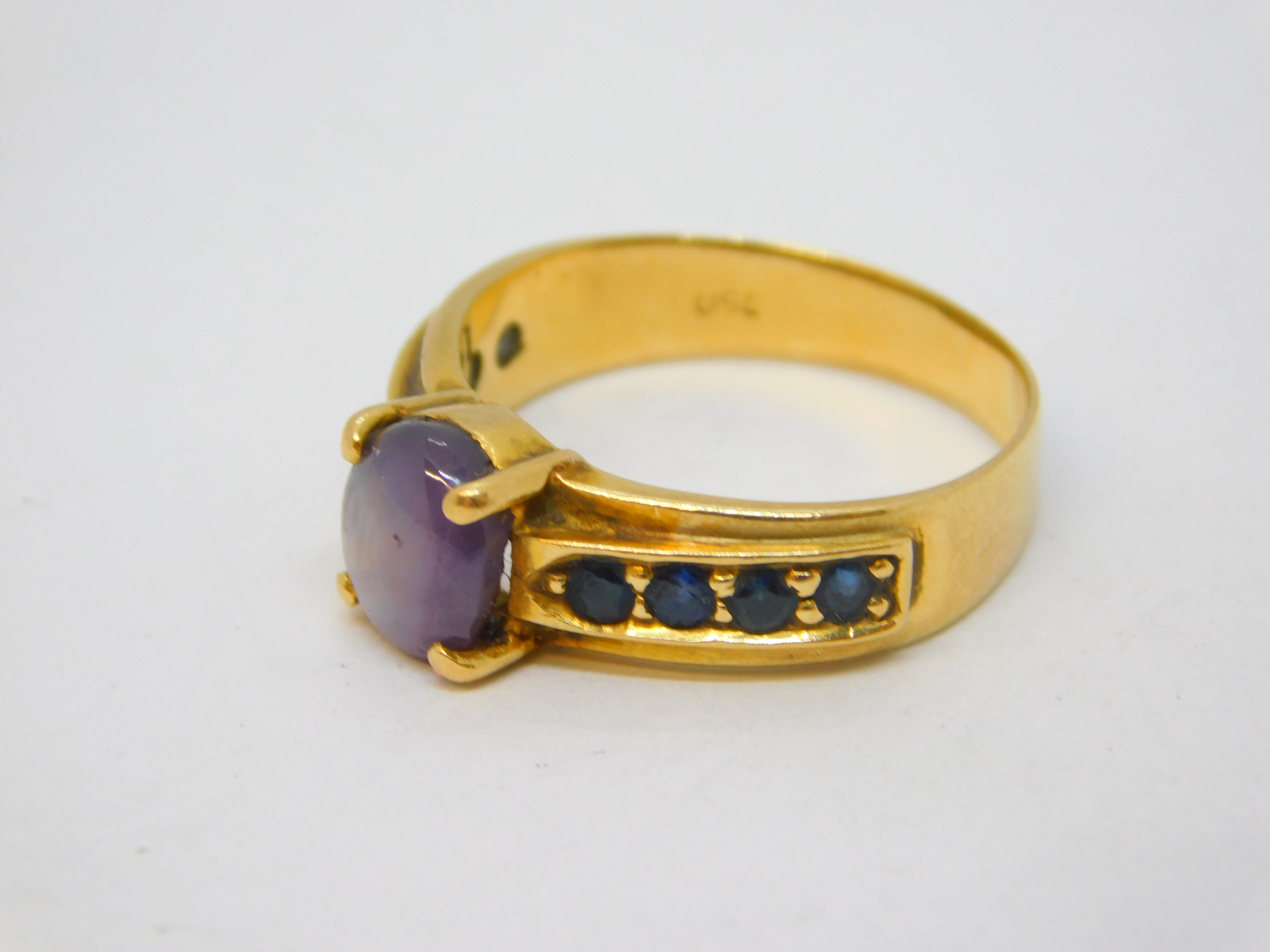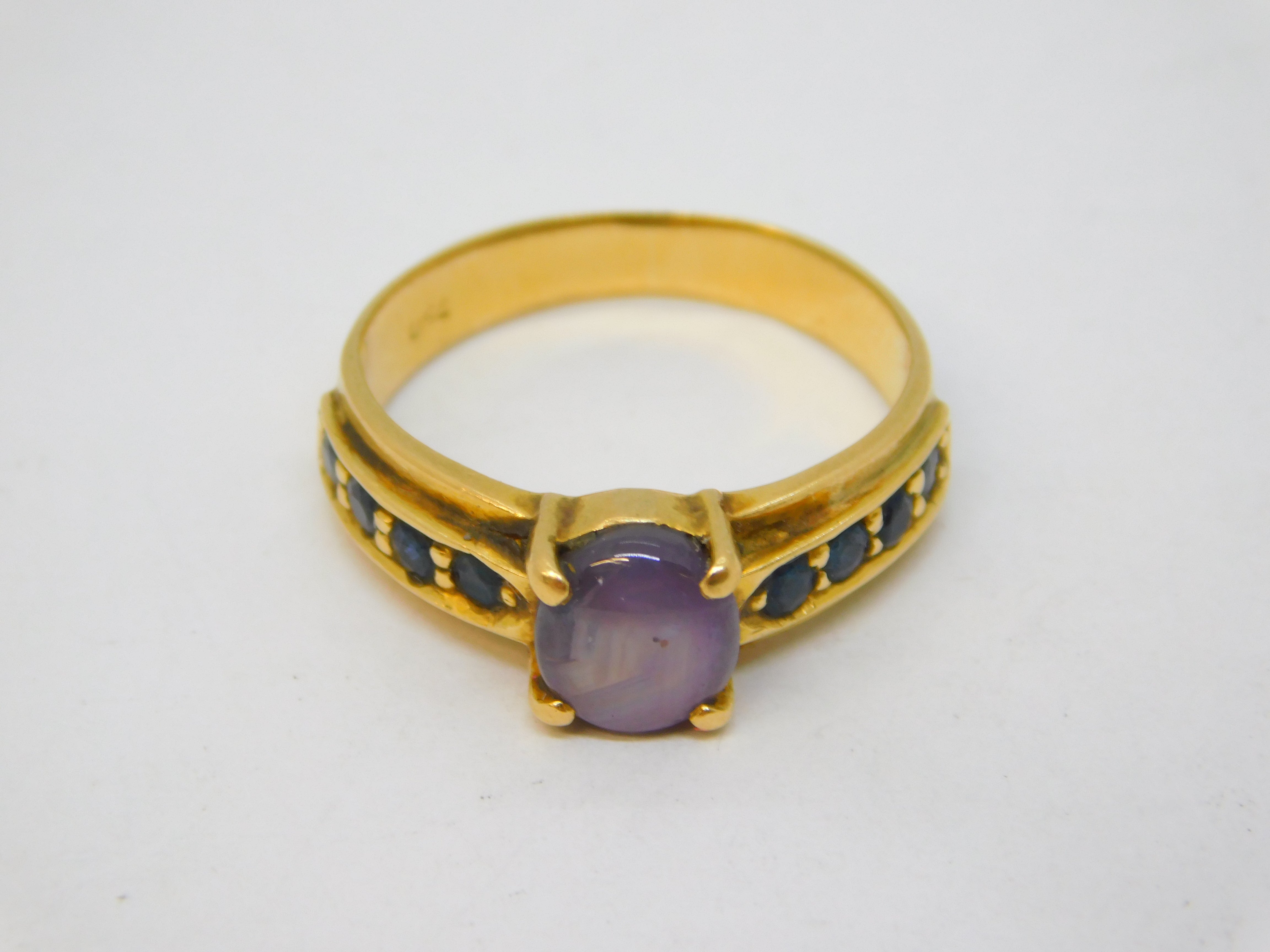 18ct Yellow Gold, 'Star' Sapphire & Blue Sapphire Dress Ring Vintage