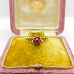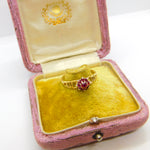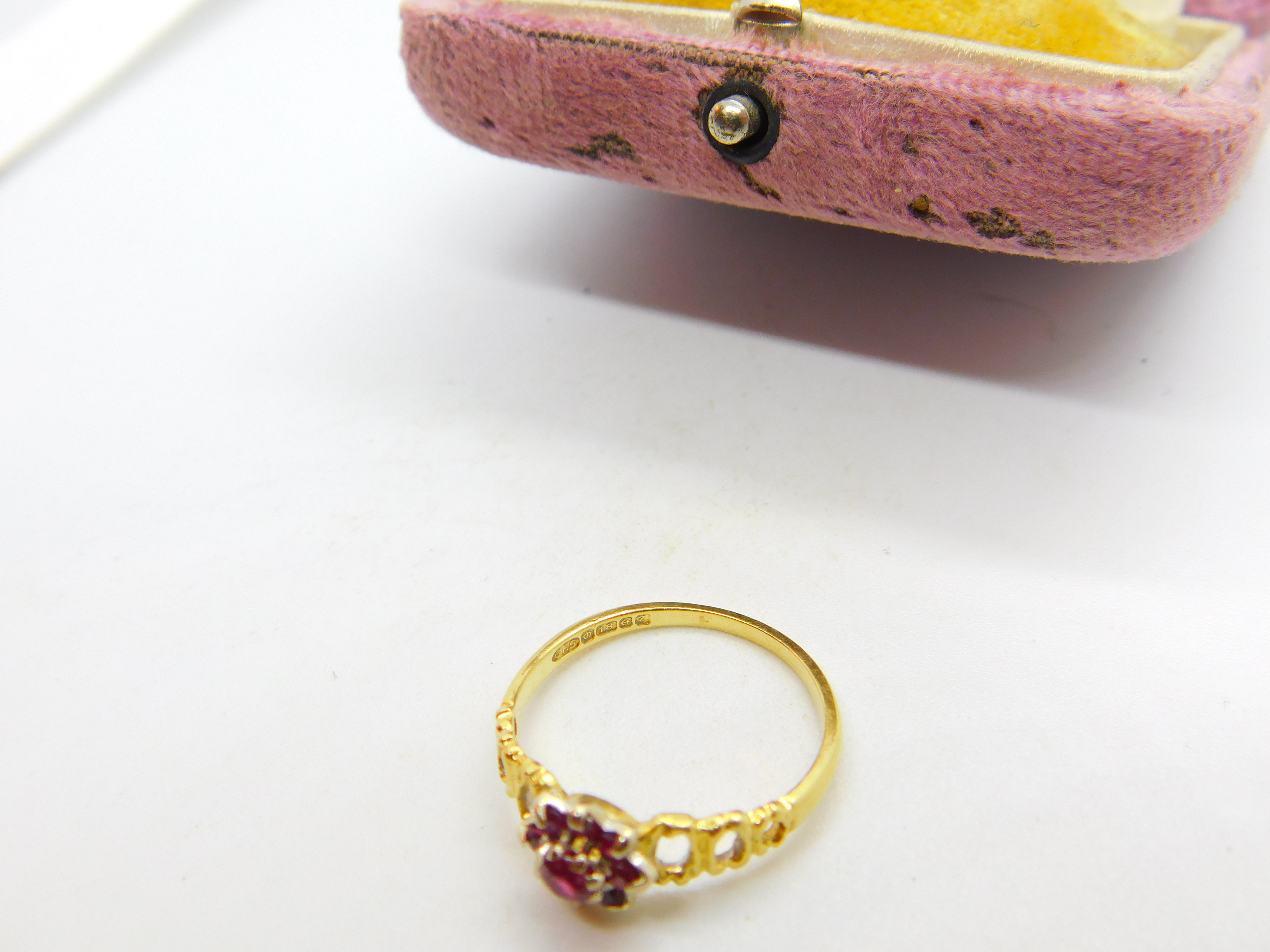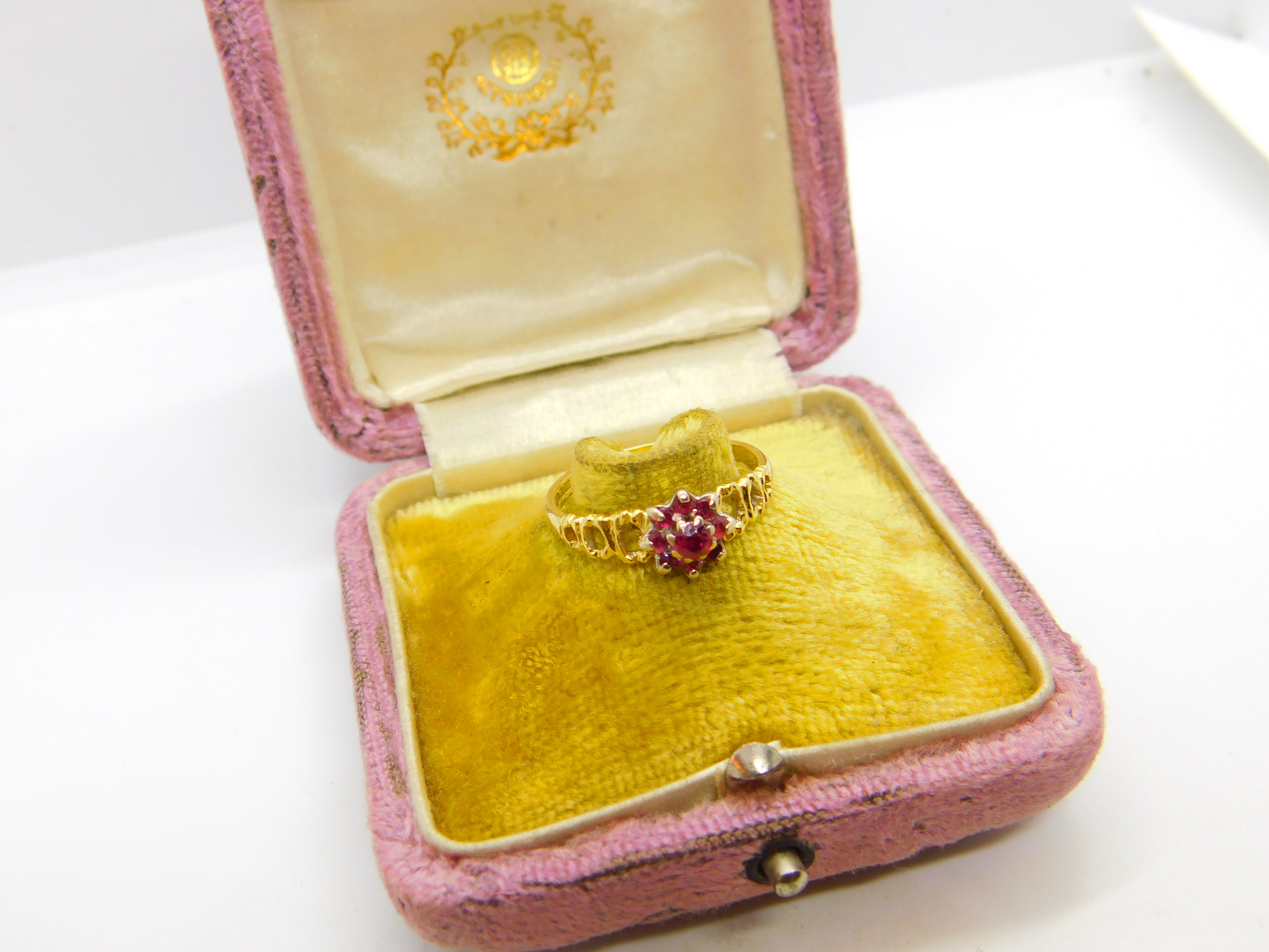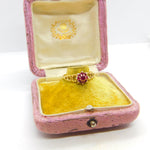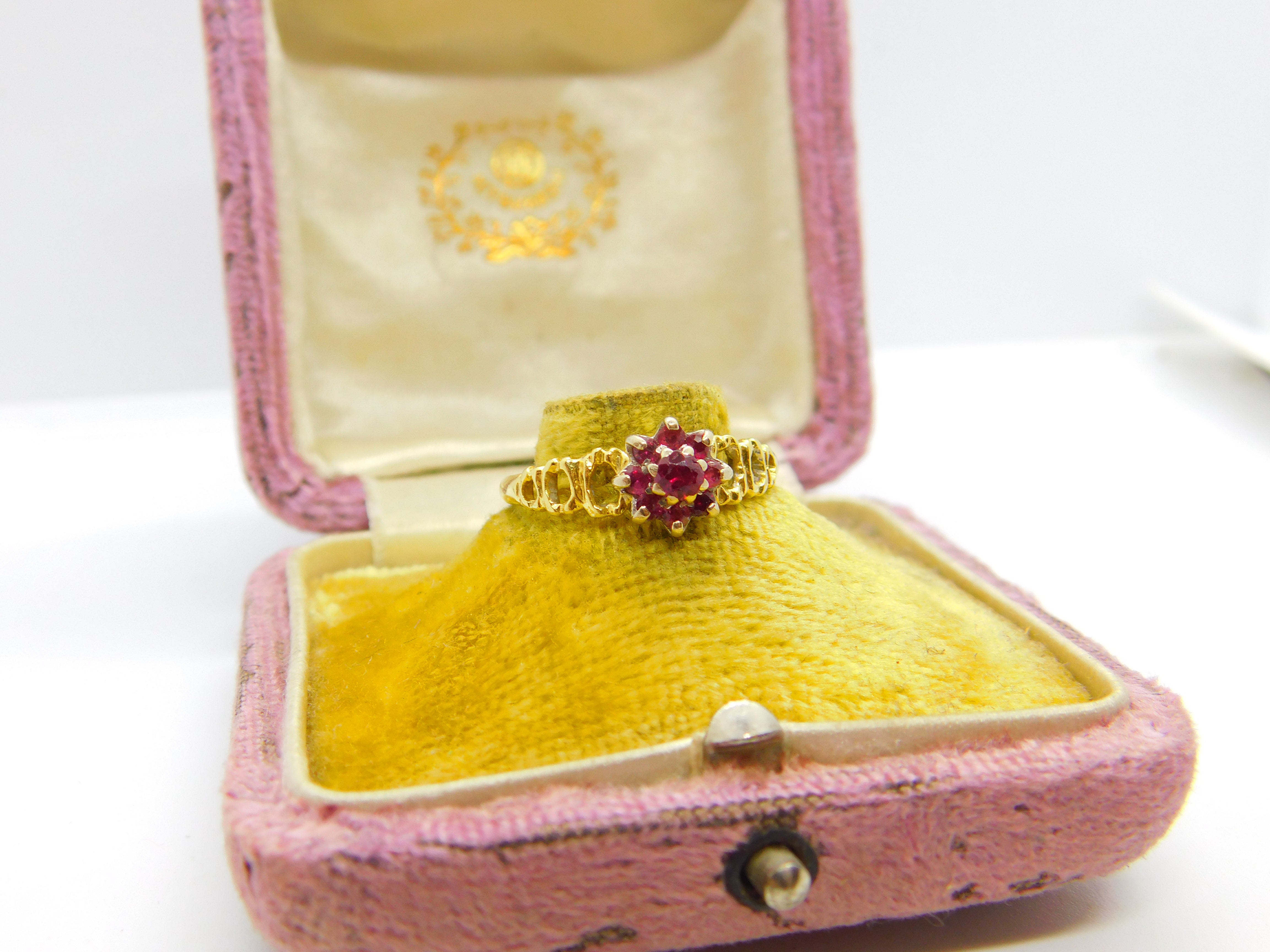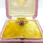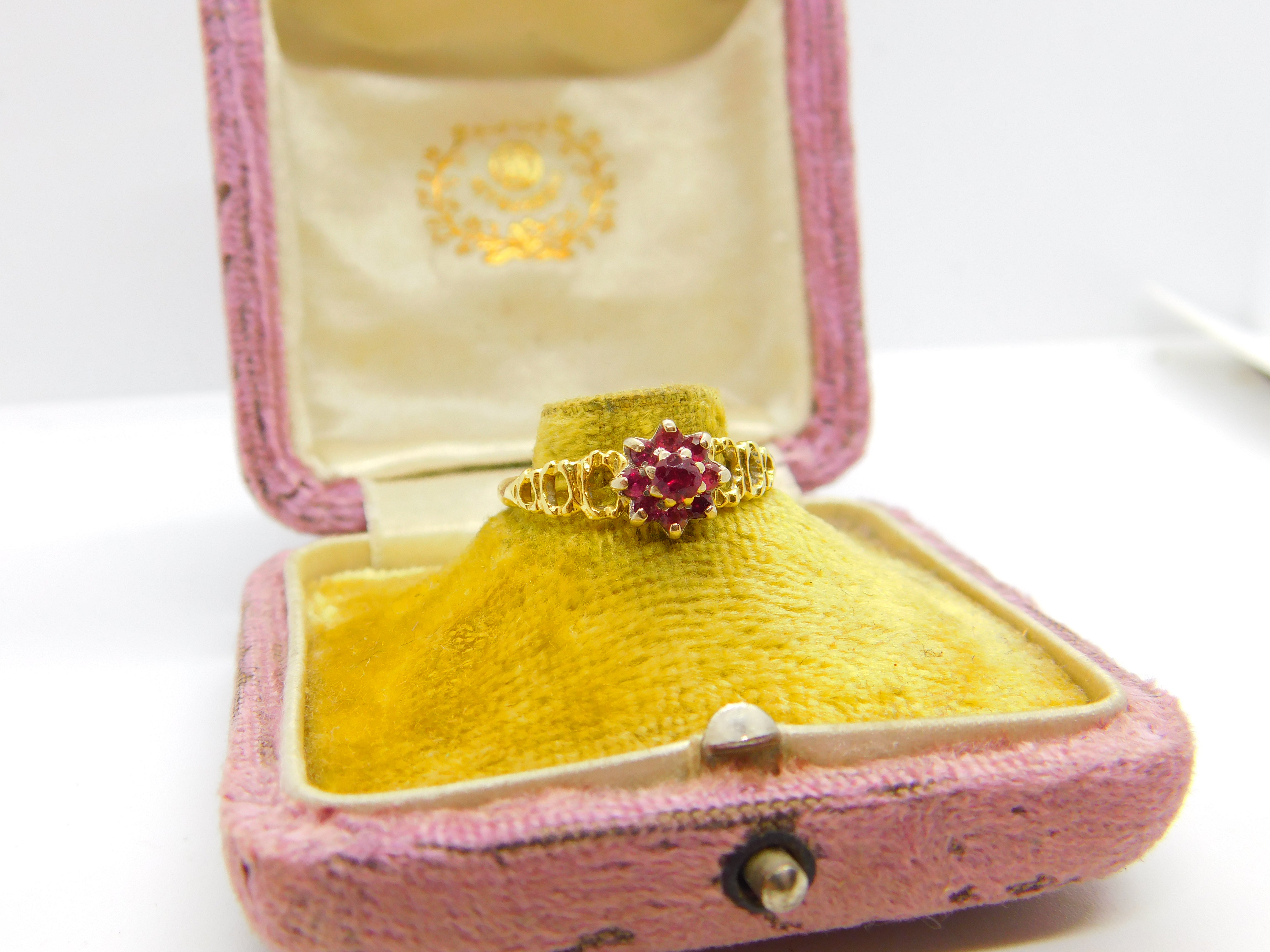 18ct Yellow Gold Textured Natural Ruby Set Floral Cluster Ring 1974 Birmingham