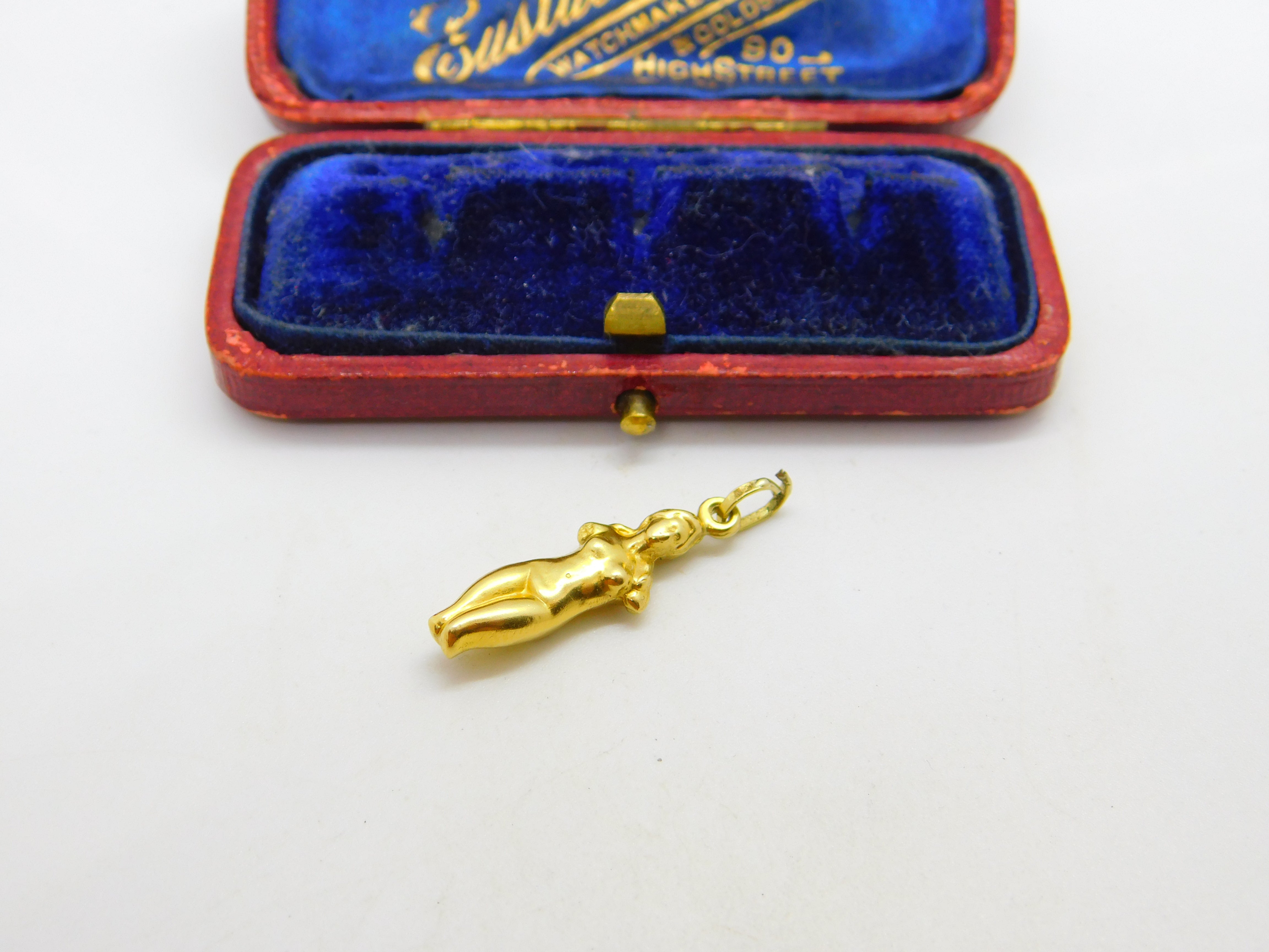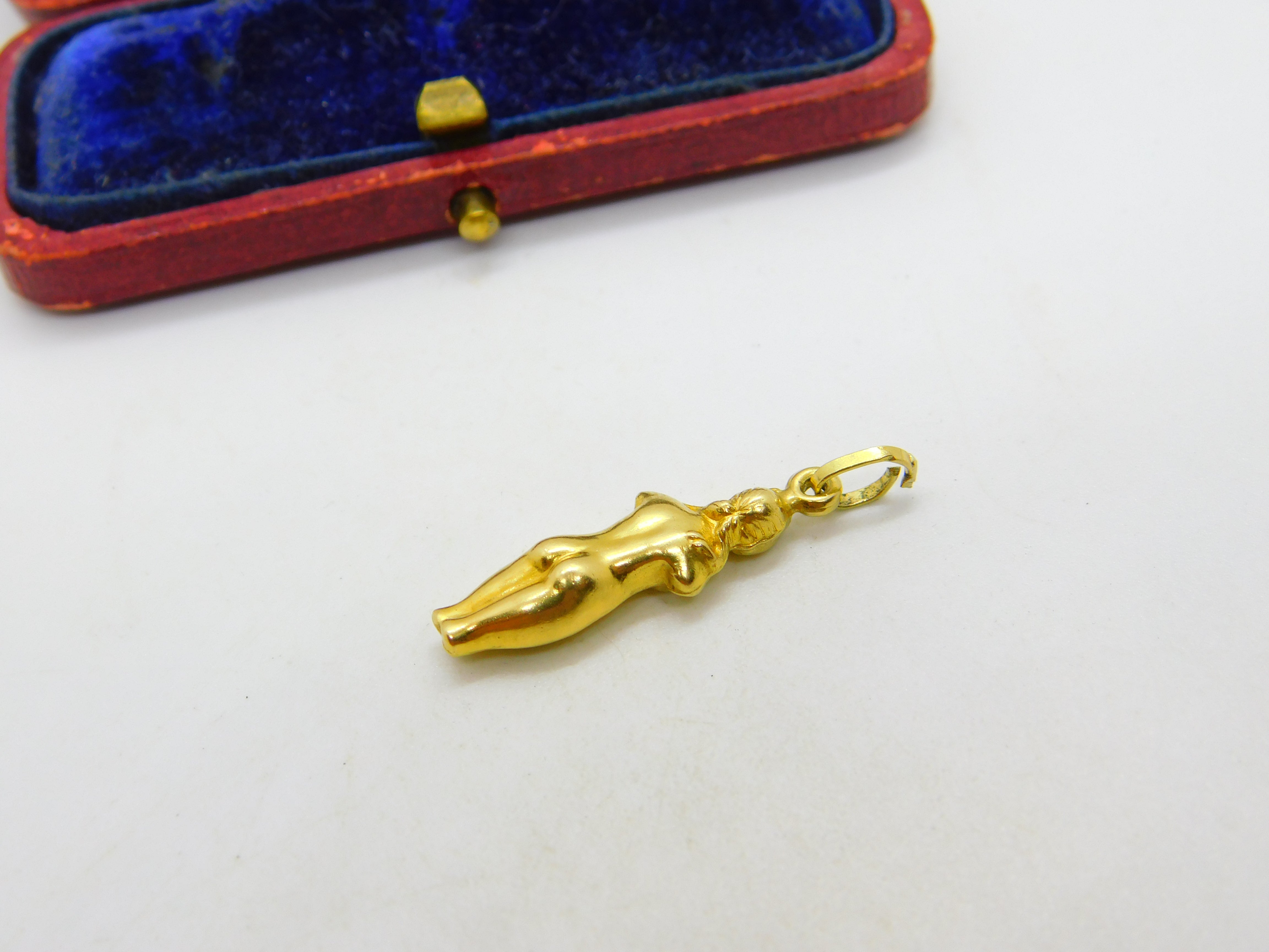 18ct Yellow Gold 'Venus de Milo' Classical Statue Charm Pendant Vintage c1970