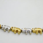 18ct Yellow & White Gold Diamond Set Elephant Train Necklace Vintage c1980