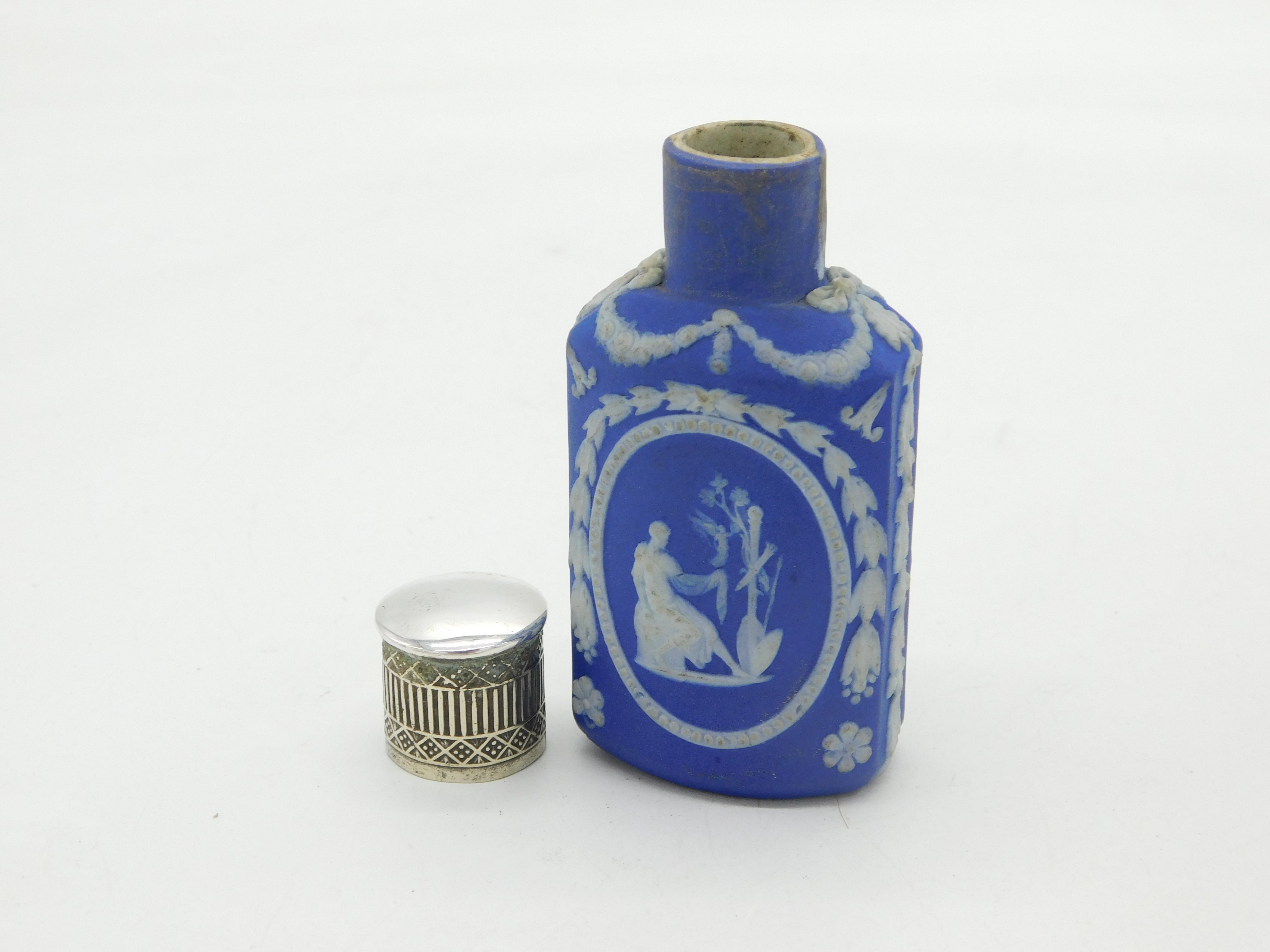 18th Century Silver Topped Wedgwood Jasperware Scent Bottle Antique c1790s