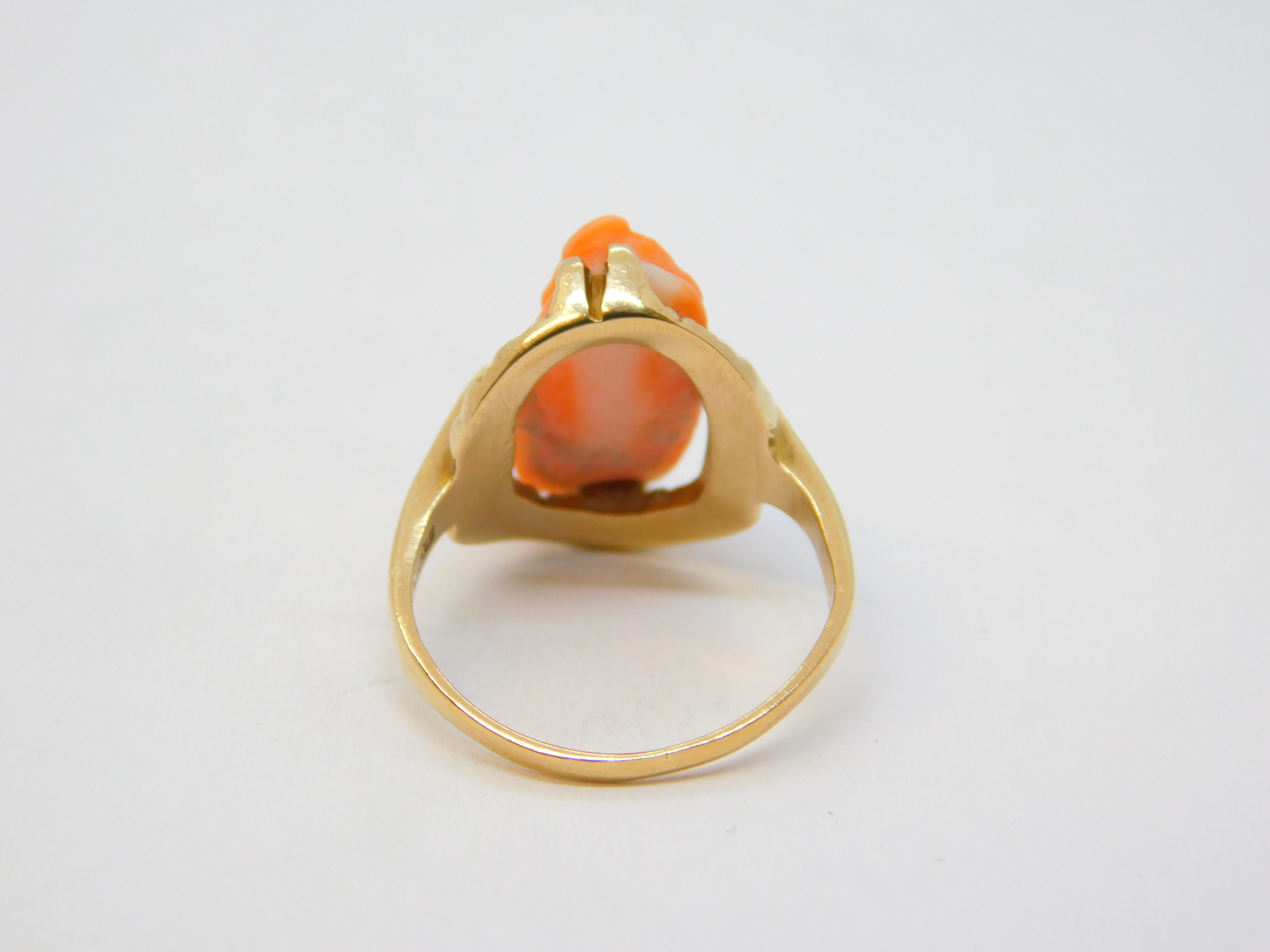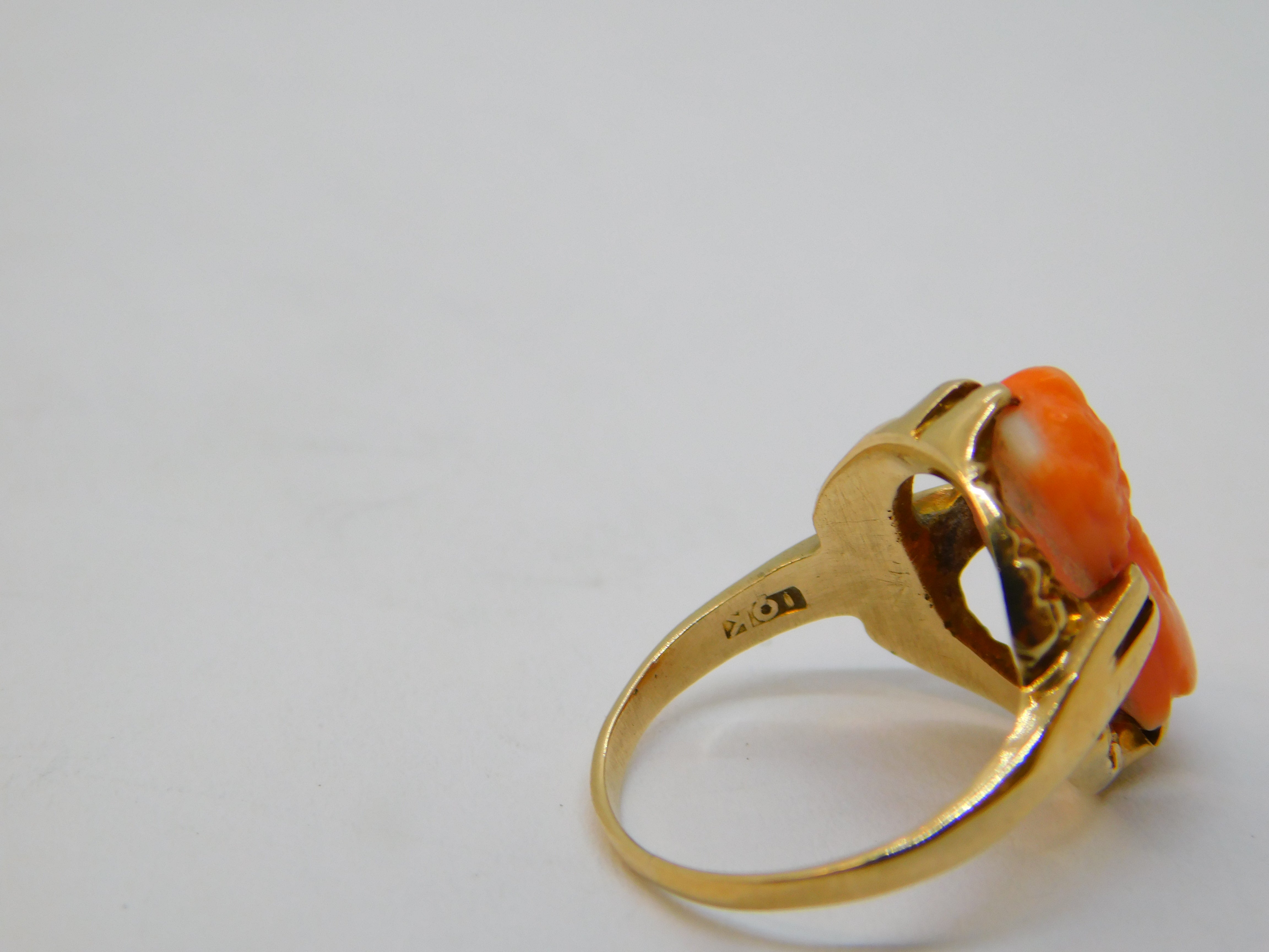 19th Century 10ct Gold, Carved Red Coral Cameo Dress Ring Antique c1880