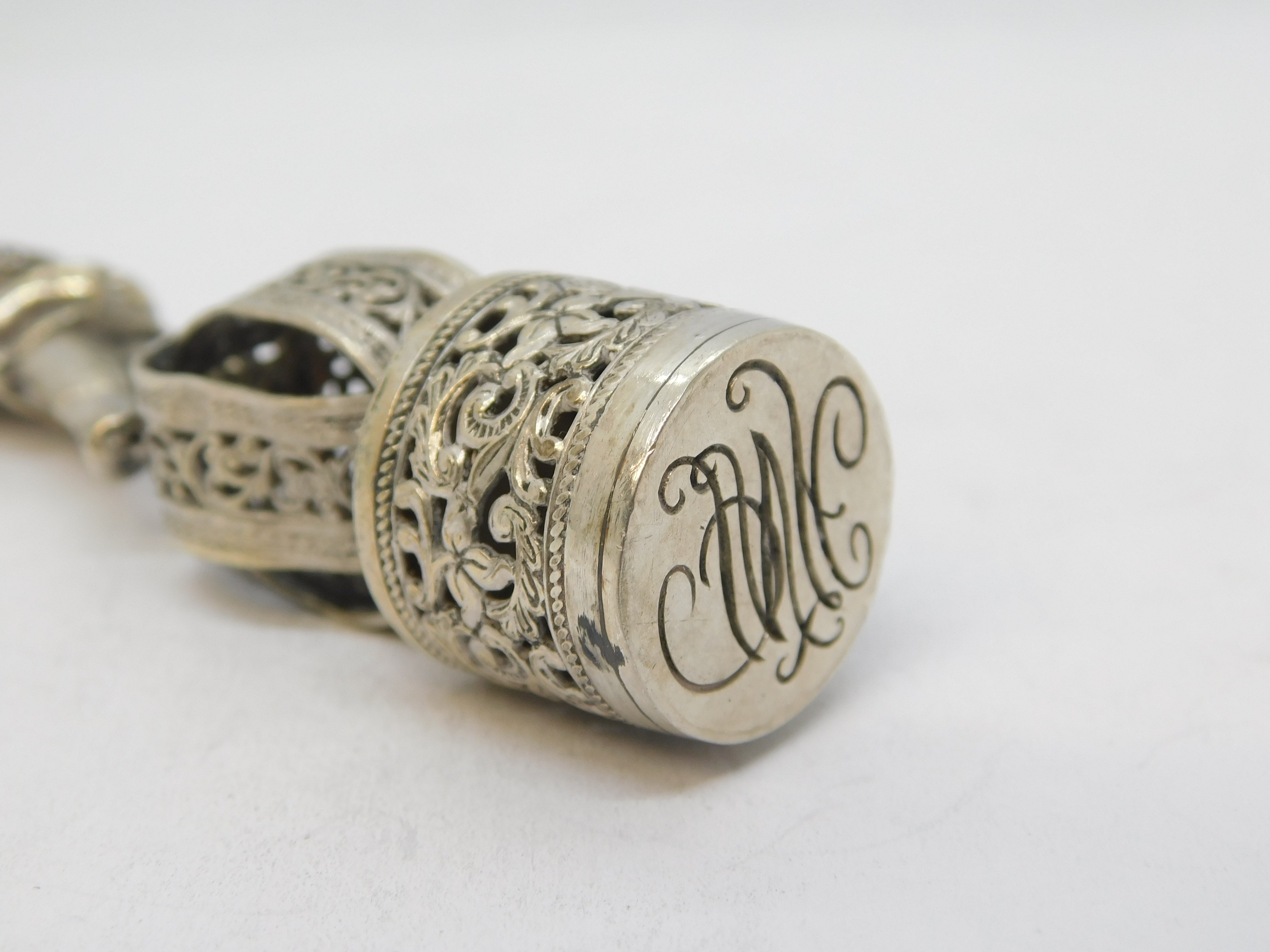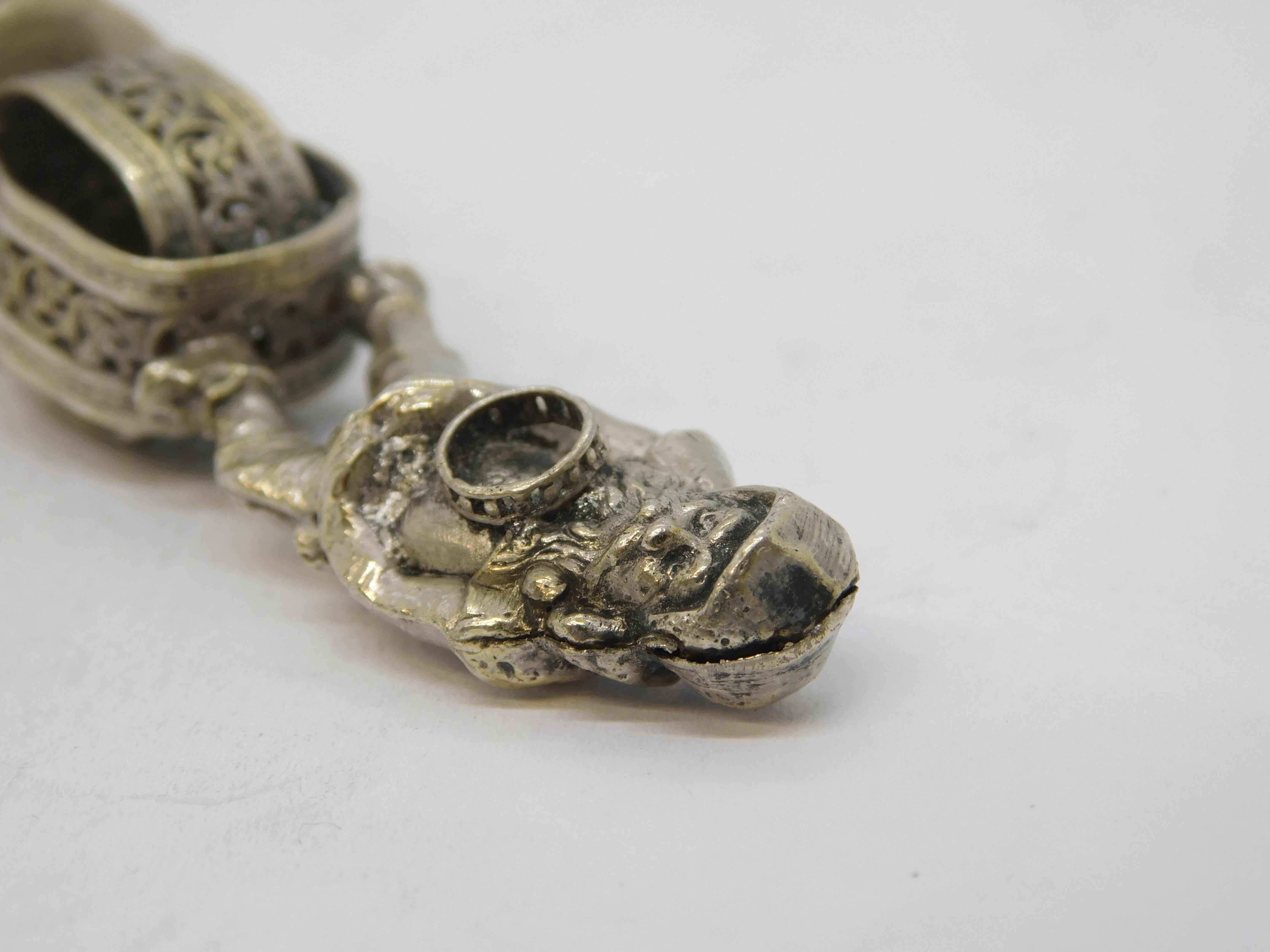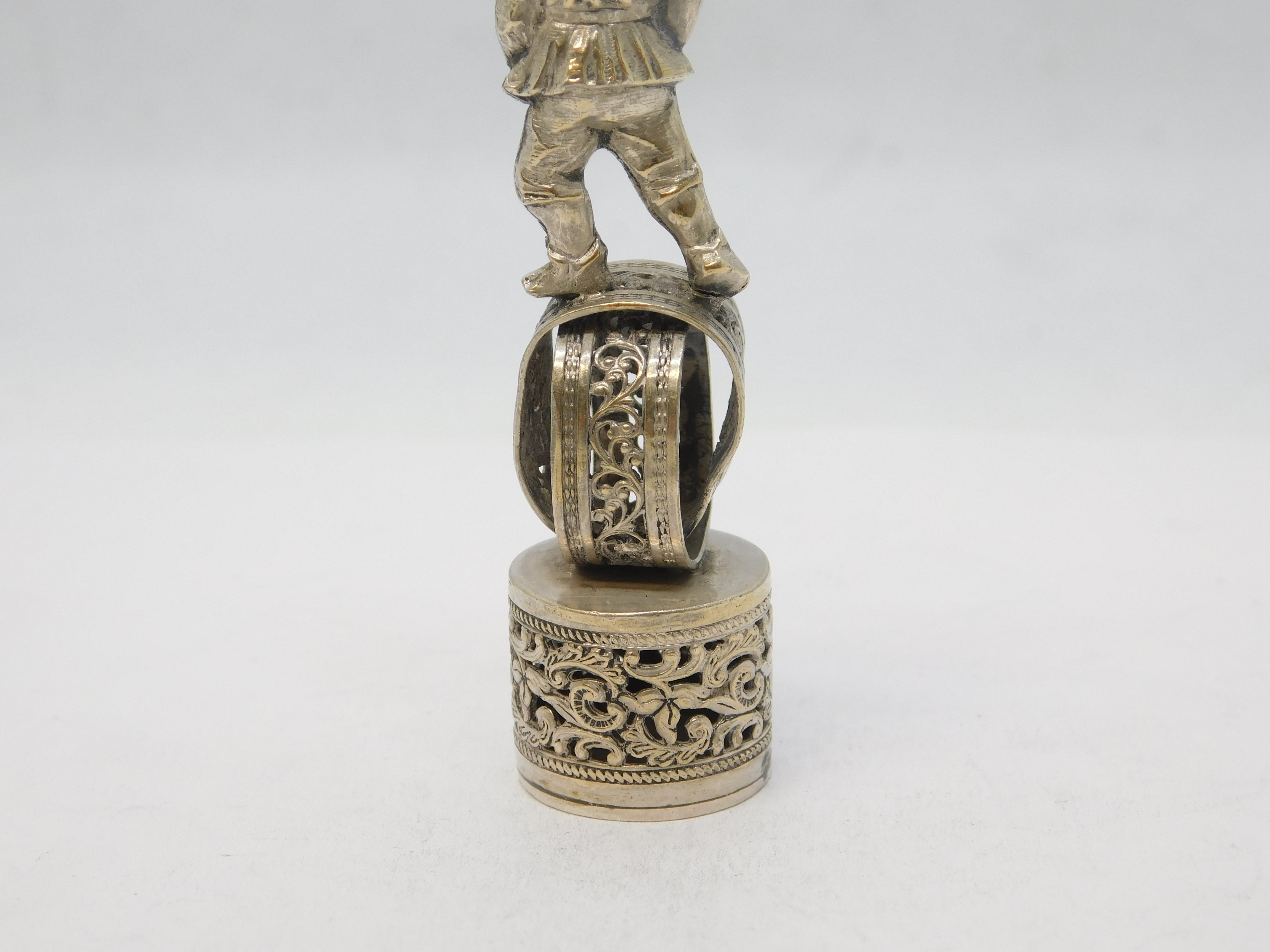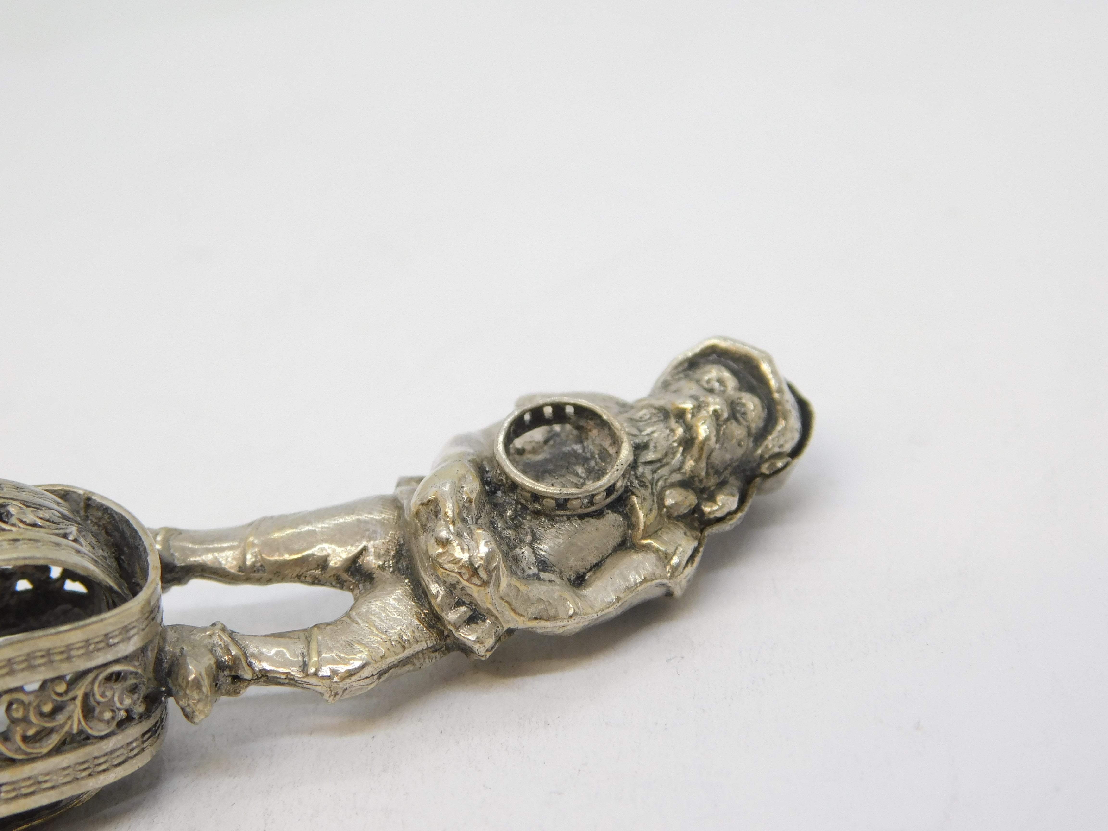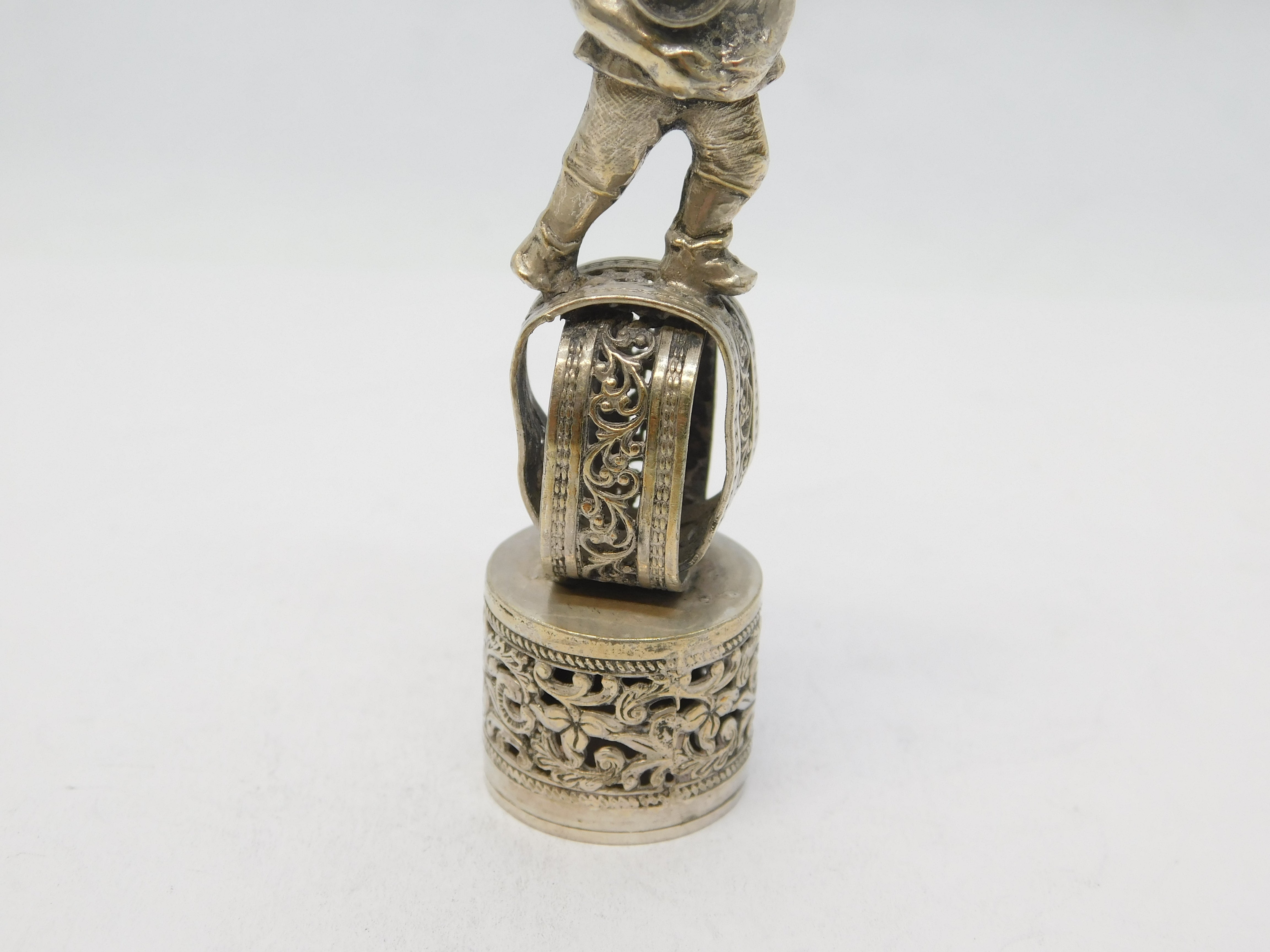 19th Century Dutch Silver Novelty Elf Form Monogram Desk Seal Antique c1860