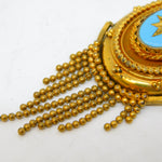 19th Century Pinchbeck Blue Enamel Etruscan Tassel Pendant Antique c1850s