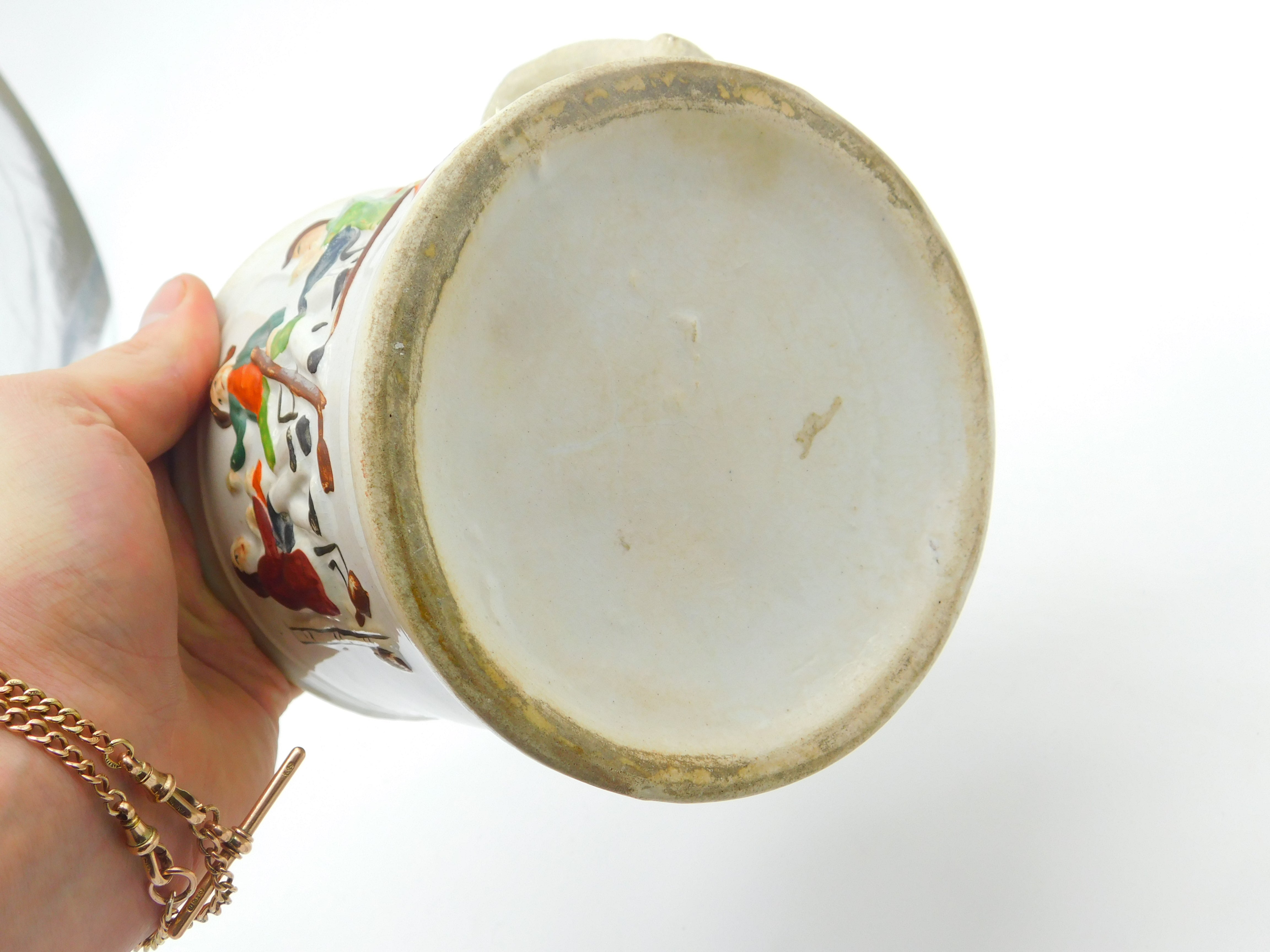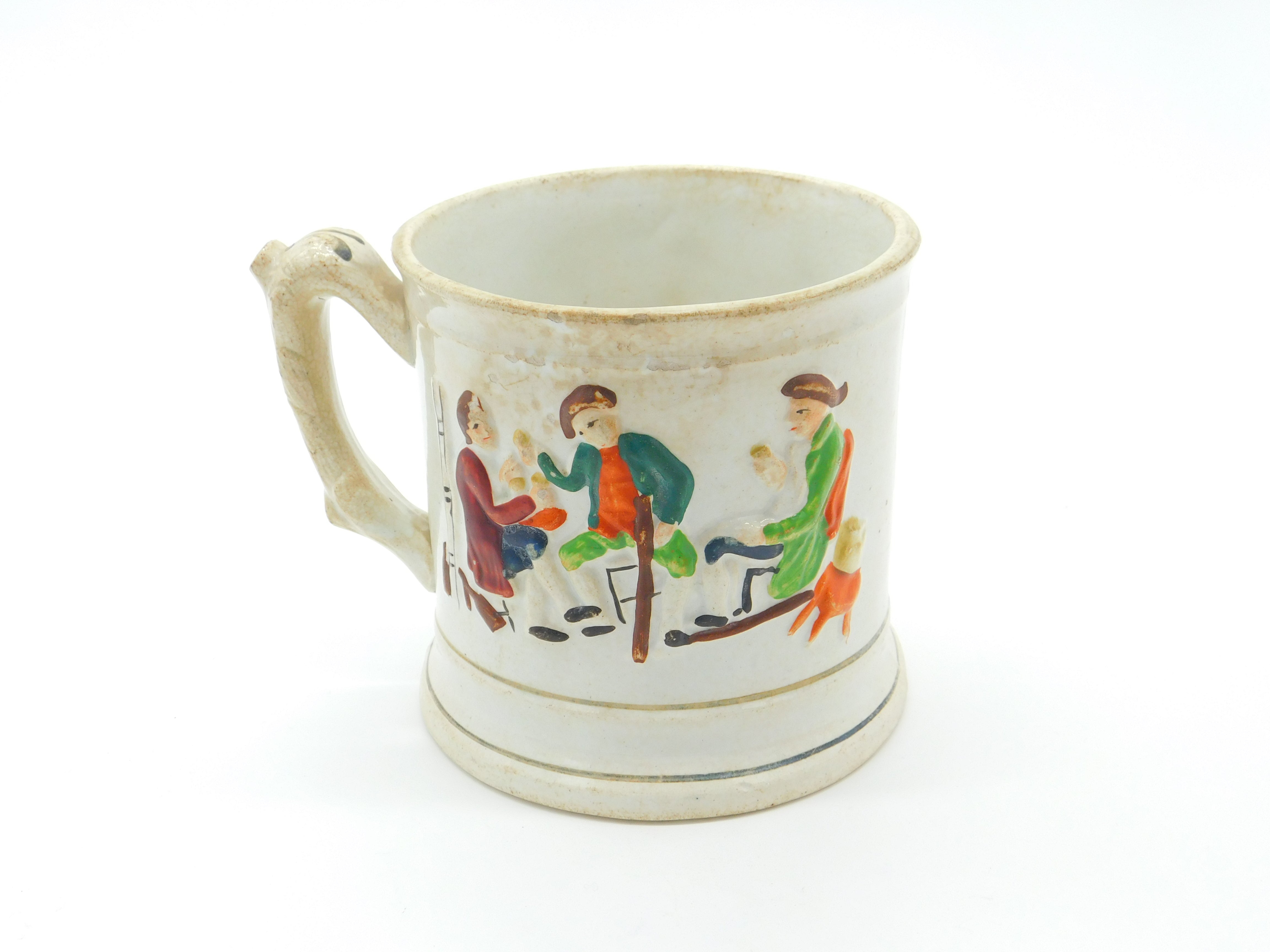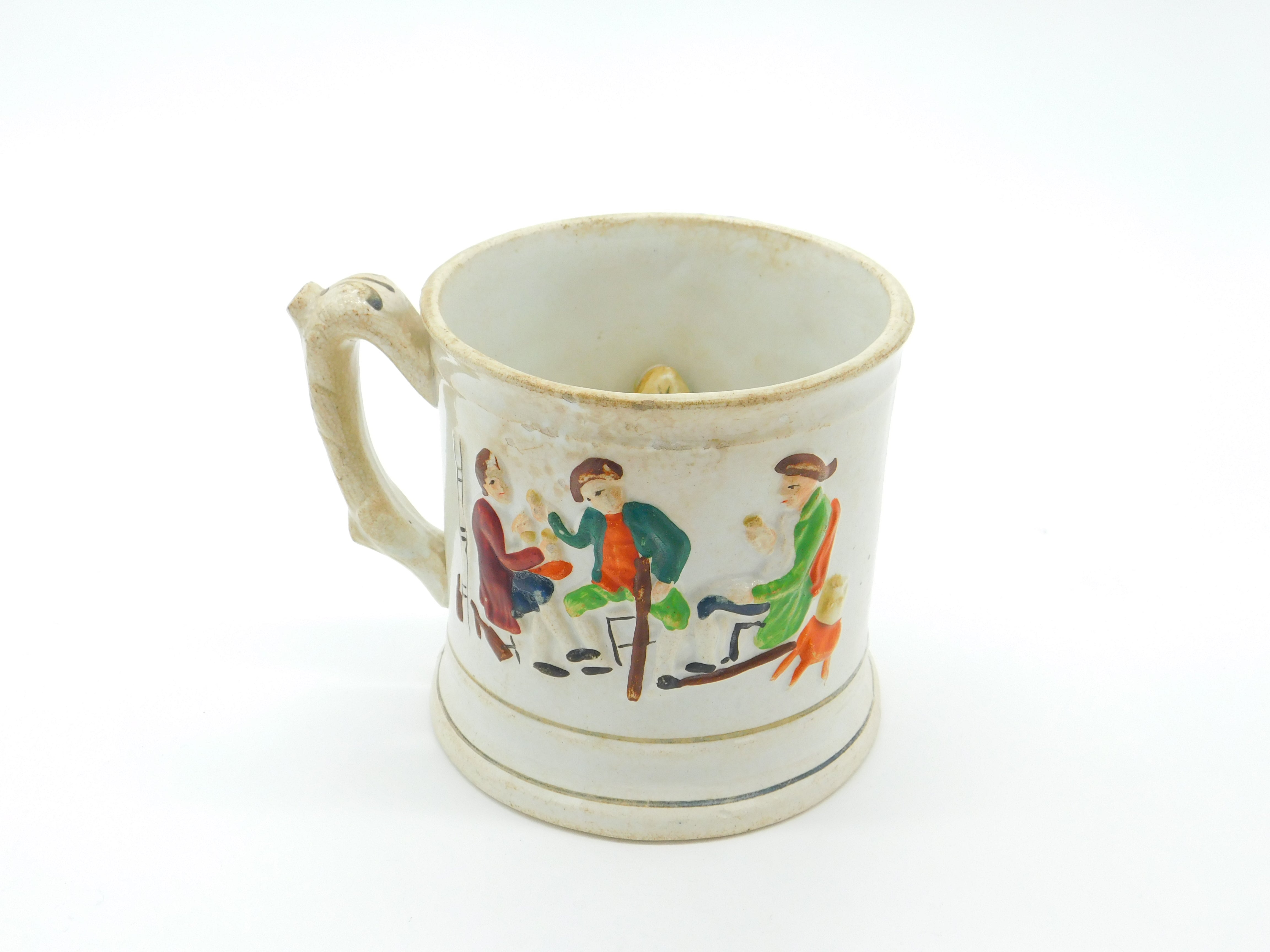 19th Century Staffordshire Ceramic Frog Mug Tankard Pub Tavern Scene Georgian