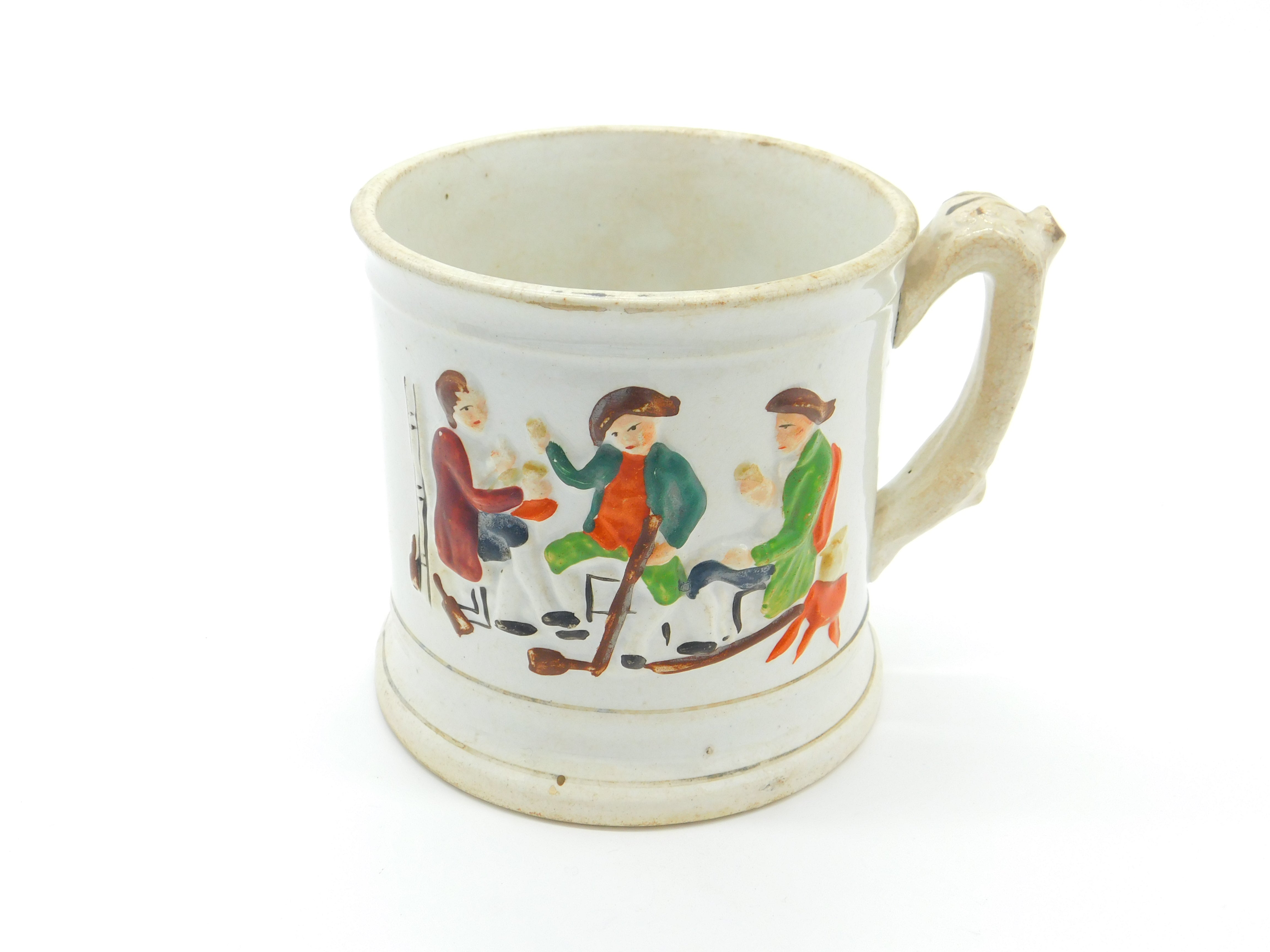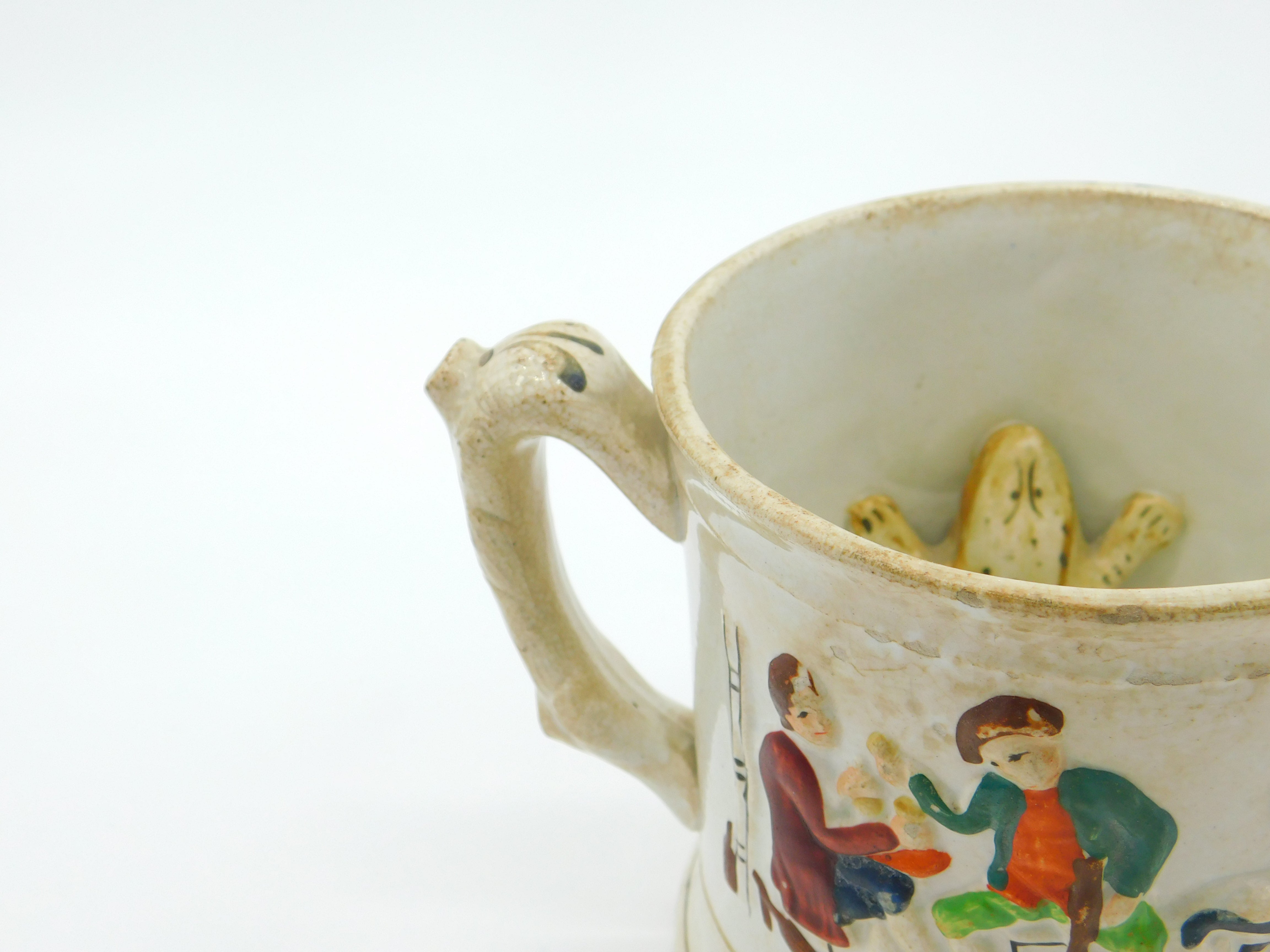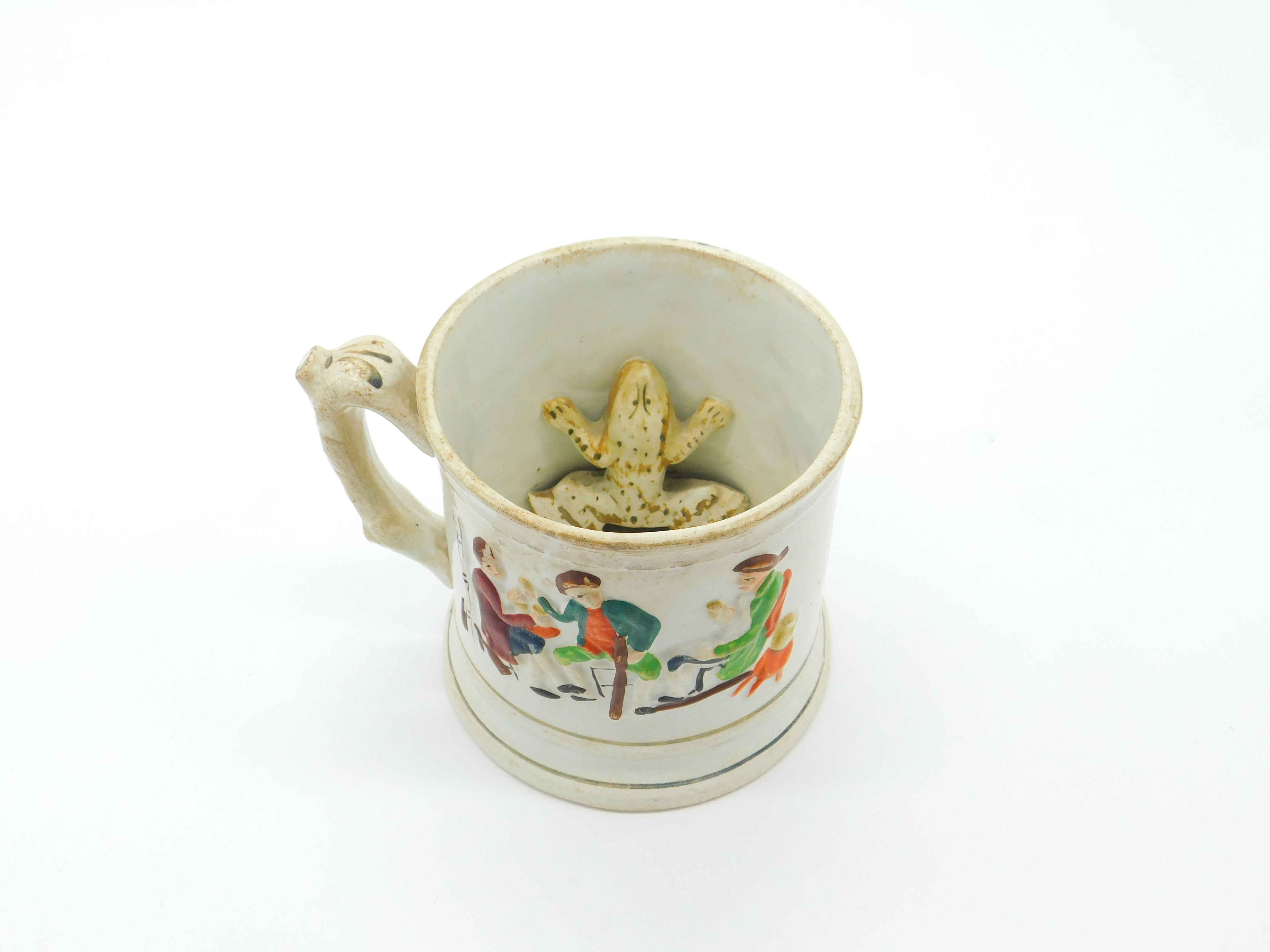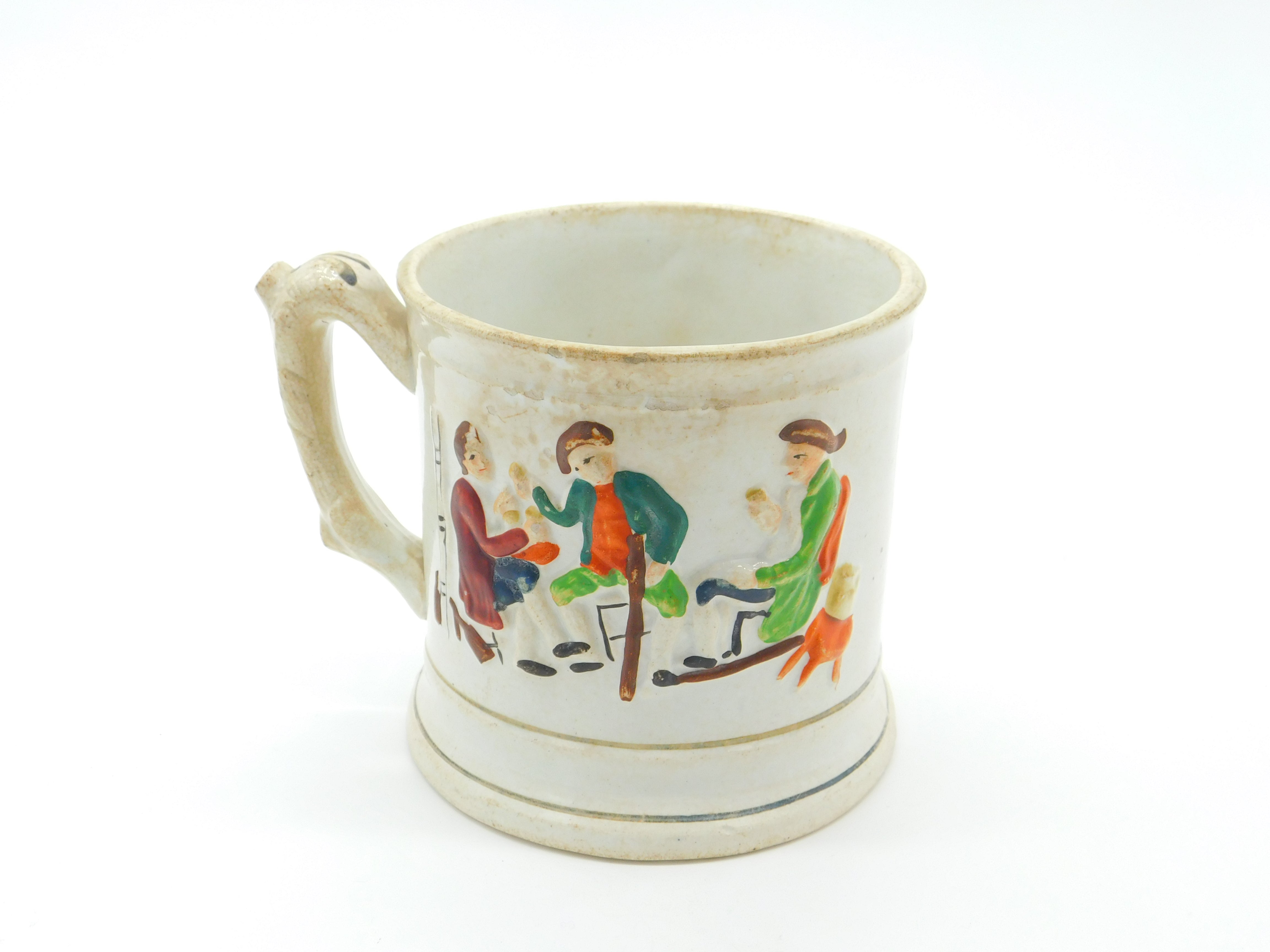 19th Century Staffordshire Ceramic Frog Mug Tankard Pub Tavern Scene Georgian