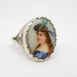 Details: A fantastic and wonderfully designed antique 19th century sterling silver dress ring set with superb hand painted porcelain panel showing a young, possibly Scottish showing a young Mary Queen of Scots, c1860, the silver has been XRF tested as it is unmarked. This is a wonderful item that would make a perfect gift or addition to any collection.