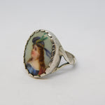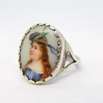 Victorian Sterling Silver Mary Queen of Scots Porcelain Dress Ring Antique c1860