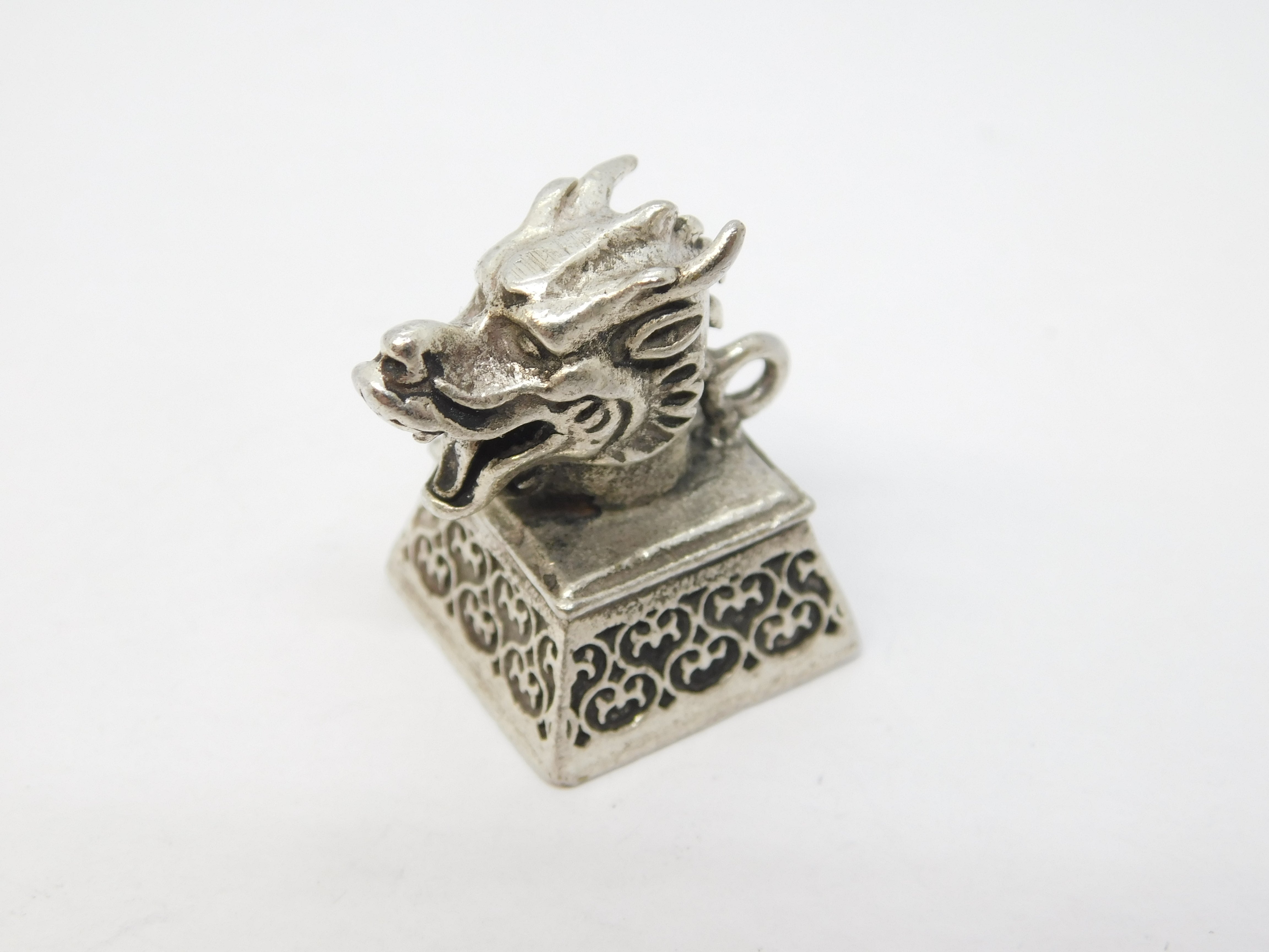 Details: A fantastic and wonderfully designed antique 20th century Chinese white metal cast Year of the Dragon seal fob pendant with lovely detailing c1940. This is a wonderful item that would make a perfect gift or addition to any collection.