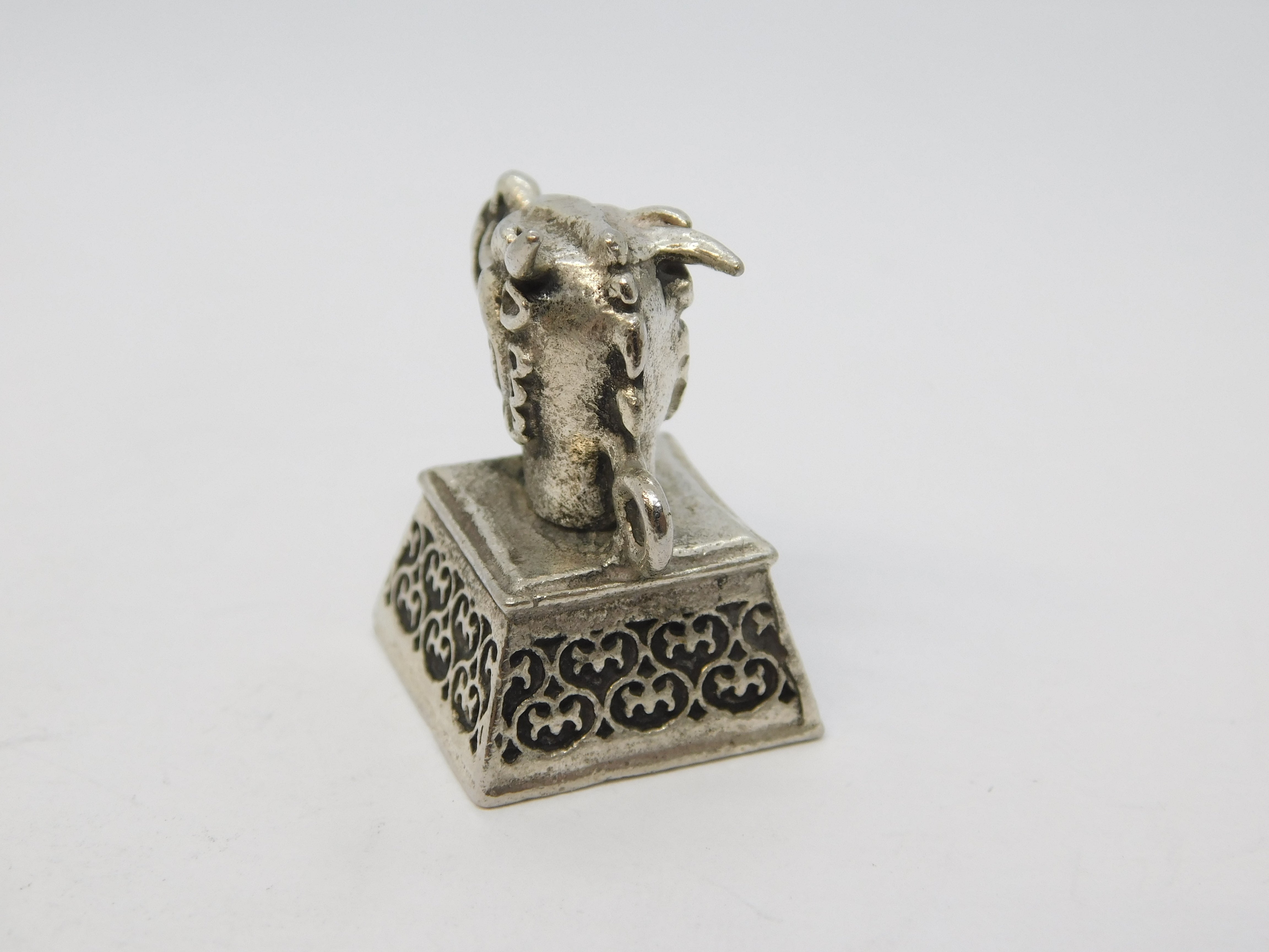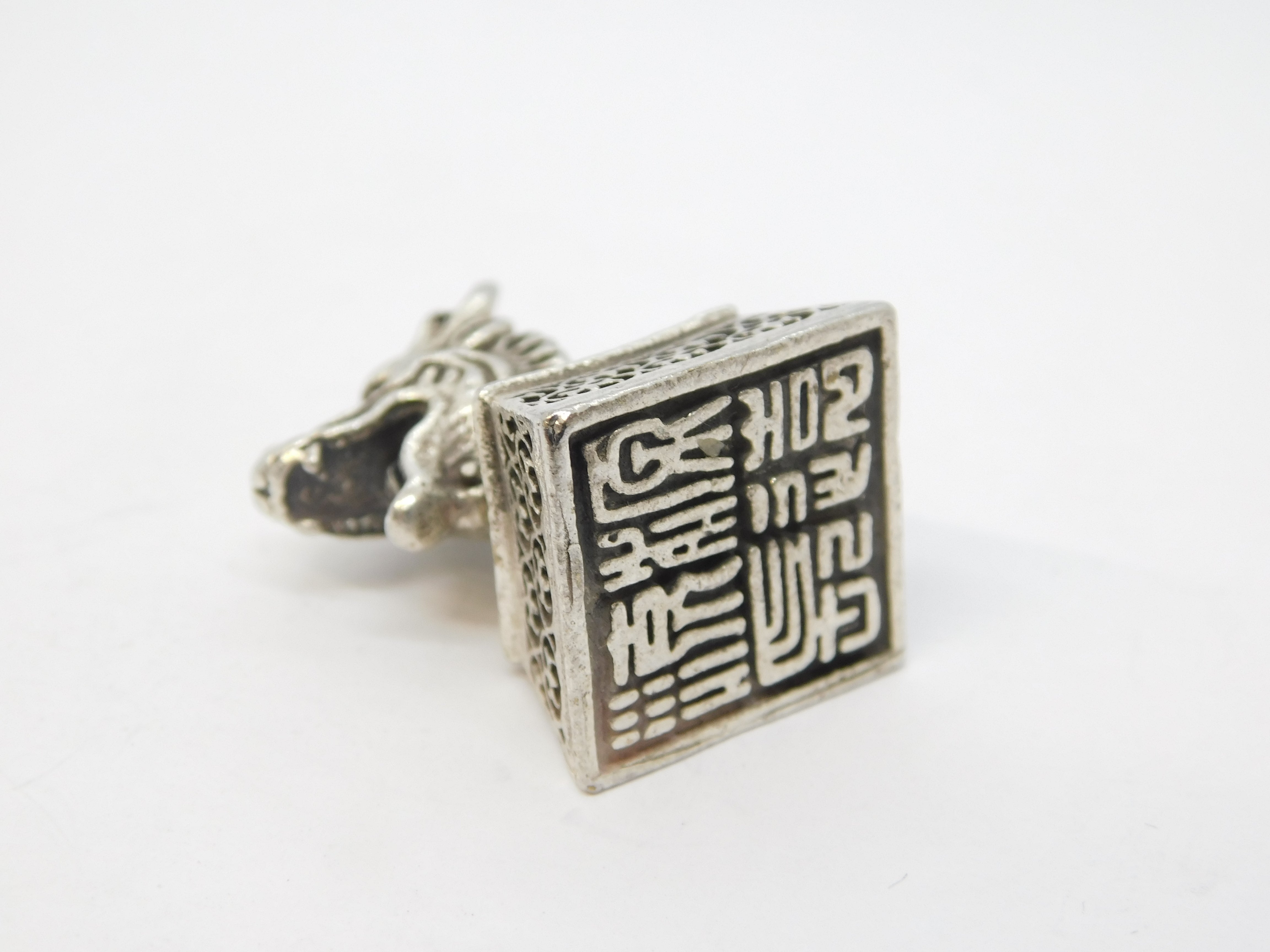 20th Century Chinese White Metal Year of the Dragon Seal Fob Antique c1940