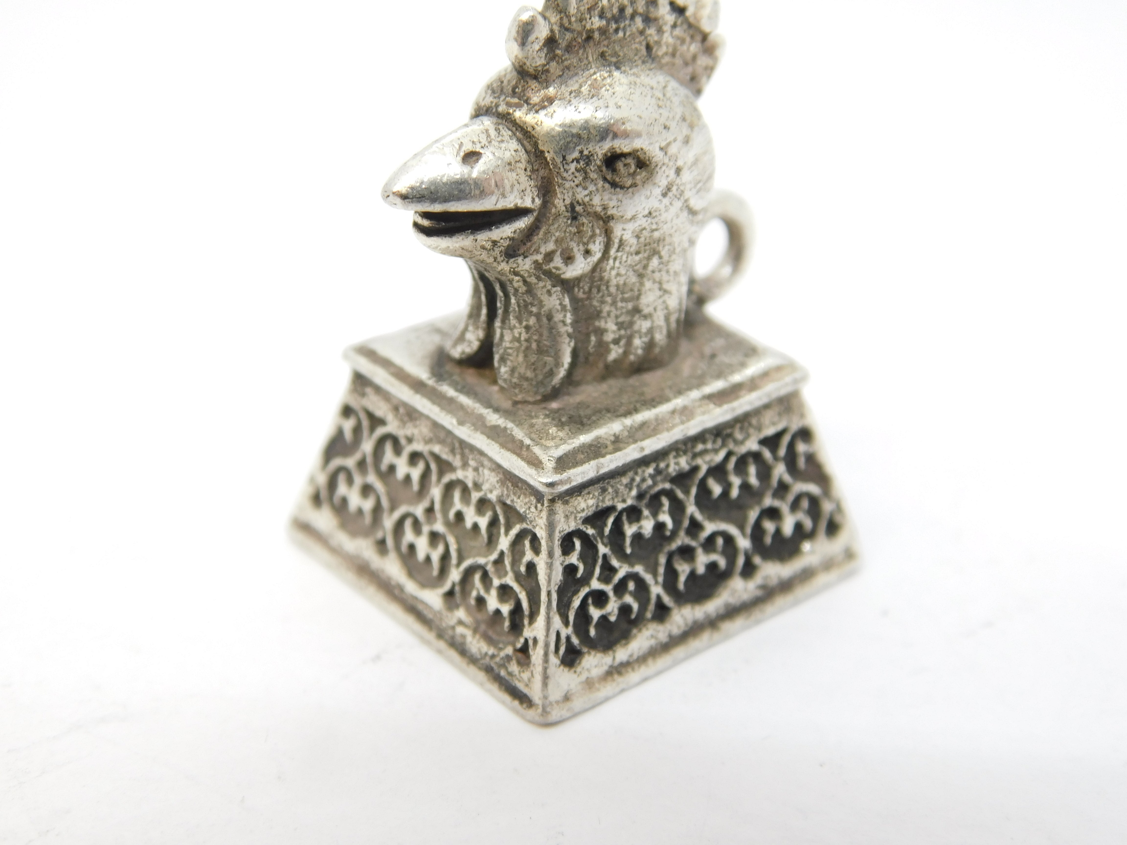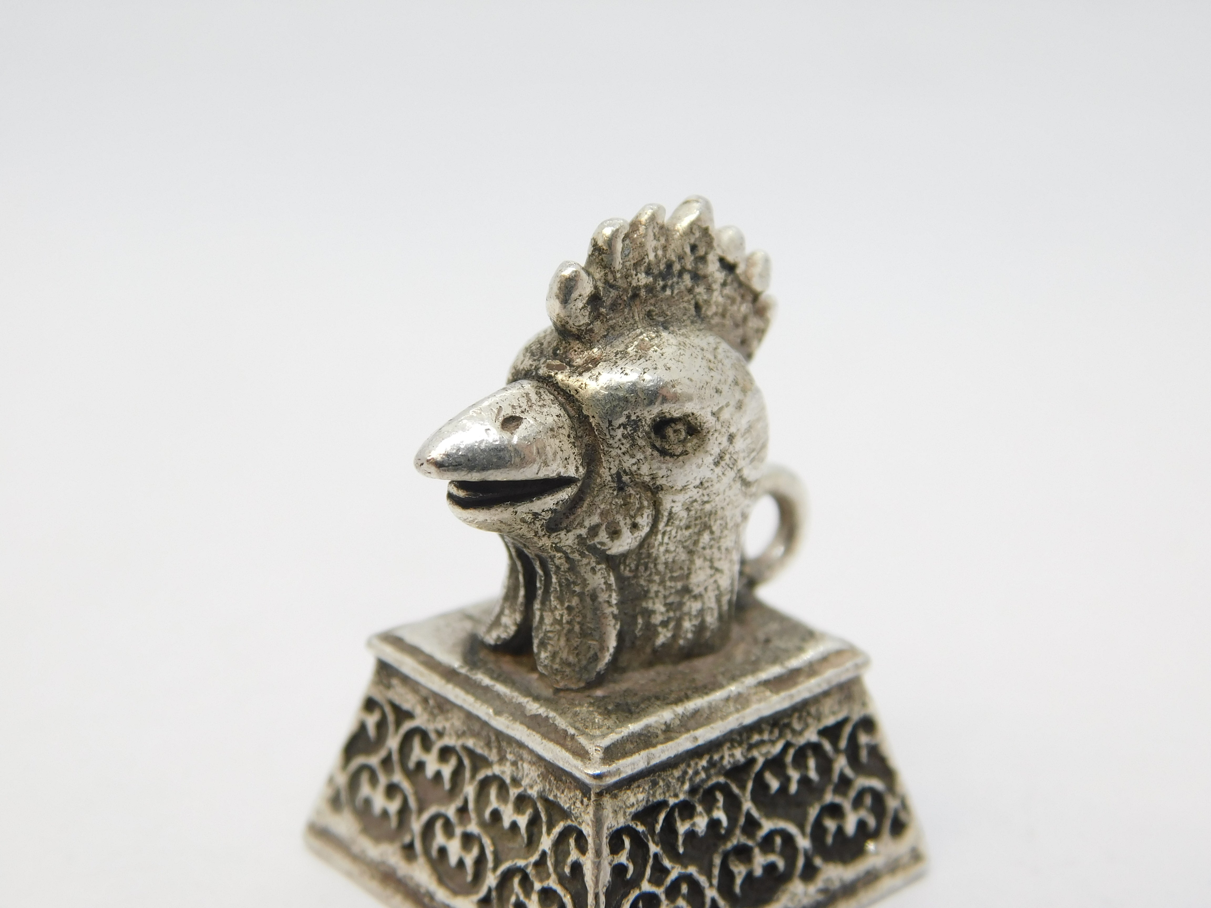 Details: A fantastic and wonderfully designed antique Chinese 20th century white metal Year of the Rooster seal fob pendant with lovely detailing c1940. This is a wonderful item that would make a perfect gift or addition to any collection.