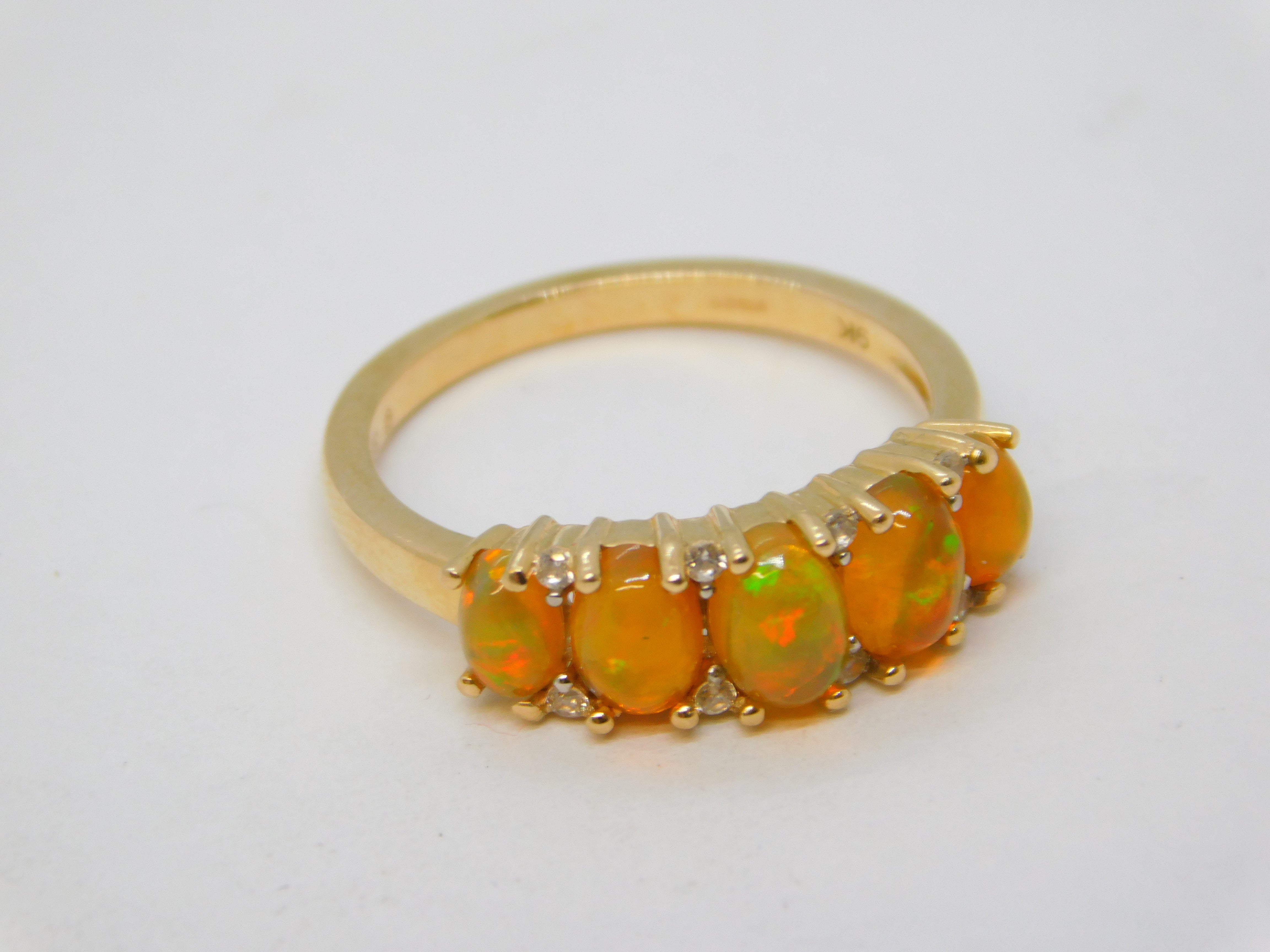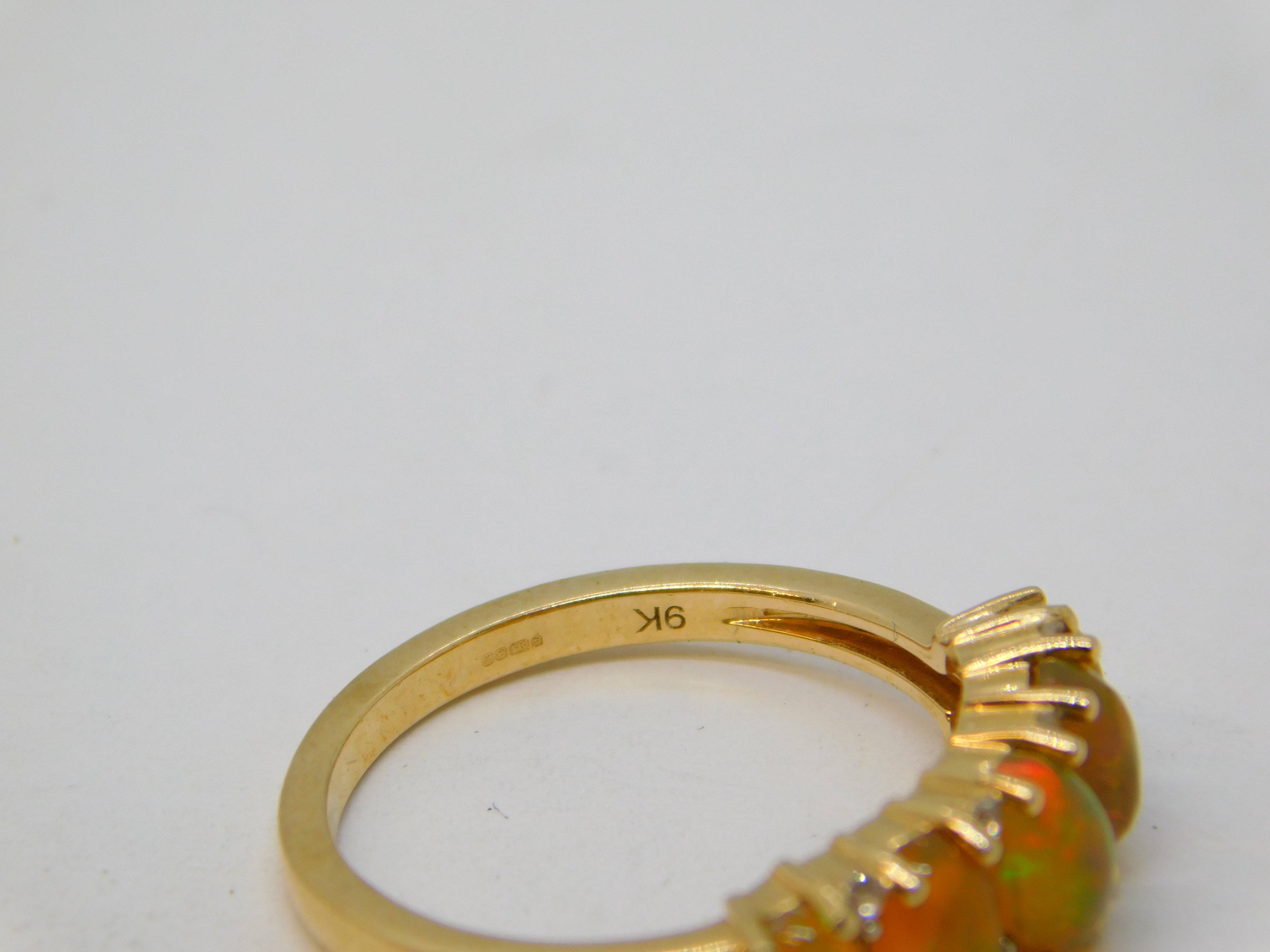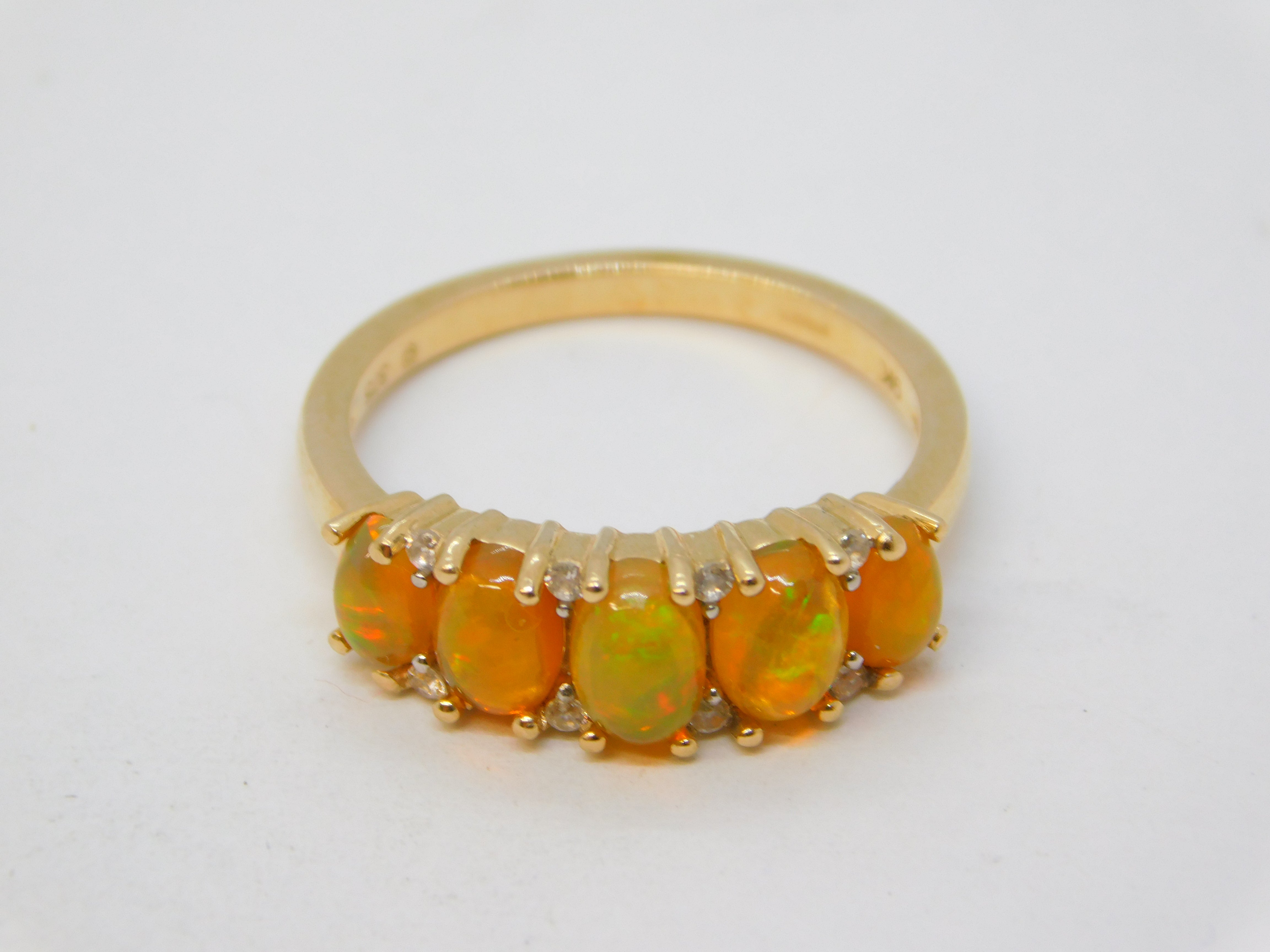 9ct Gold, Five-Stone Opal & White Sapphire Graduated Dress Ring Vintage c1990