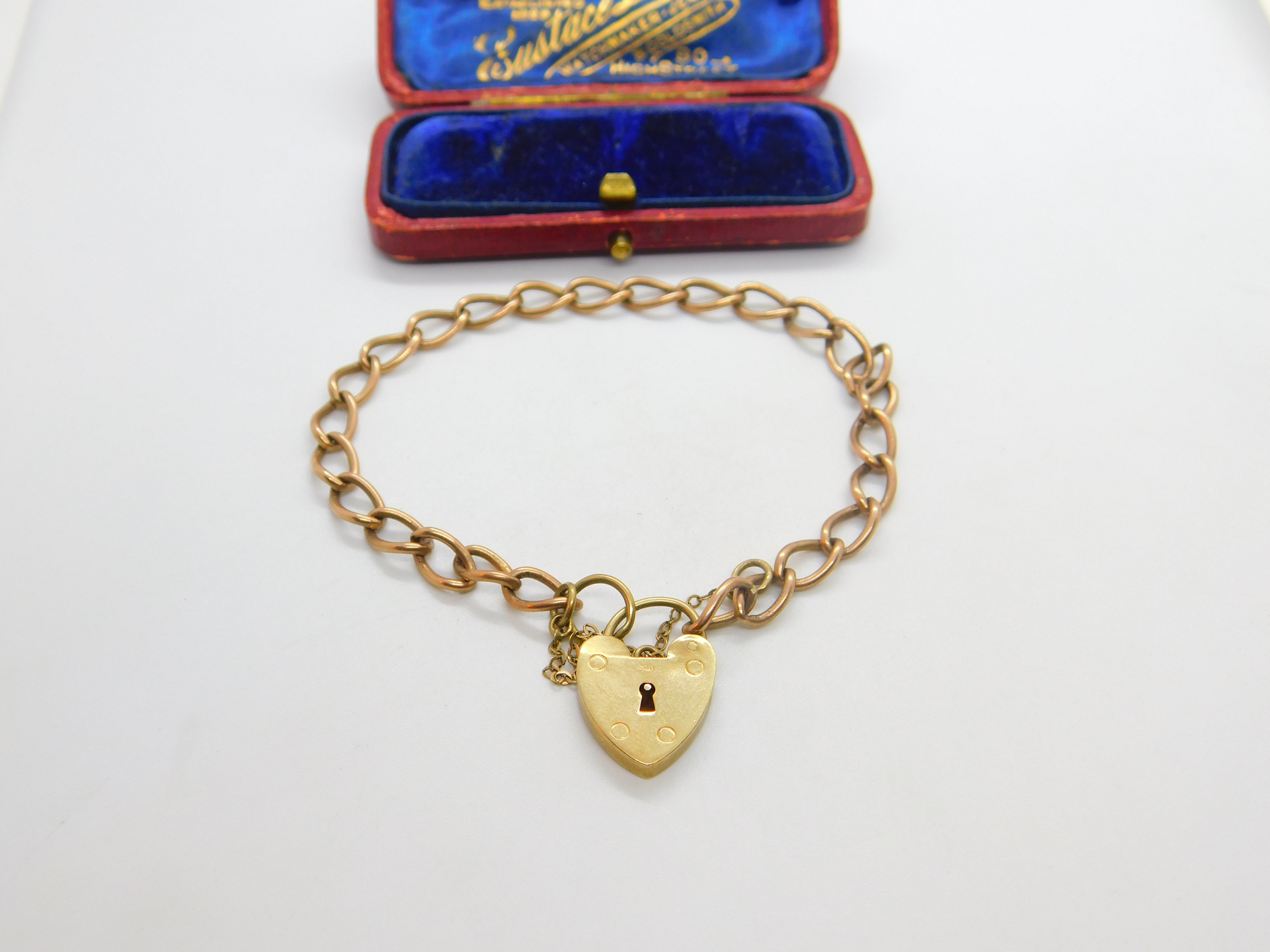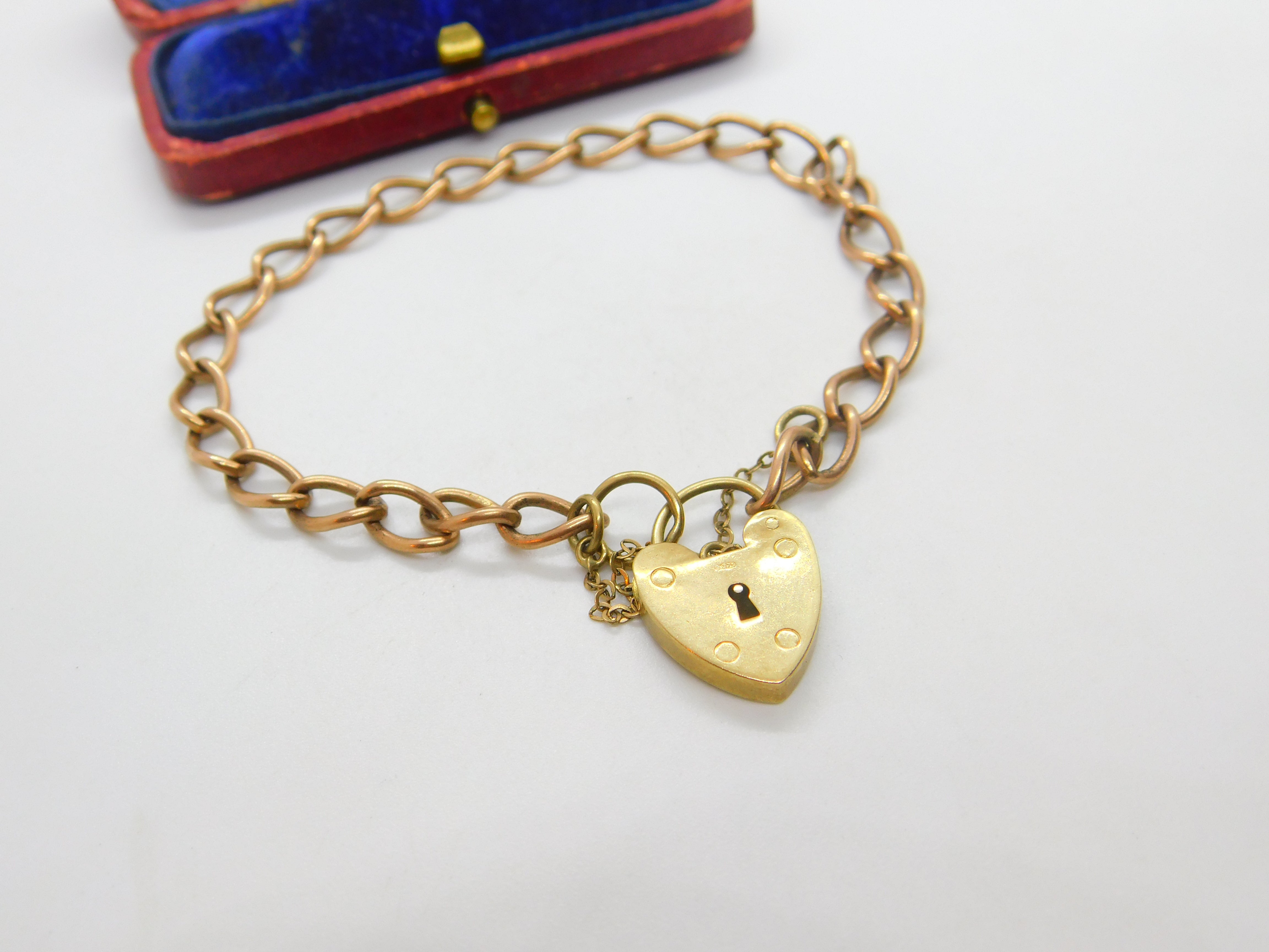 Details: A fantastic and wonderfully designed vintage 9ct rose gold curb link charm bracelet with heart lock clasp hallmarked London 1961 to the reverse. This is a wonderful item that would make a perfect gift or addition to any collection. The BOX pictured is for PRESENTATION ONLY and is NOT included in the listings but used to frame the pictures unless specifically stated otherwise.
