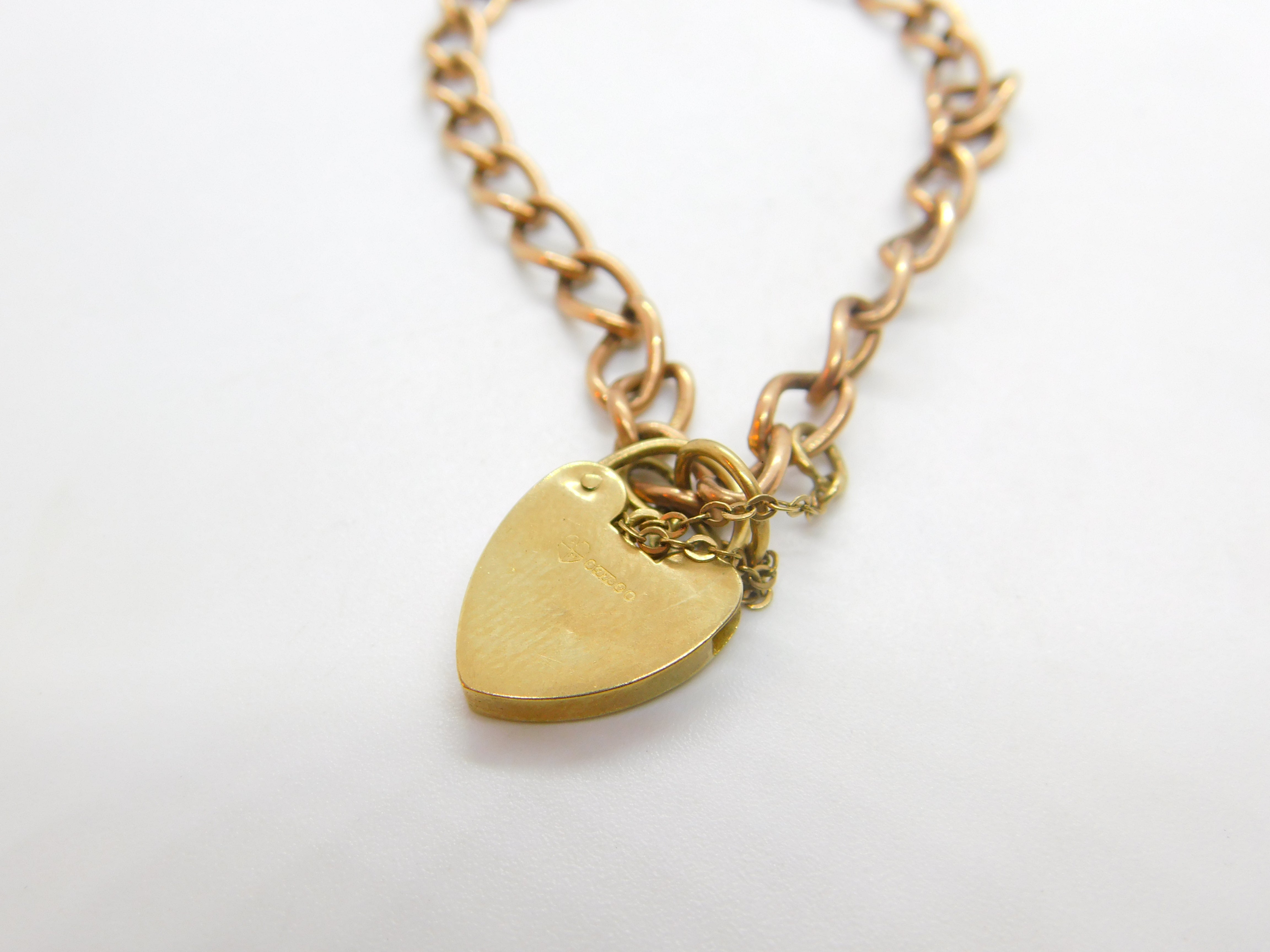 9ct Rose Gold Curb Link Charm Bracelet Heart Lock Clasp 1961 London Vintage