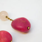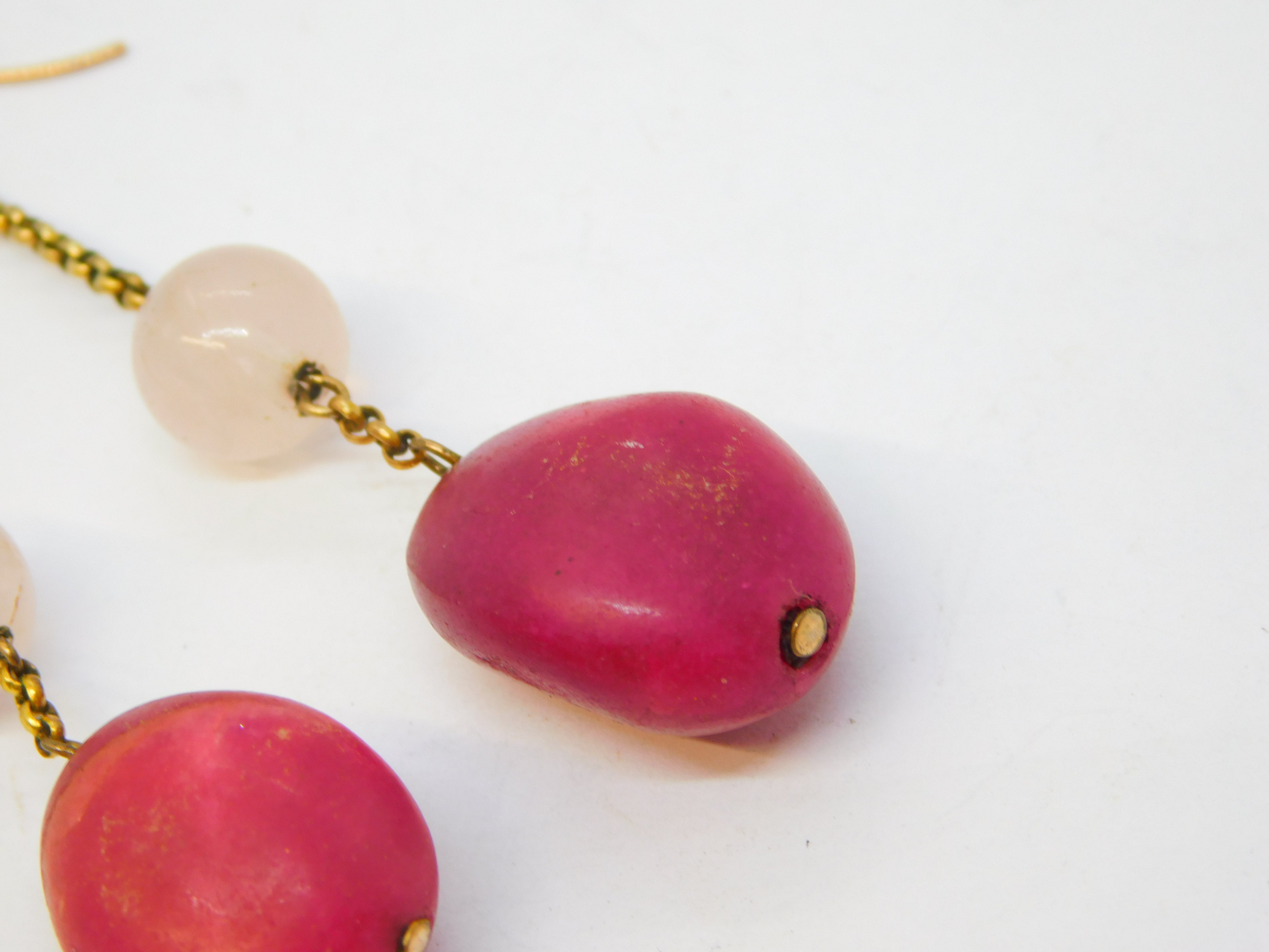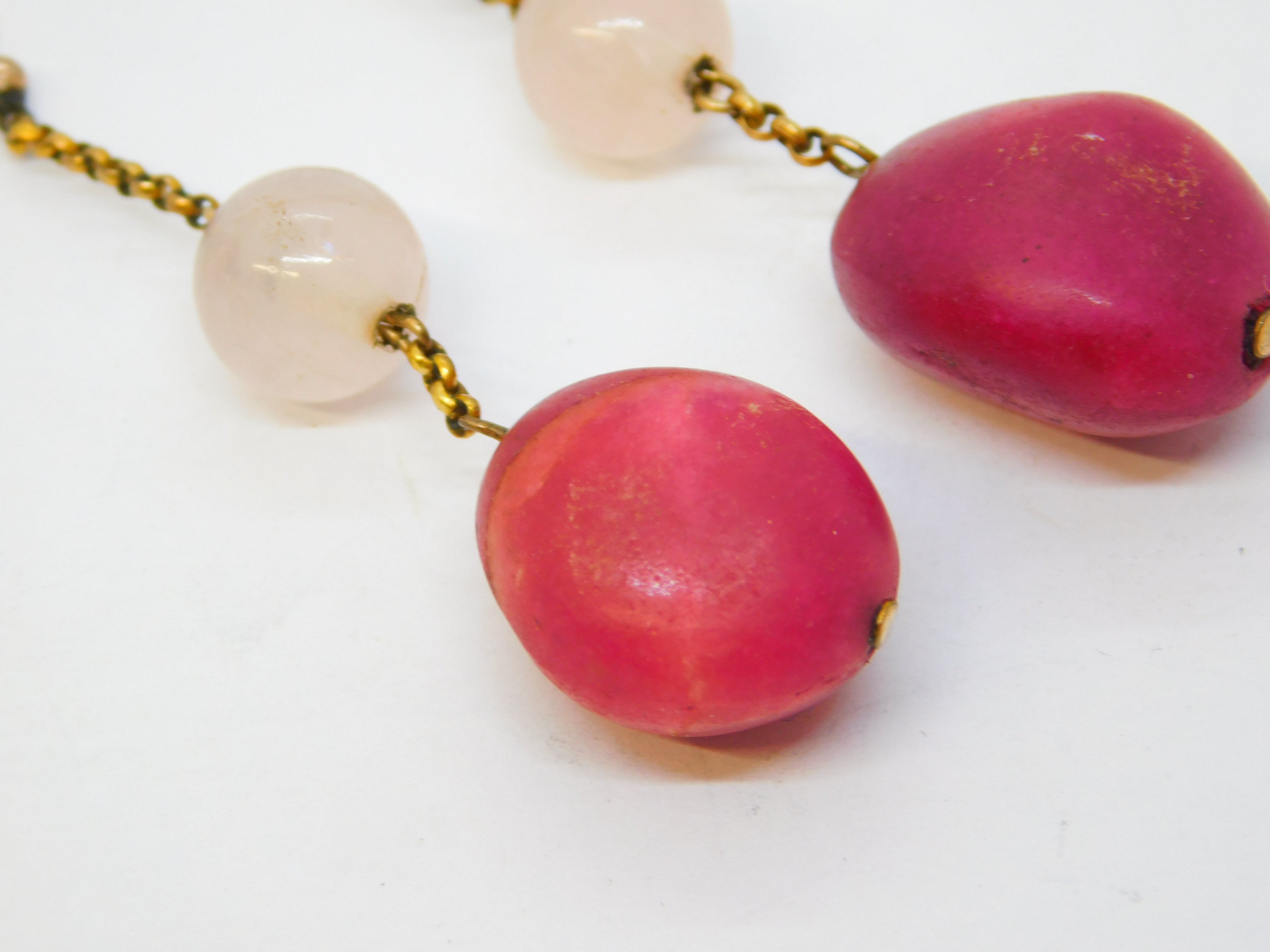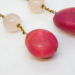9ct Rose Gold Natural Red Quartz & Rose Quartz Drop Earrings Antique c1920