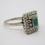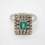 9ct White Gold, Baguette Cut Emerald & Diamond Engagement Ring Vintage