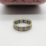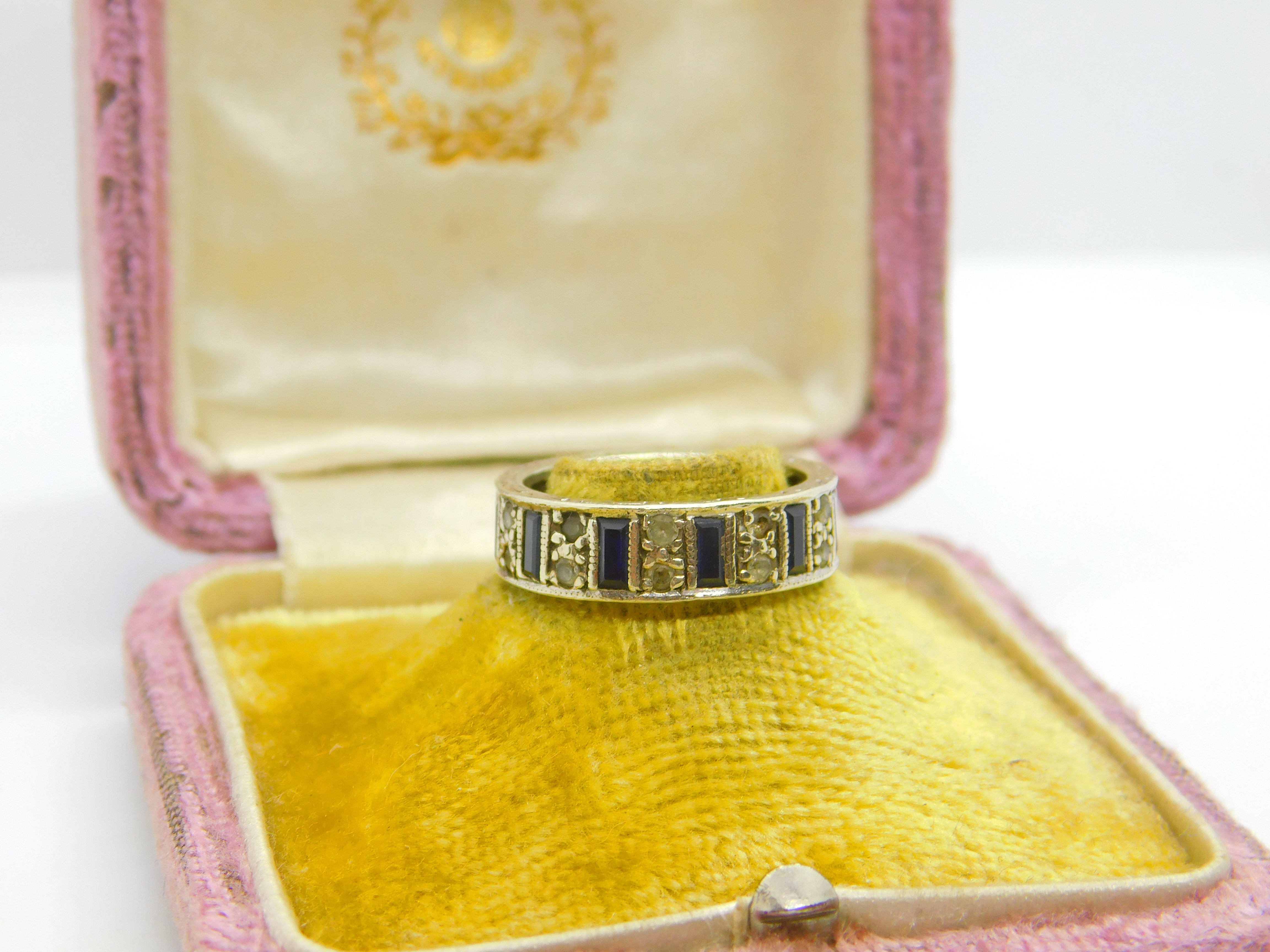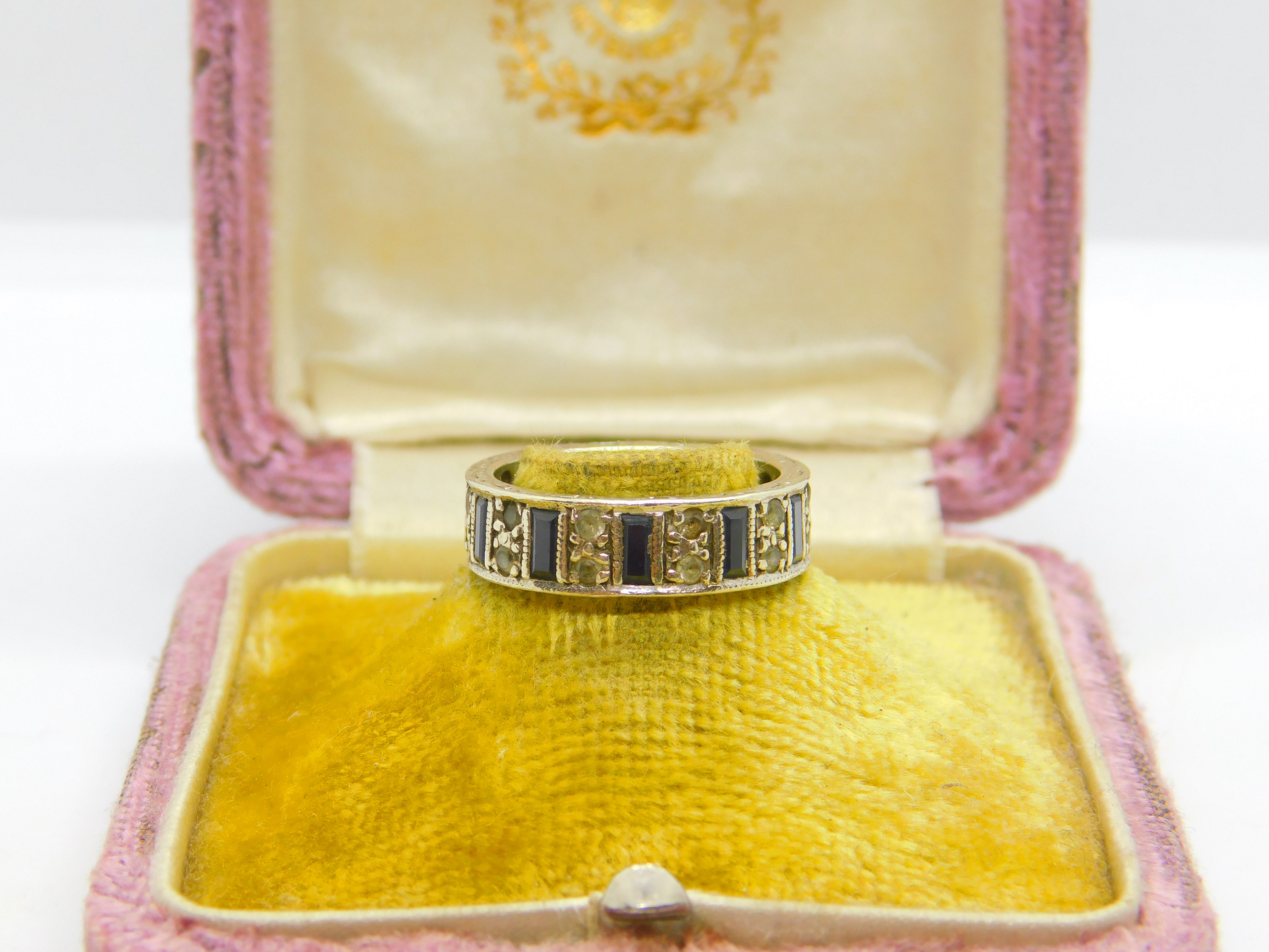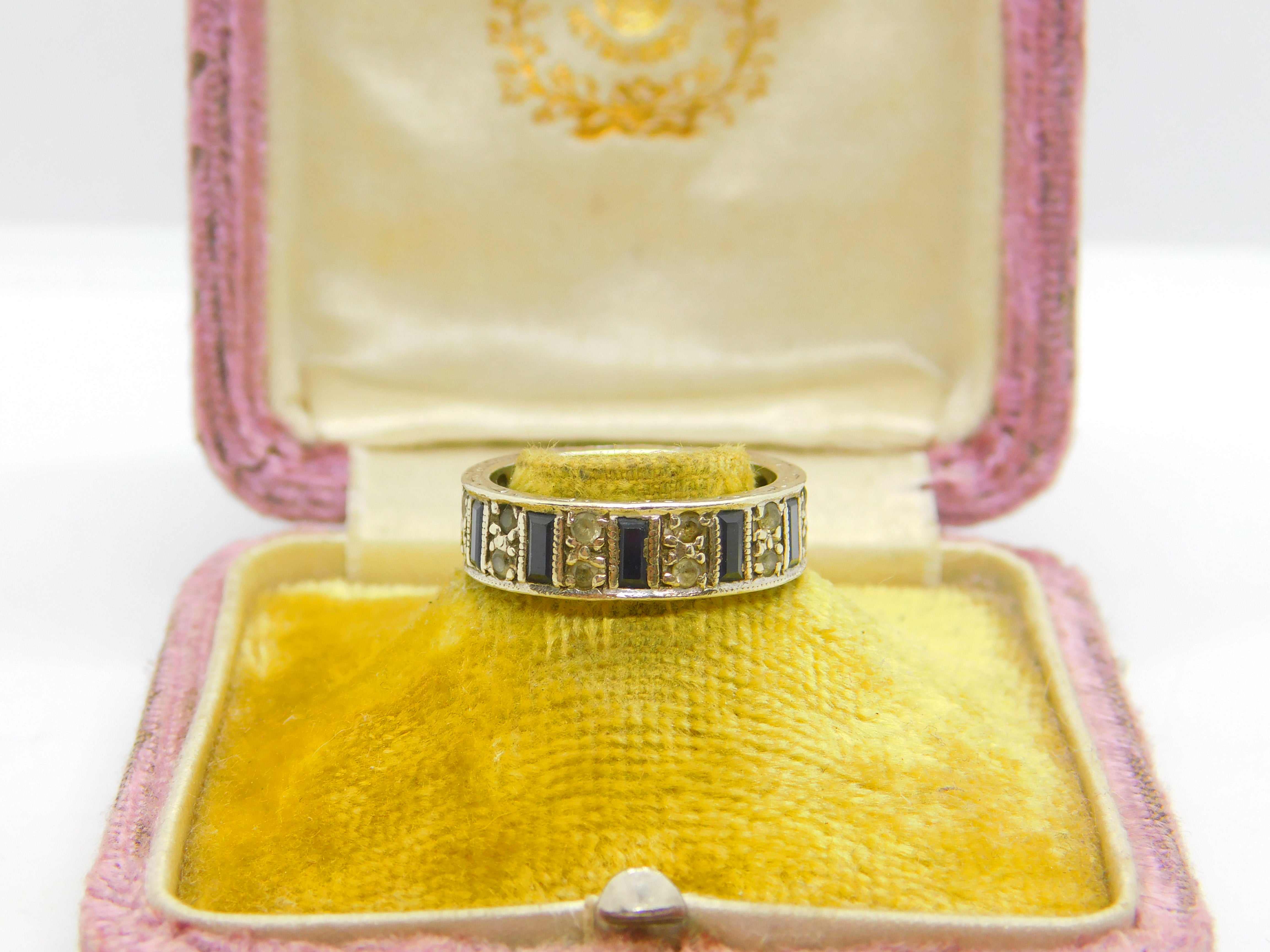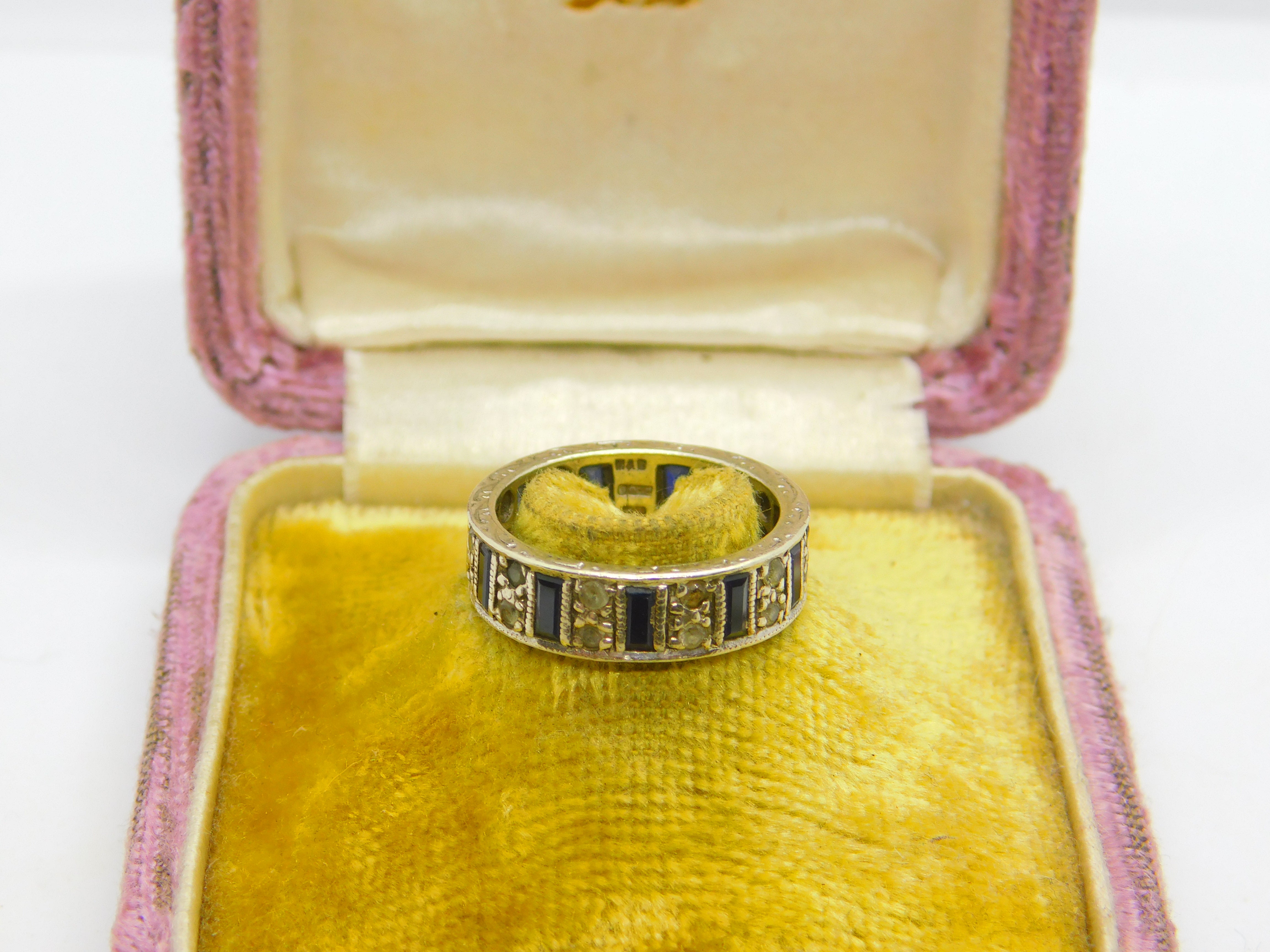 9ct White Gold, Sapphire & Spinel Full Eternity Ring Vintage 1974 Birmingham