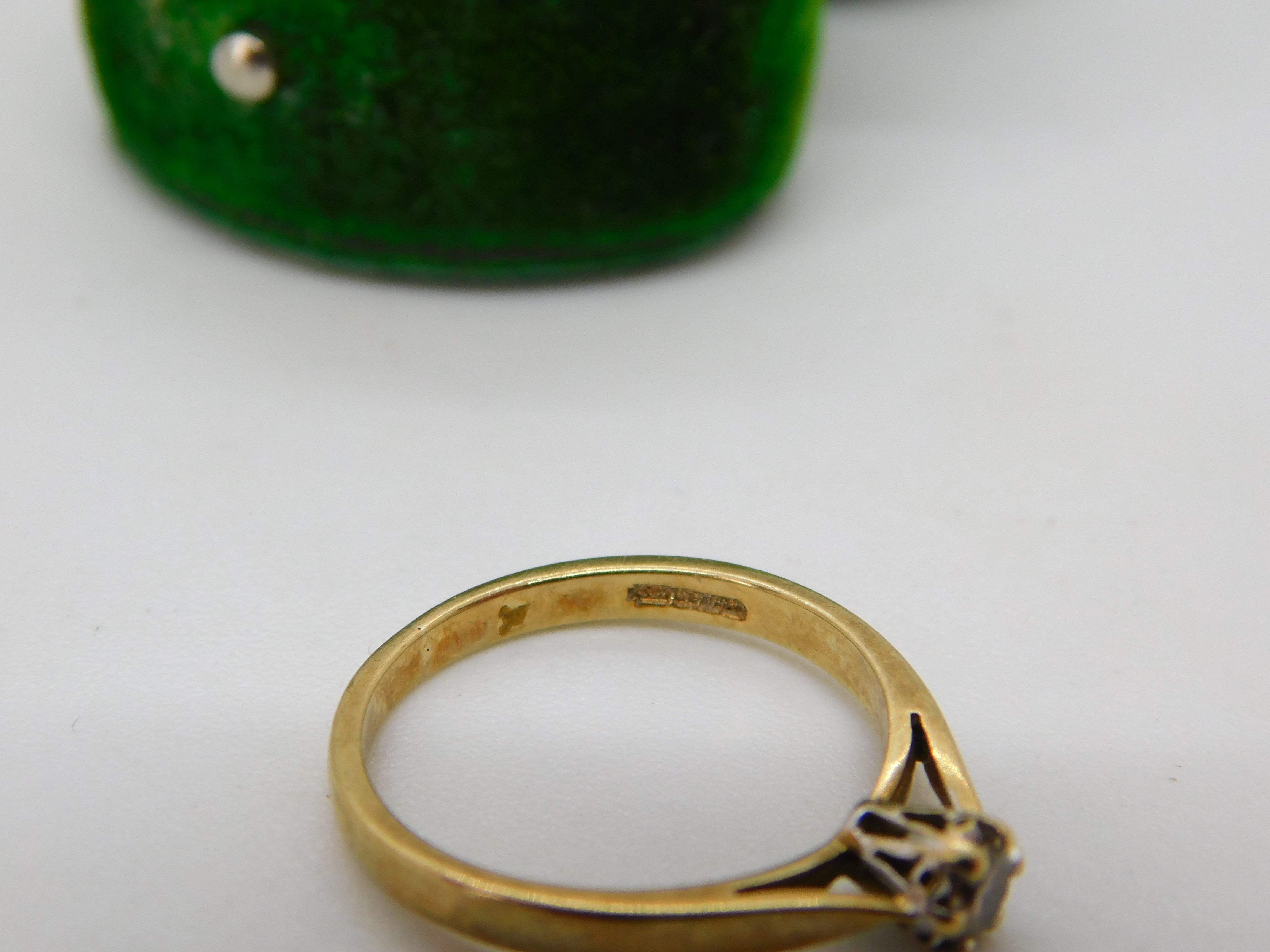 9ct Yellow Gold & 0.15ct Diamond Solitaire Ring Vintage c1970 London