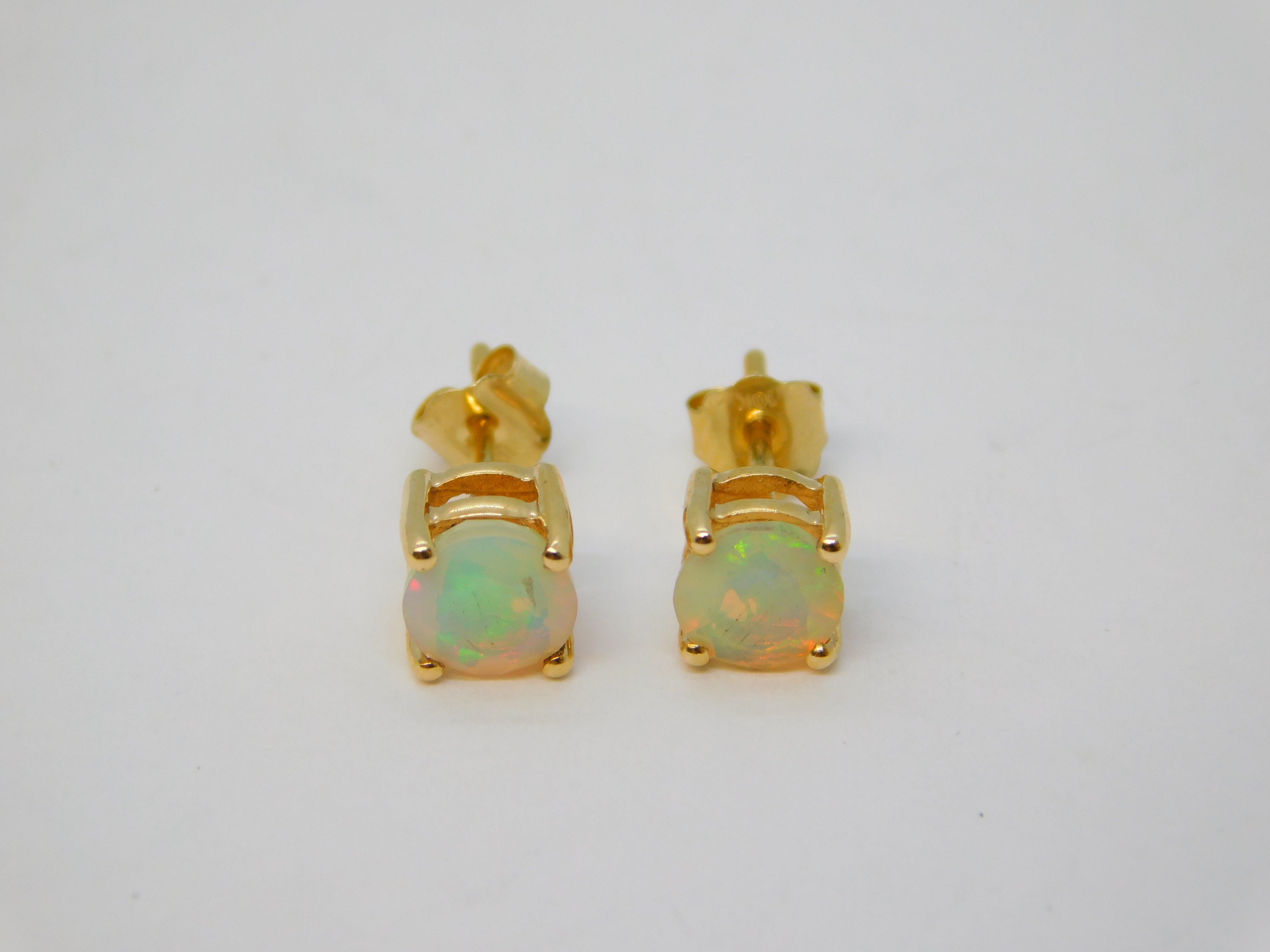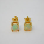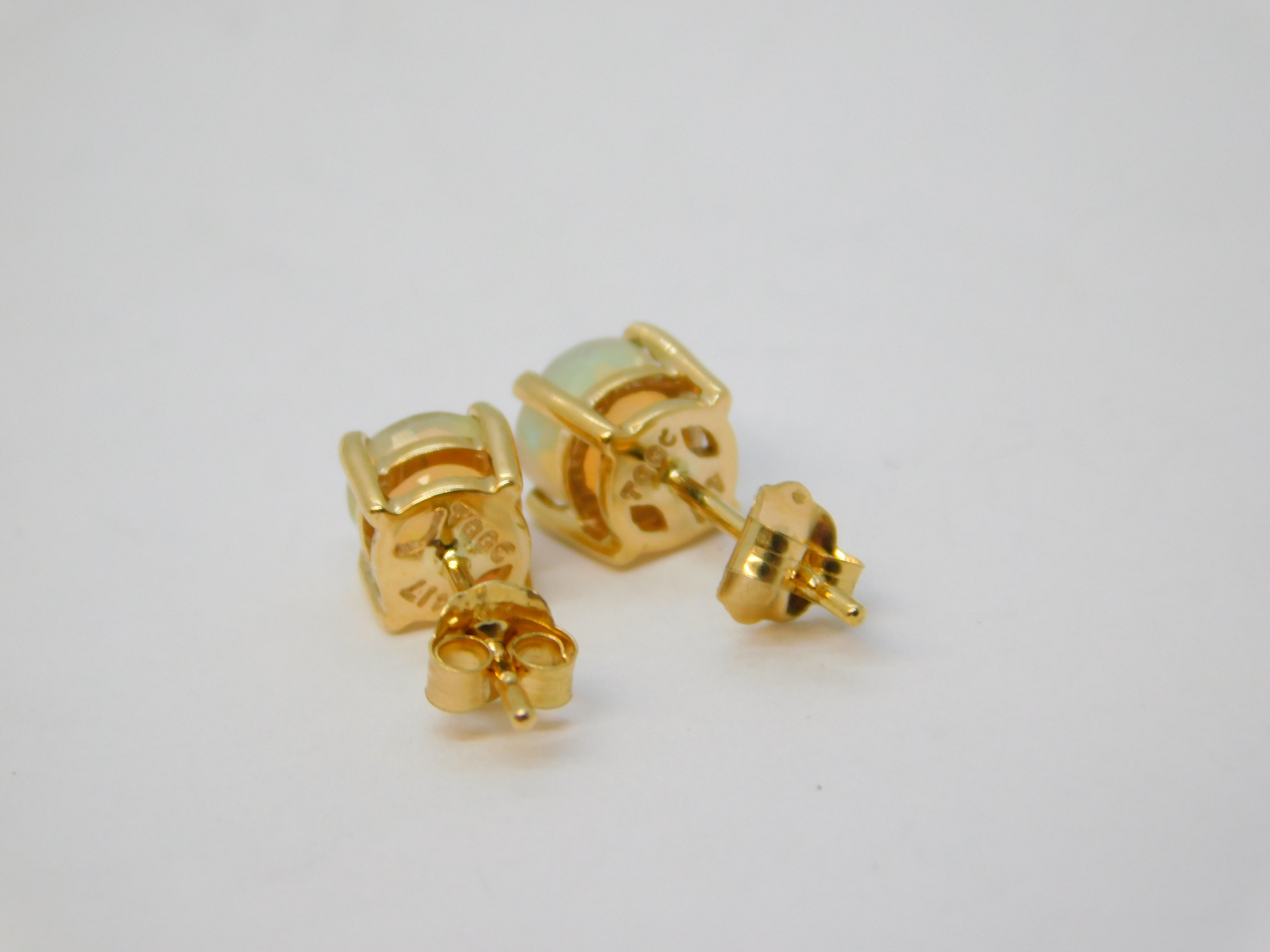9ct Yellow Gold & 0.6ct Welo Opal Stud Earrings Vintage
